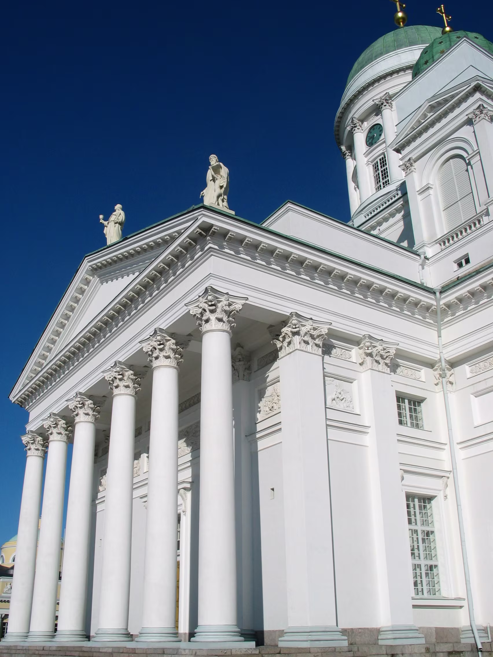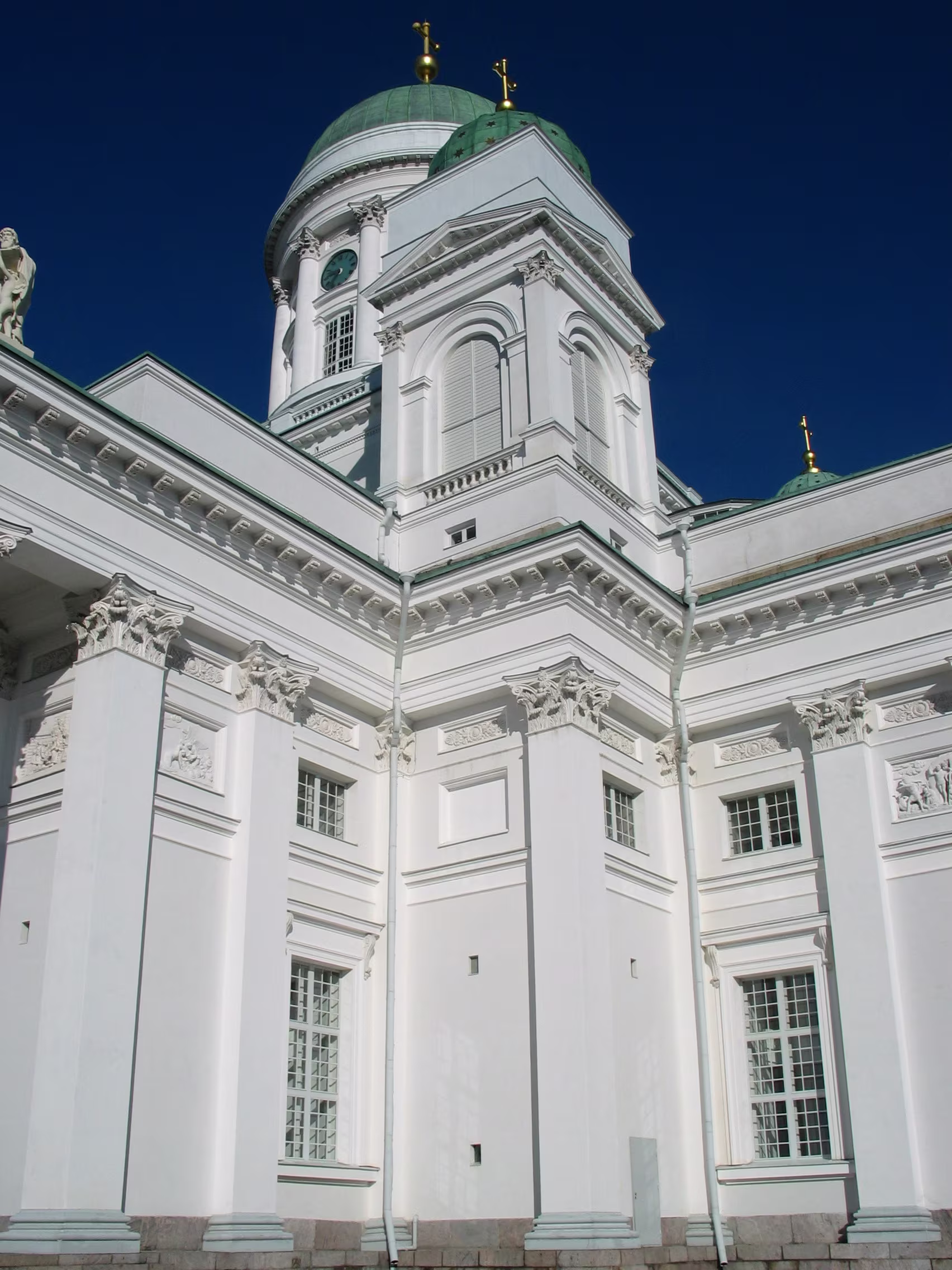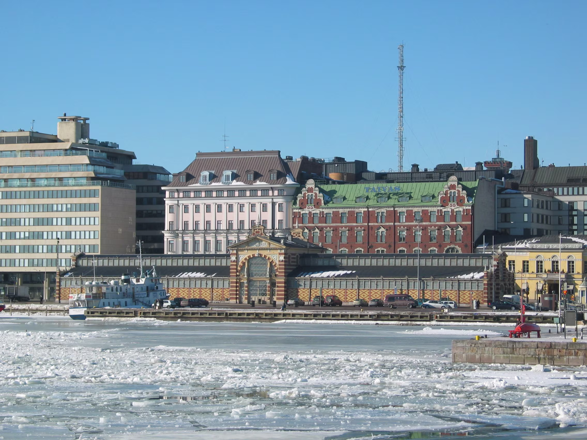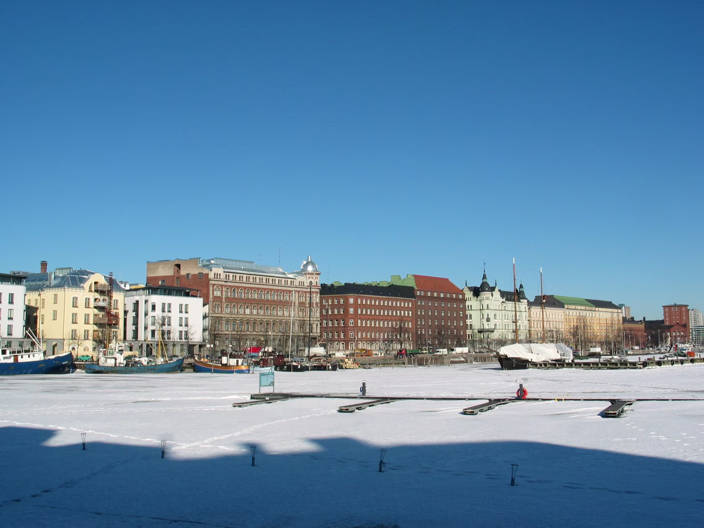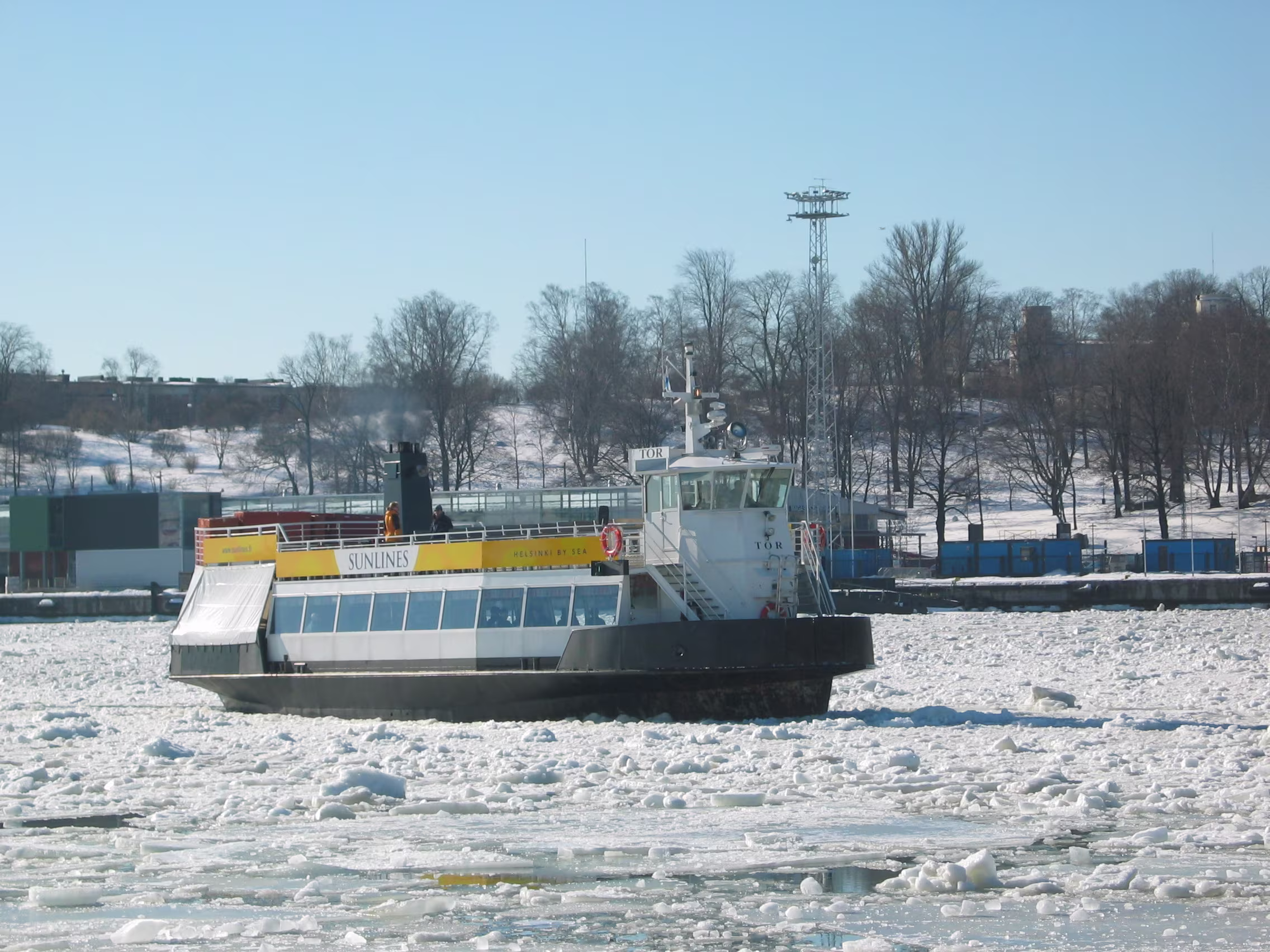 Die Domkirche bei dem blauen Himmel nicht noch mal anzusteuern wäre unklug gewesen, das macht doch gleich viel mehr her. Der Versuch den Eisbrecher aufzuspüren war allerdings vertane Zeit. Aber vielleicht hat diese Verzögerung genau zu dem richtigen Timing geführt, dass ich gerade diese kleine Fähre habe anlegen sehen, mit der ich dann auf die Festungsinsel Suomenlinna geschippert bin.