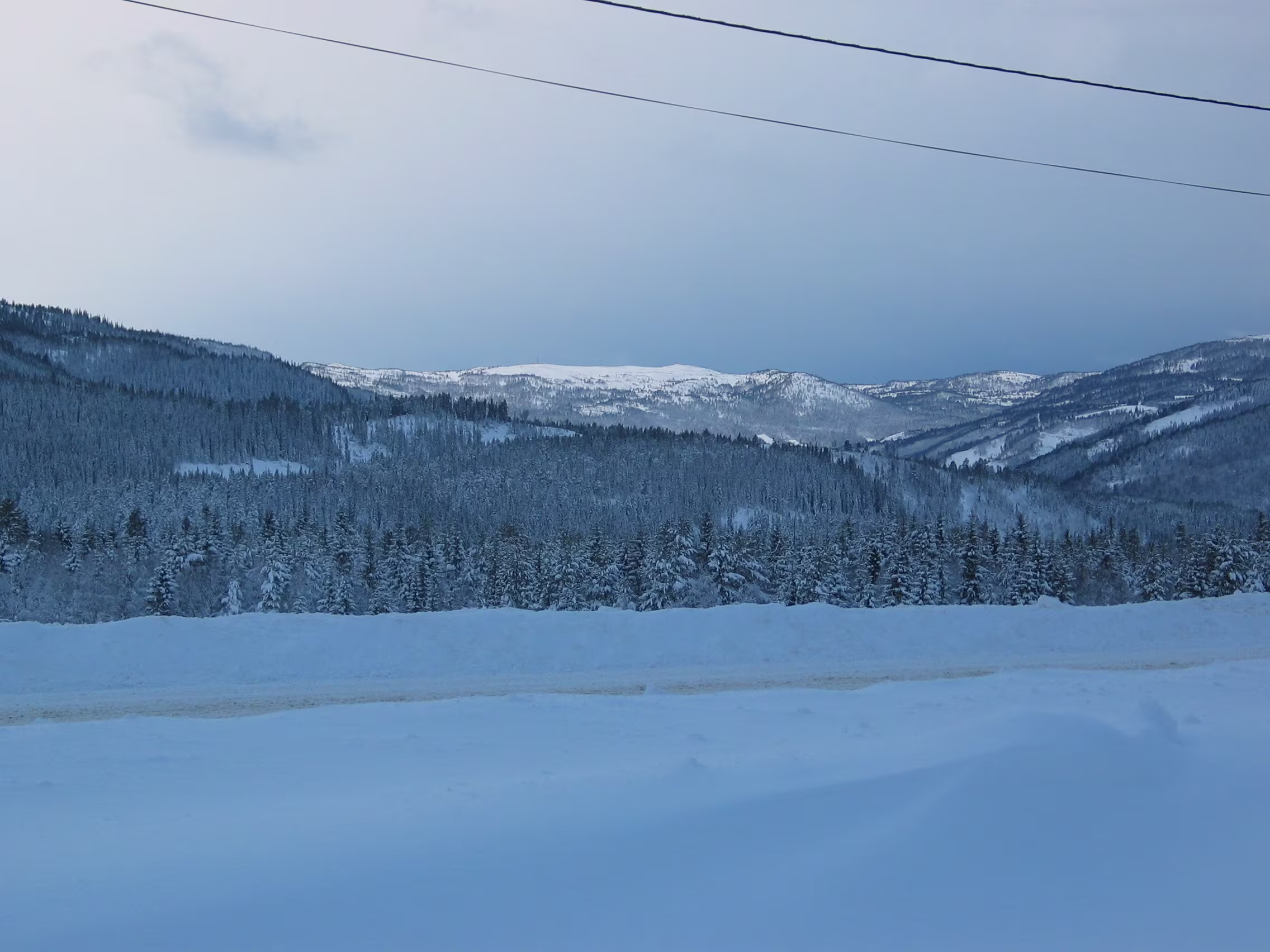 Zunächst verlief alles smooth. Dann stieg die Straße doch stetig etwas an und vermehrt kamen einem Fahrzeuge entgegen die total verschneit waren. Nicht lange danach war die Straße dann auch immer mehr verschneit, genauso wie die Landschaft drumherum. Ab Dombås ging es dann richtig aufwärts, zunächst auf eine weite Hochebene mit guten Sichtverhältnissen.