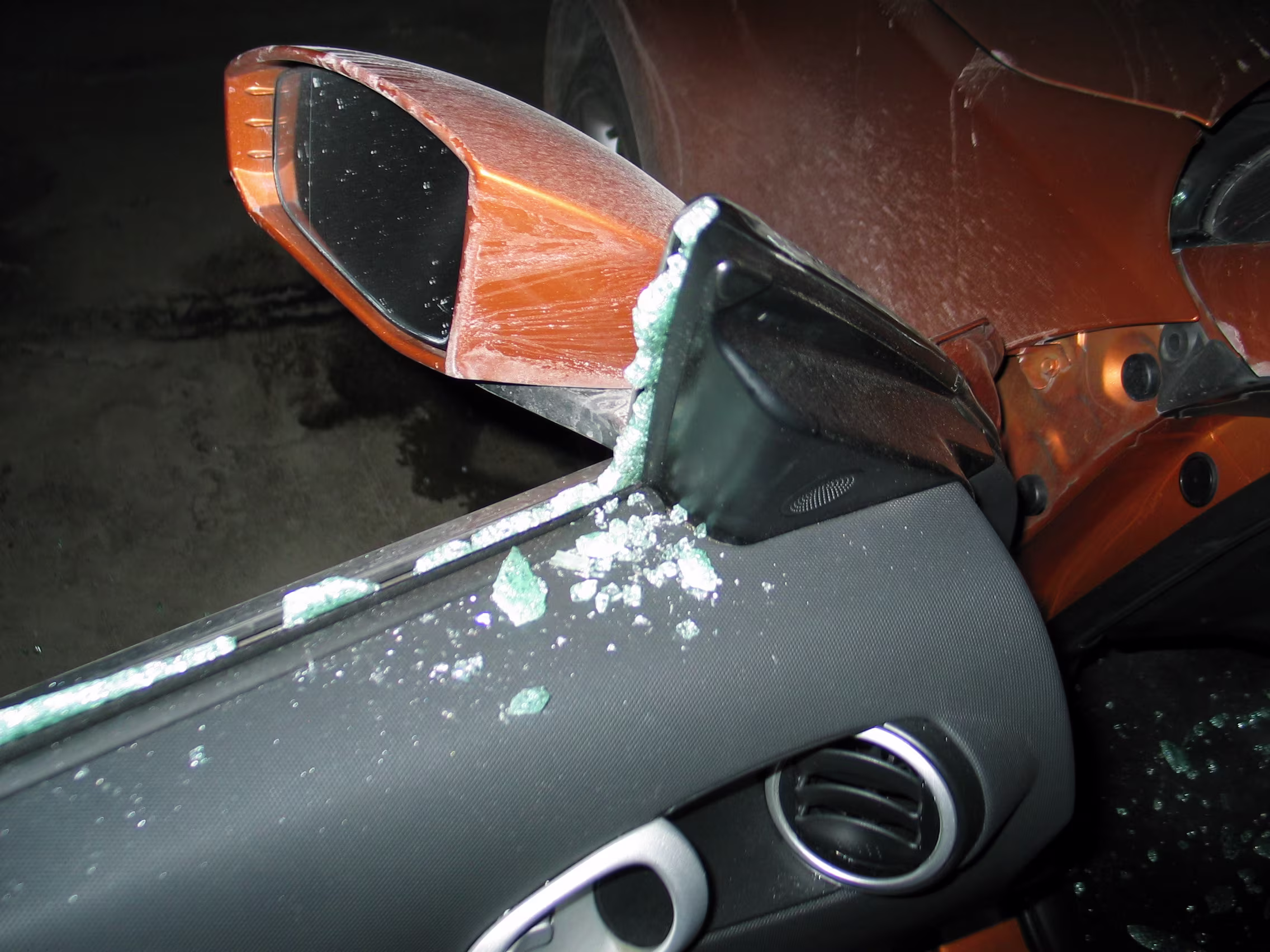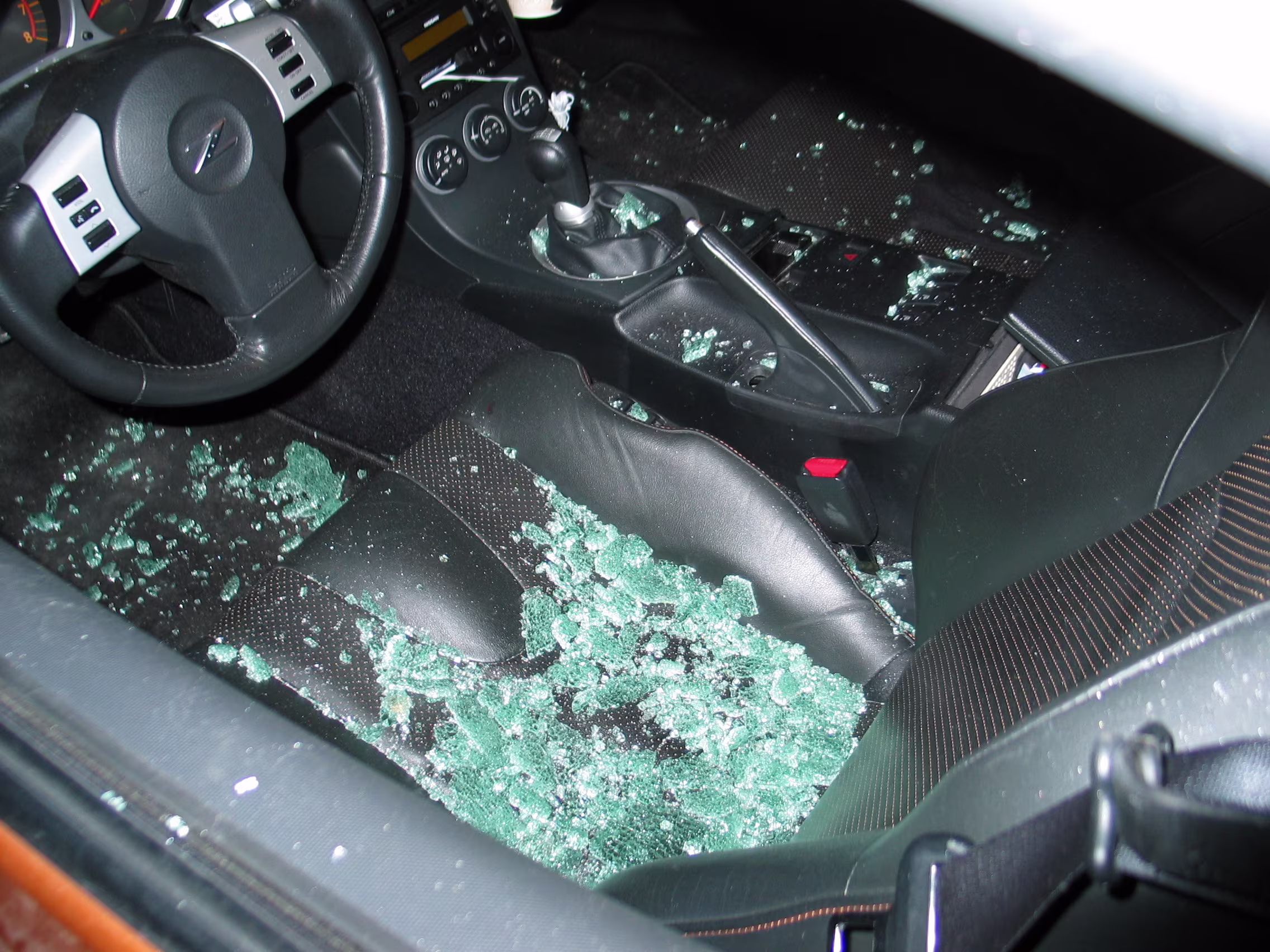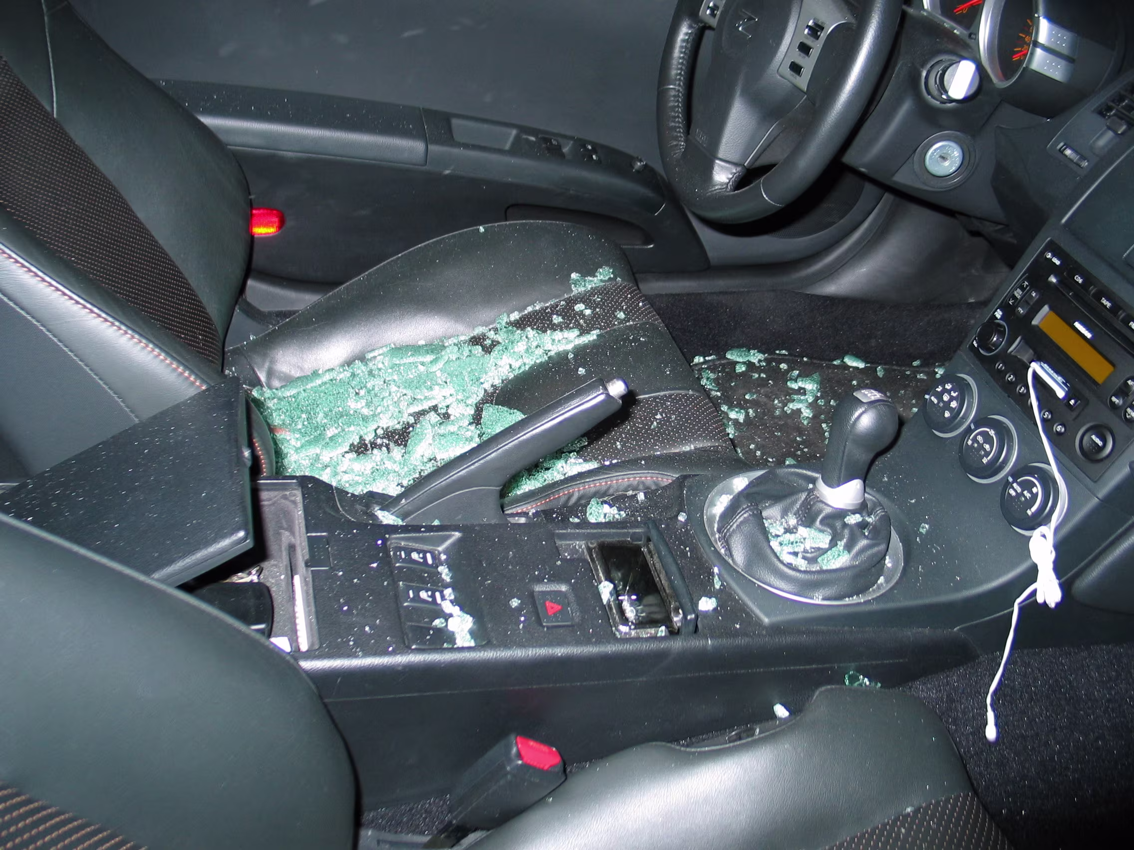 Meine Reisschüssel hatte ich in einem Parkhaus abgestellt. Als ich am Morgen dort ankam fand ich sie mit eingeschlagener Seitenscheibe (Fahrerseite) wieder. Über die Rezeption des Hotels hatte ich Kontakt mit der lokalen Polizei, aber die wollte sich der Sache nicht annehmen. Netterweise hatte man mir an der Reption die Adresse einer Auto-Werkstatt in der Nähe herausgesucht. Dort hatte man sich dann des Problems angenommen und eine Plexiglas-Scheibe eingesetzt und das ganze mit „tape“ fixiert. Den Rest an tape hatte man mir vorsorglich mitgegeben, was sich als weise herausgestellt hatte.