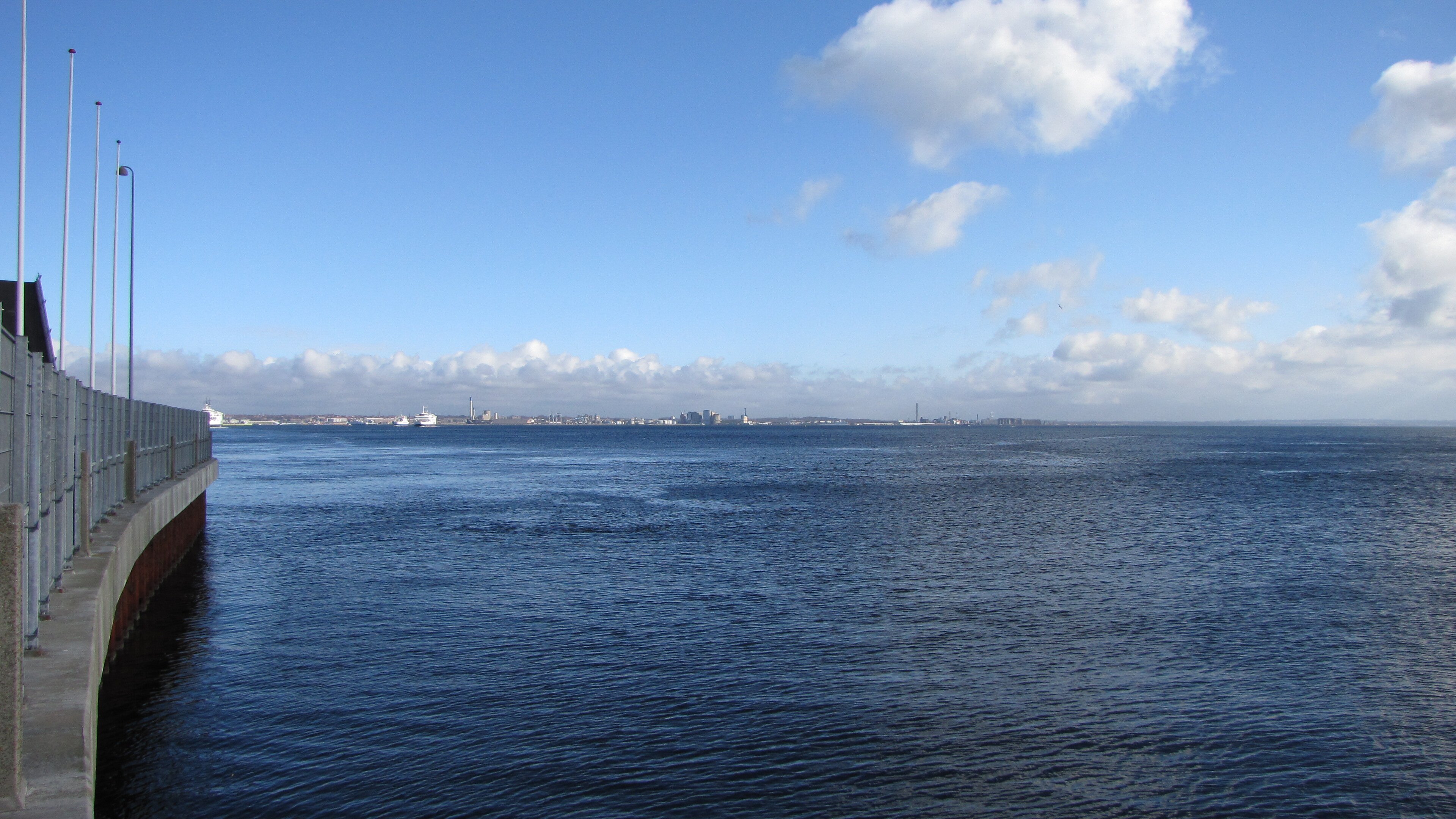 Ab Helsingør strahlend blauer Himmel. Temperatur fällt kontinuierlich auf bis zu -2 °C.