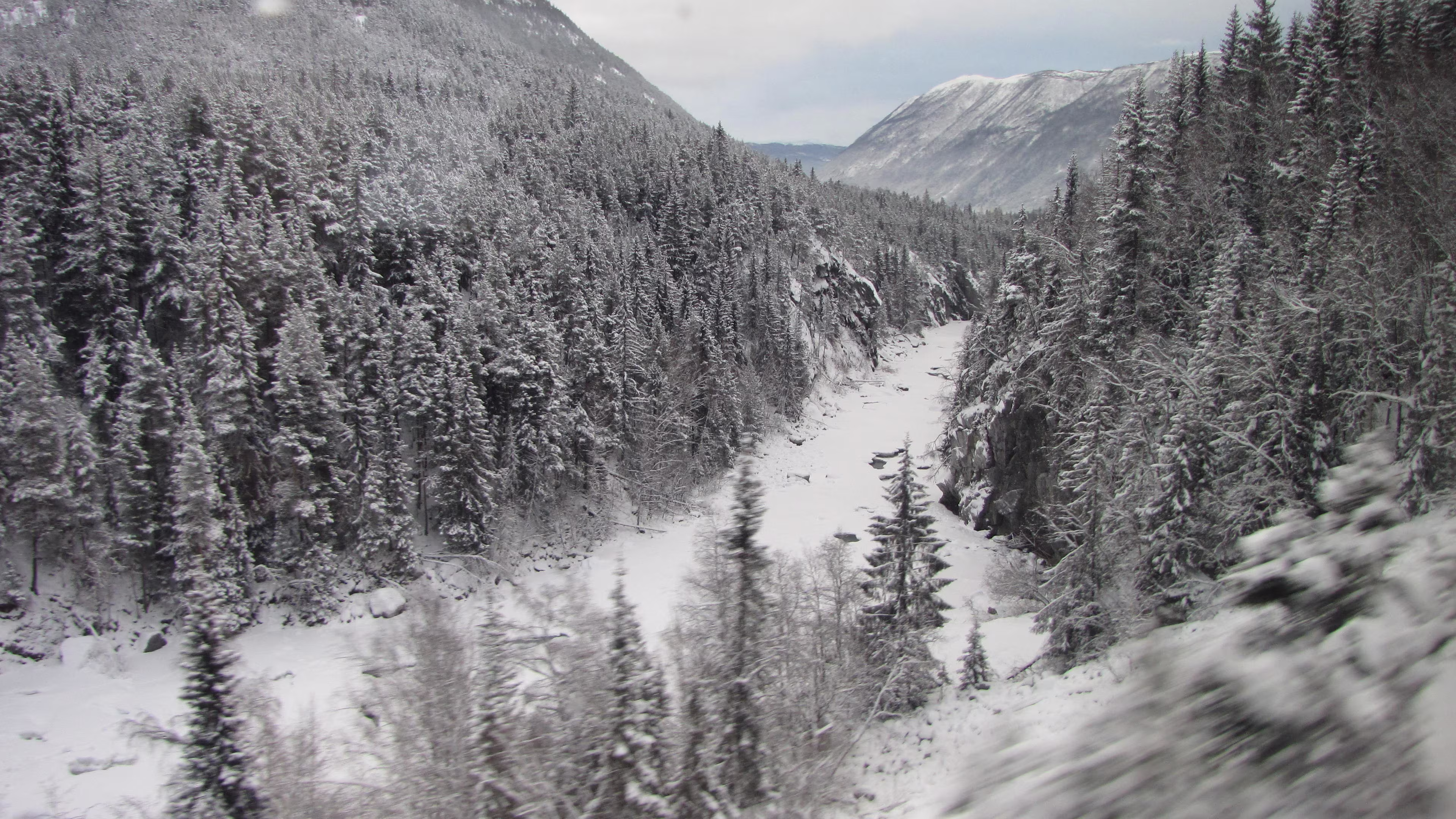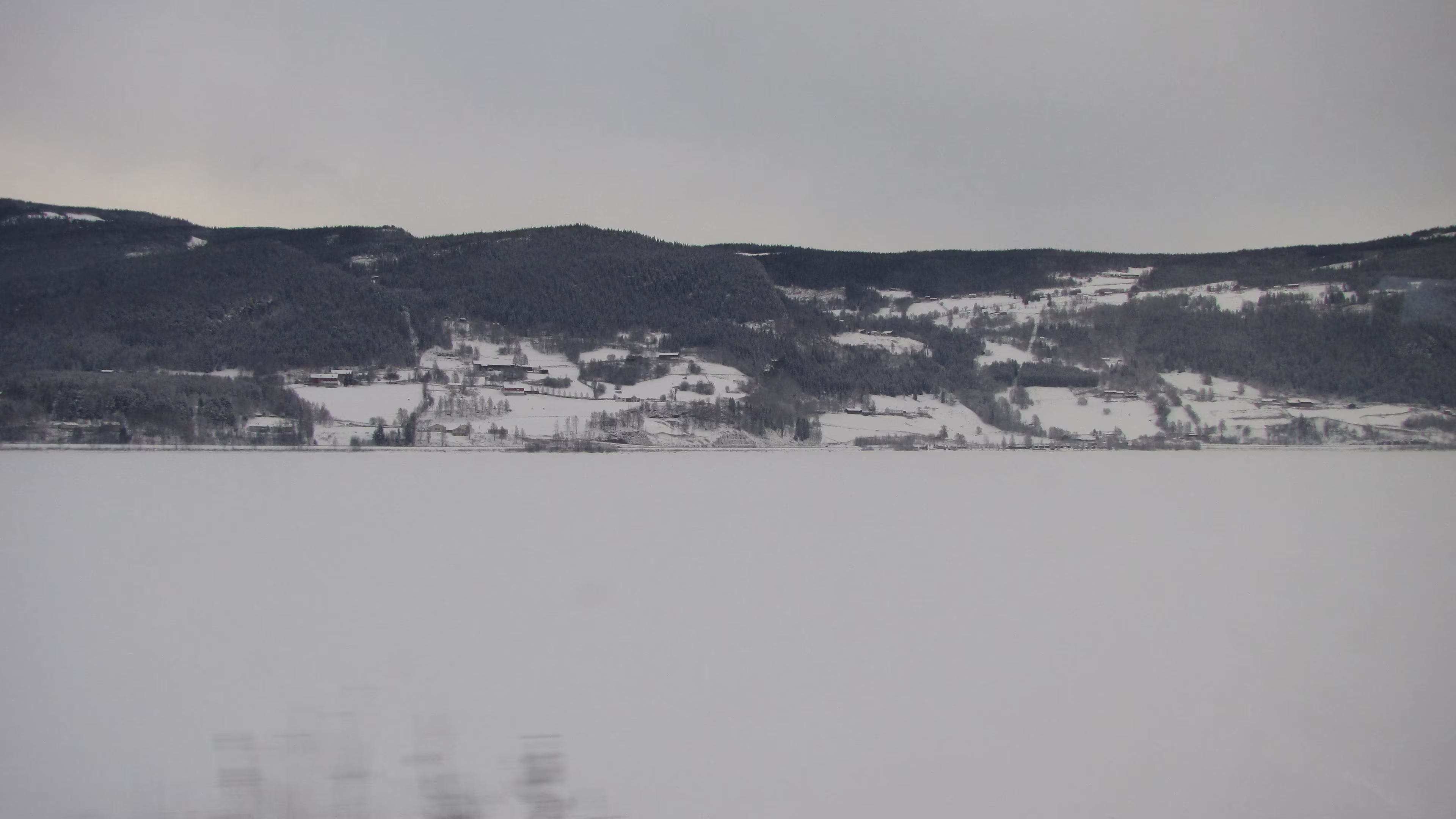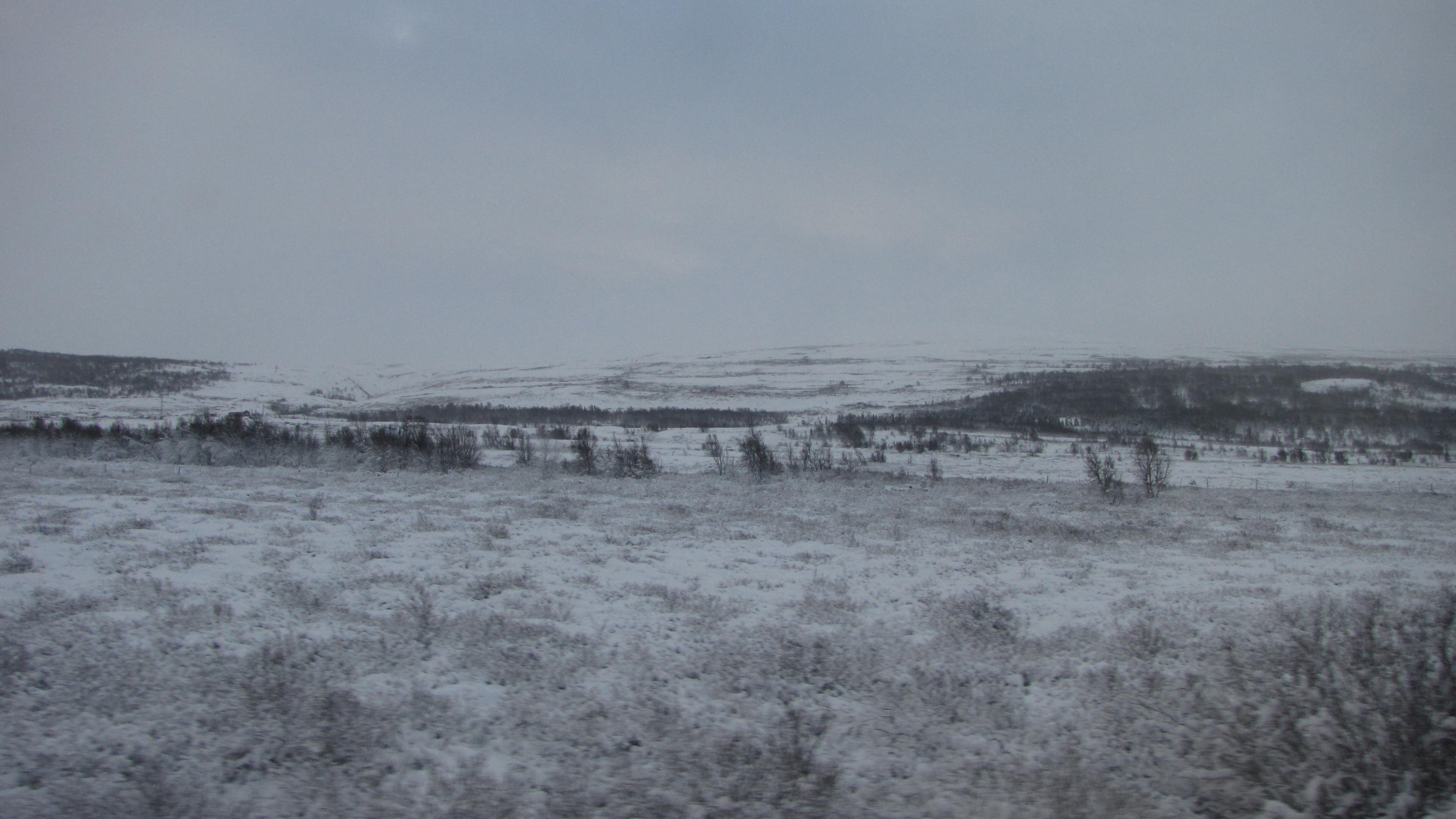 Heftiger Schneefall bei der Ankunft in Trondheim. Die Schneemassen sind gewaltig. Der Wagen von Trondheim nach Oslo war wohl von einer anderen Baureihe und längst nicht so schön wie auf der Fahrt von Oslo nach Trondheim. Aber auch hier gab es im NSB komfort Bereich wieder Zeitungen, Kaffee und Tee gratis, eine feine Sache. Fast alle Sitze des Wagens waren besetzt. Gegen 9 Uhr dämmert es langsam.
