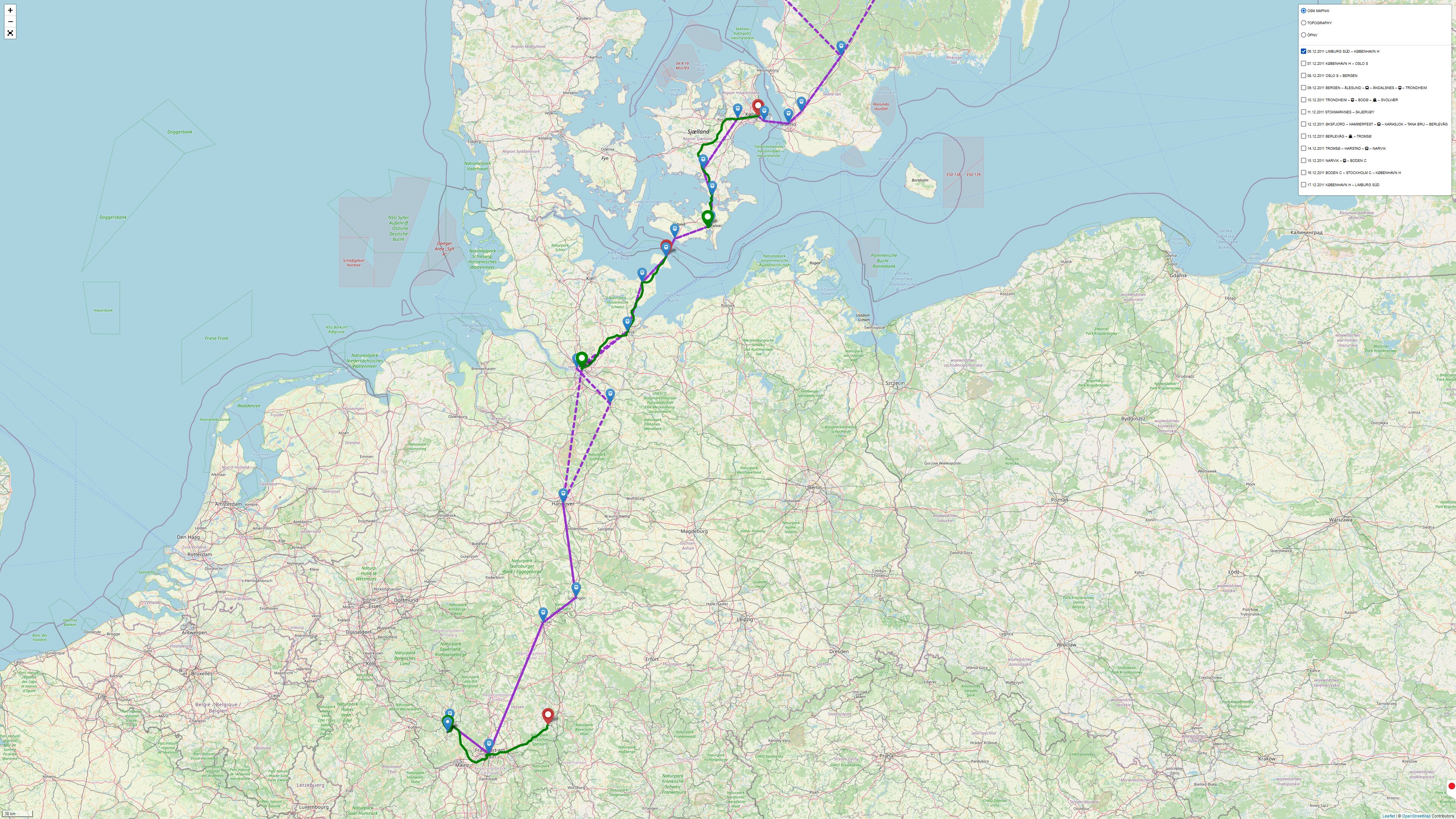 | Hamburg Hbf | 15:28 | 8a/b | ICE 27 | København H | 20:10 | 28 | 51FG | DB |