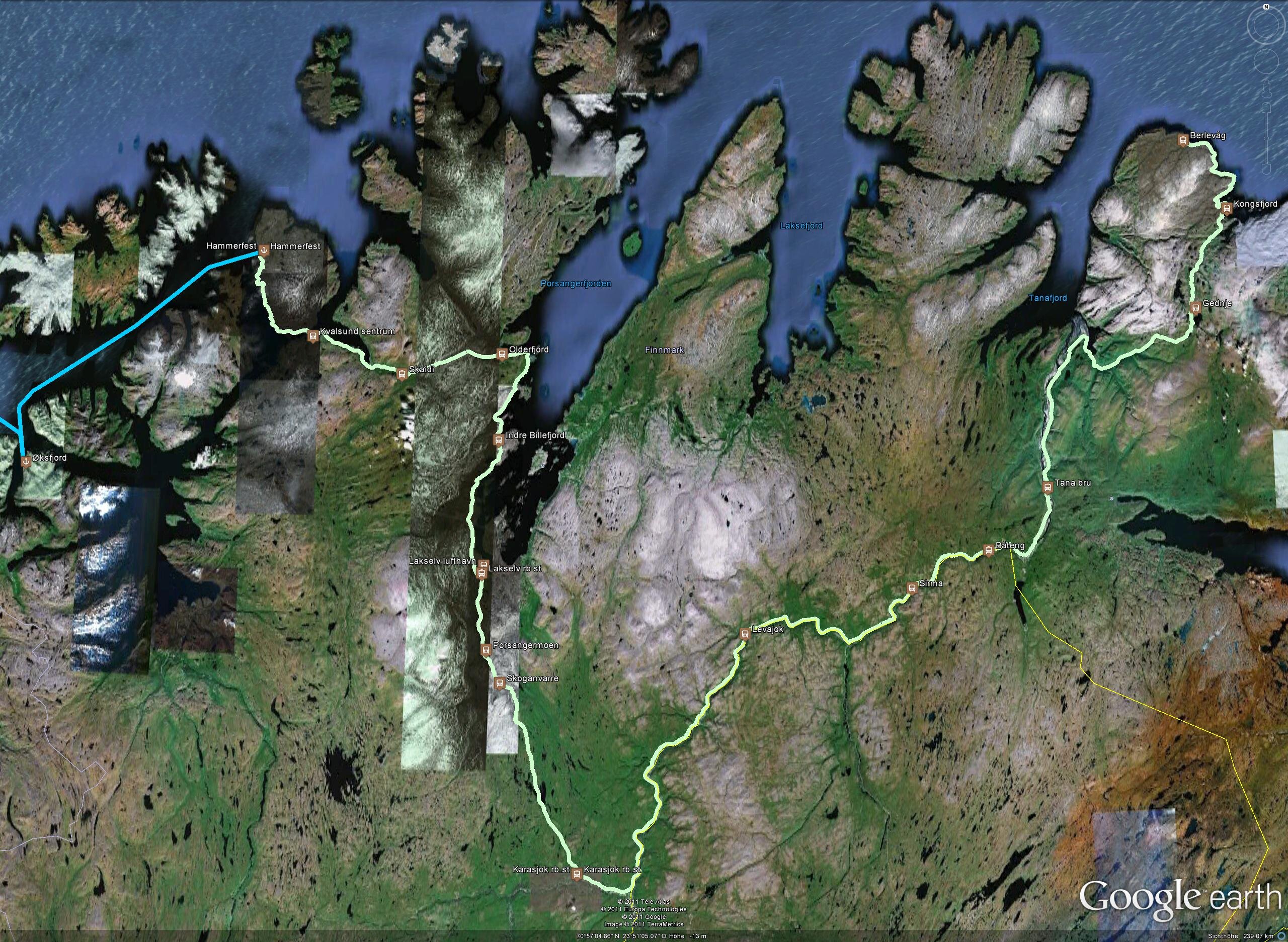 Auf der letzten Etappe nach Berlevåg war ich dann der einzige Passagier. Man kam ins Gespräch über Gott und die Welt. Ja, der Winter wäre dieses Jahr über einen Monat in Verzug, normalerweise wäre links und rechts der Straße schon eine 1 Meter hohe Schneewand, so sei es aber derzeit noch sehr dürftig mit dem Schnee. Mein Kommentar, dass mit der hießigen Straßensituation, sprich geschlossene Schneedecke, die meisten Leute in Deutschland arge Probleme bekämen, konnte er gar nicht nachvollziehen, für ihn ist das 3-4 Monate Dauerzustand.