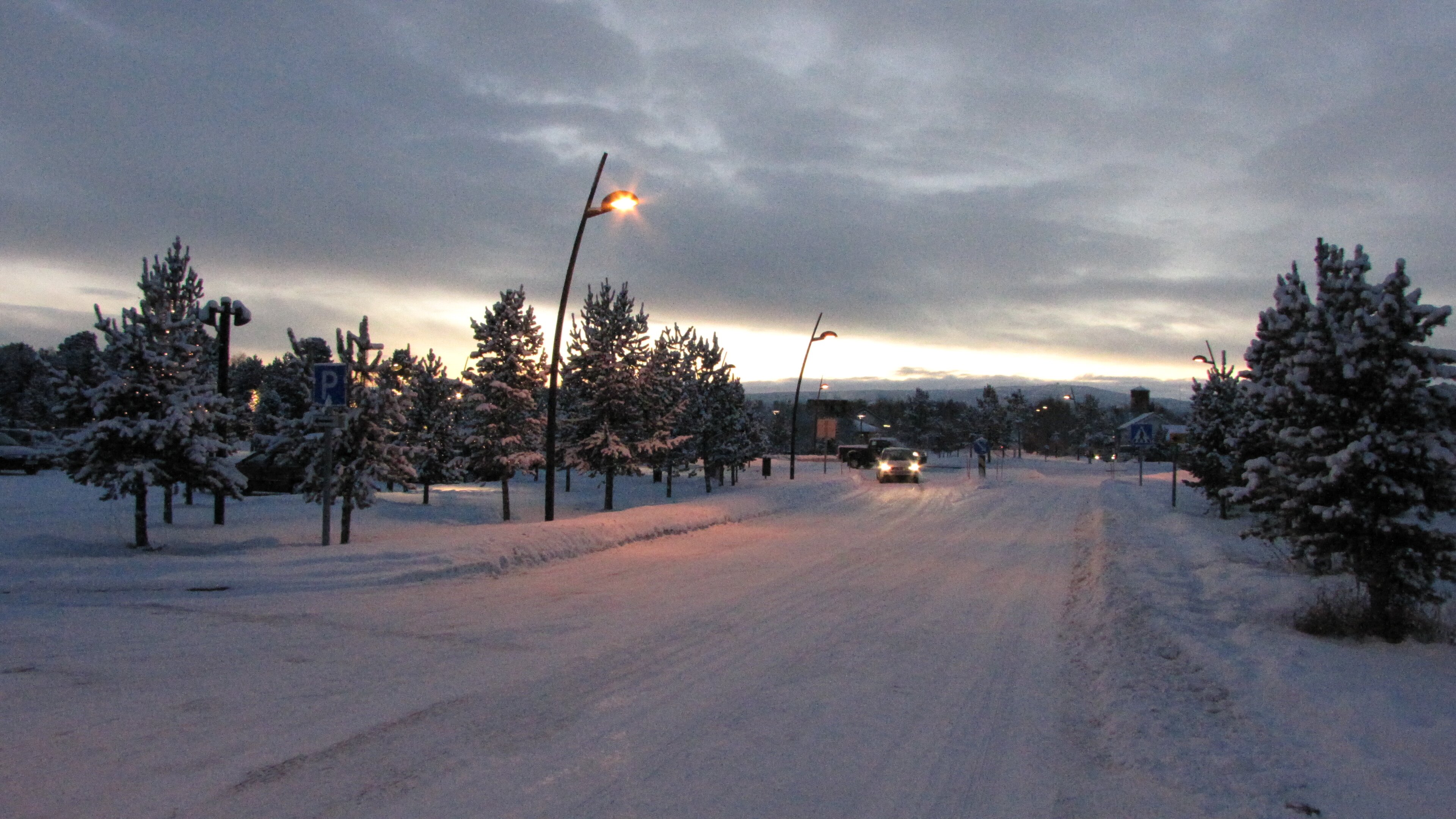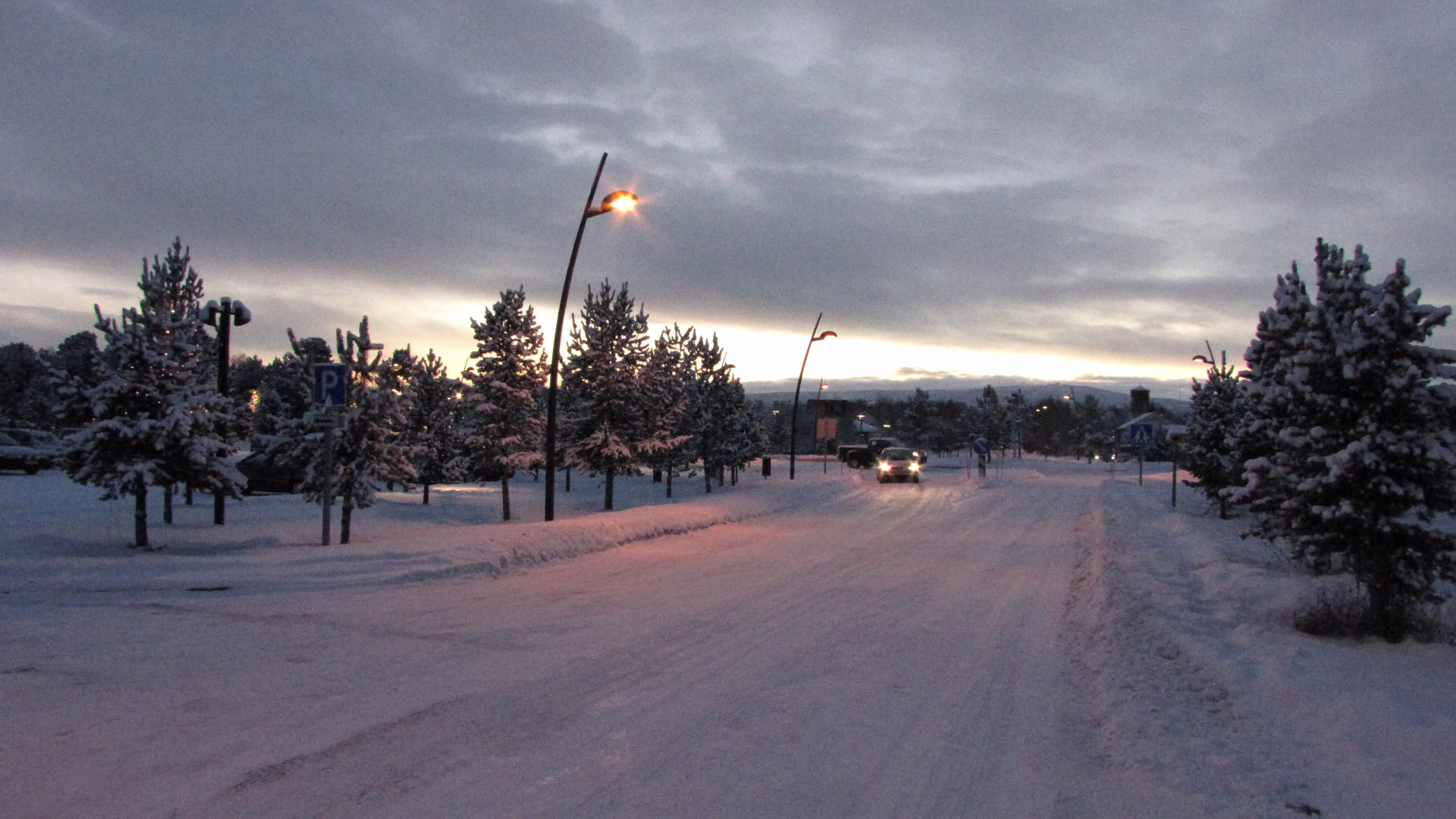 In Hammerfest schneit es heftig. Die Busfahrt in mehreren Etappen beginnt. Zuerst nach Skaidi, dort umsteigen nach Olderfjord, bis zum ersten Etappenziel Karasjok. In Olderfjord hatte es aufgehört zu schneien und es dämmerte langsam. Dann folgte der schönste Teil der heutigen Strecke. Im Osten wurde es immer heller, es lag eine Menge Schnee und die Landschaft einfach atemberaubend. Im Prinzip gab es außer Landschaft auf der gesamten heutigen Busstrecke von ca. 534 km auch nix anderes zu sehen. 😎