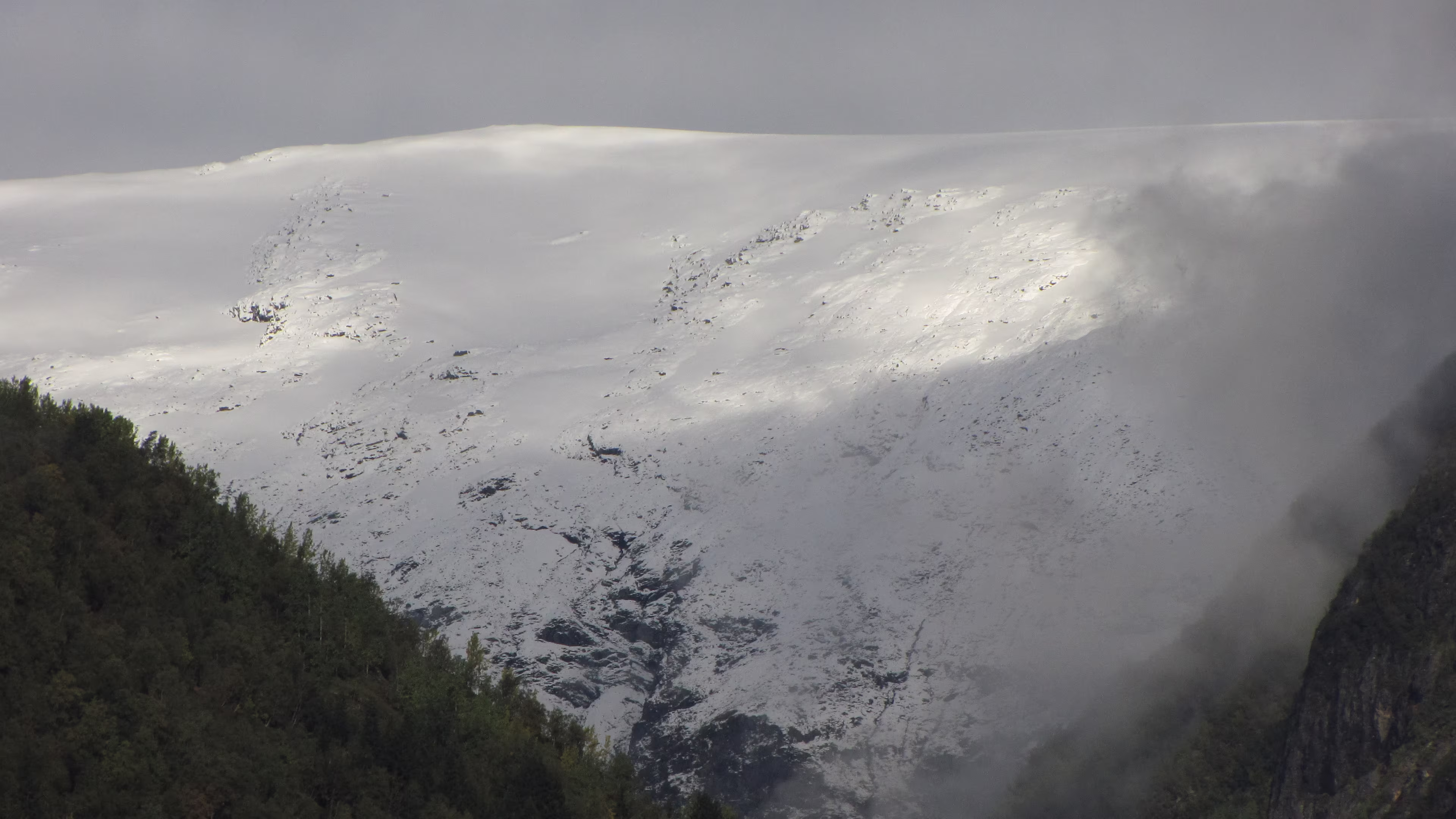Leider ist die Strecke zwischen Innvik und Olden gesperrt. Es gibt allerdings ein paar Zeitfenster am Tag, in der eine Passage möglich ist. Gelesen hatte ich von dieser Sperre in Byrkjelo, da war es kurz nach 12 Uhr, die Sperre sollte um 12:30 beginnen. Das könnte klappen dachte ich mir. Denn die Alternativen waren ein Höllenumweg oder warten bis das nächste Zeitfenster um 15 Uhr beginnt. Also etwas auf die Tube gedrückt und alles schien wunderbar zu laufen, Olden war nicht mehr weit und die Baustelle schien passiert, bis dann die Straße plötzlich doch gesperrt war. Da war es 12:40, zum Haareraufen. Jetzt über 2 Stunden warten, nee, also doch die Umleitung fahren, wieder auf eine Fähre warten, Sack-Zement. Gegen 15:30 war ich dann am Ziel.