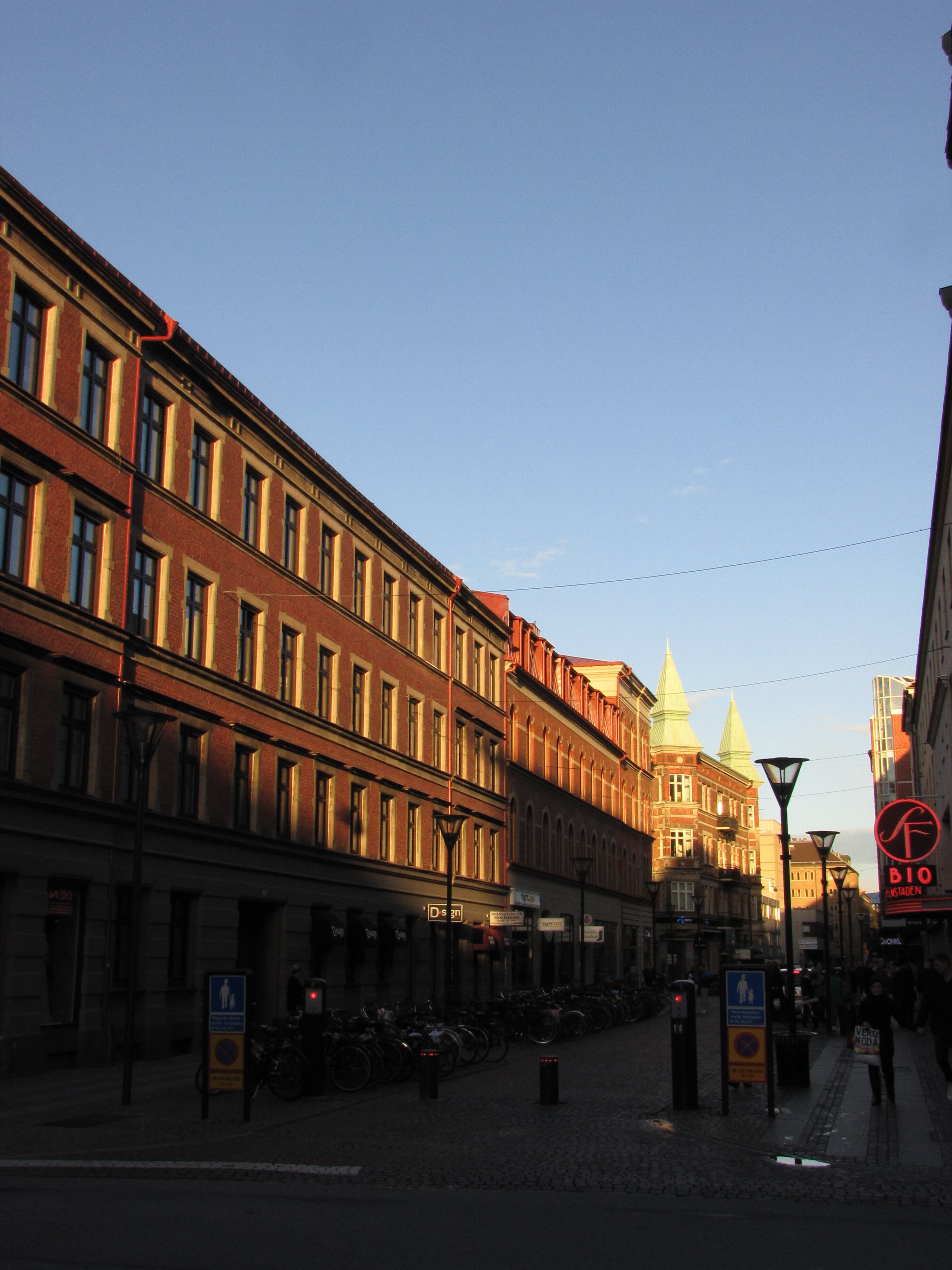 Heute nur knapp 700 km Fahrt, es regnete oft und heftig. In Malmö zum Glück nicht mehr, in Richtung Danmark war so gar blauer Himmel zu sehen. Bisher war ich in Malmö entweder nur mit dem Auto dran vorbei gefahren oder mit dem Zug durch gefahren. Das Stadtzentrum hier ist nett. Gerade am Lilla Torg ist das Zentrum der Kneipen und Restaurants. Ich habe noch nie so viele Heizpilze auf einem Fleck gesehen, 200 war keine Zahl. Und, das fiel erst auf den zweiten Blick auf, es standen keine Propanflaschen rum, nein, die Pilze wurden alle aus dem Boden mit Gas versorgt. Echt krass. Mich hätten keine 10 Pferde zum draußen-sitzen bewegen können, aber andere dachten da anders, es war gut besetzt an der frischen Luft.