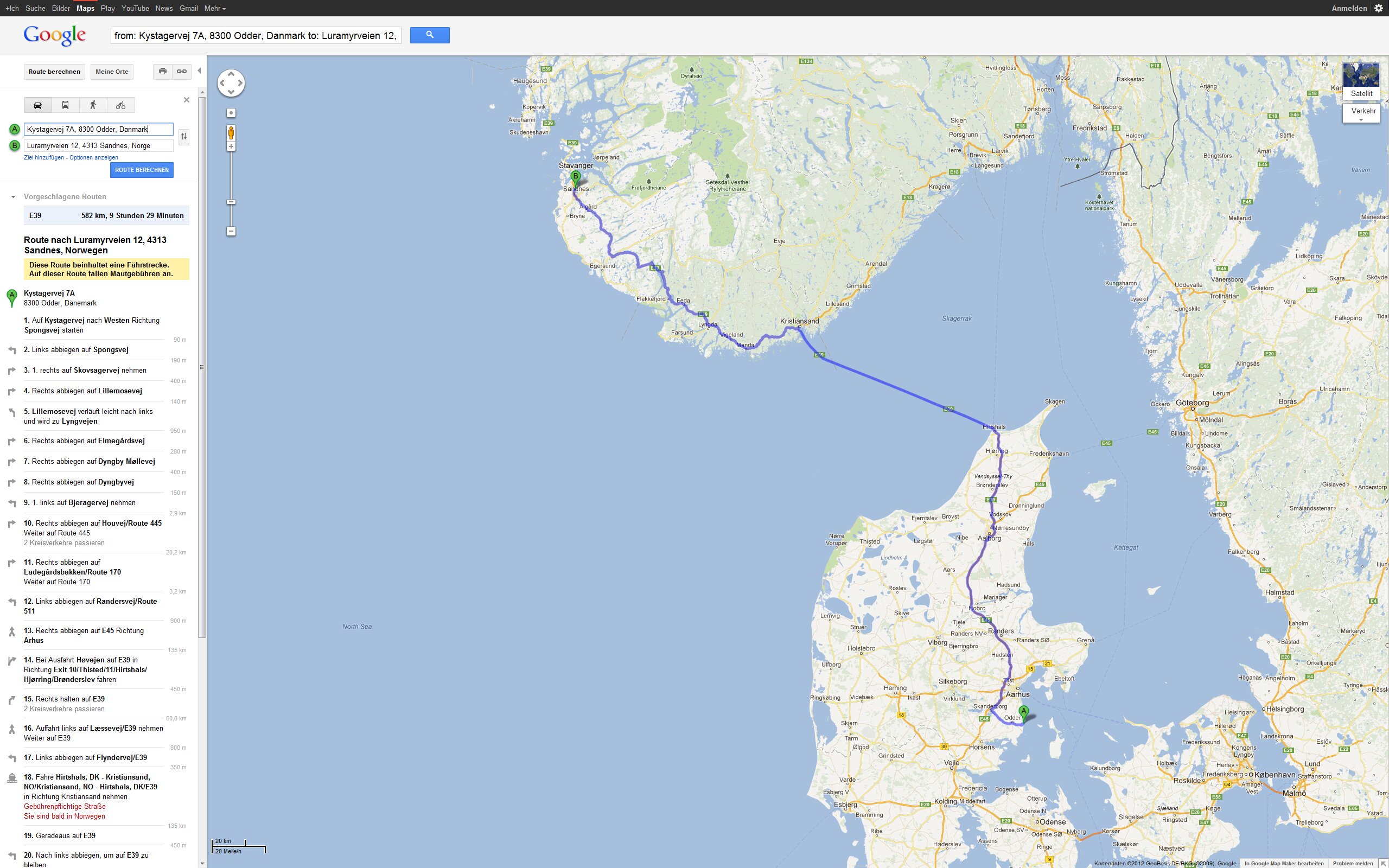 Tour Planung 03 - Kystagervej 7A, 8300 Odder, Dänemark nach Luramyrveien 12, 4313 Sandnes, Norwegen - Google Maps - Opera Mo 17.09.2012 – Odder - Sandnes Größere Kartenansicht