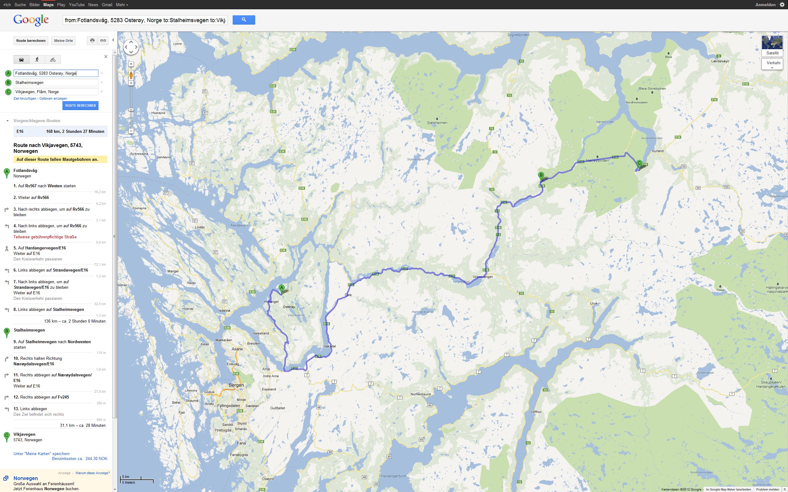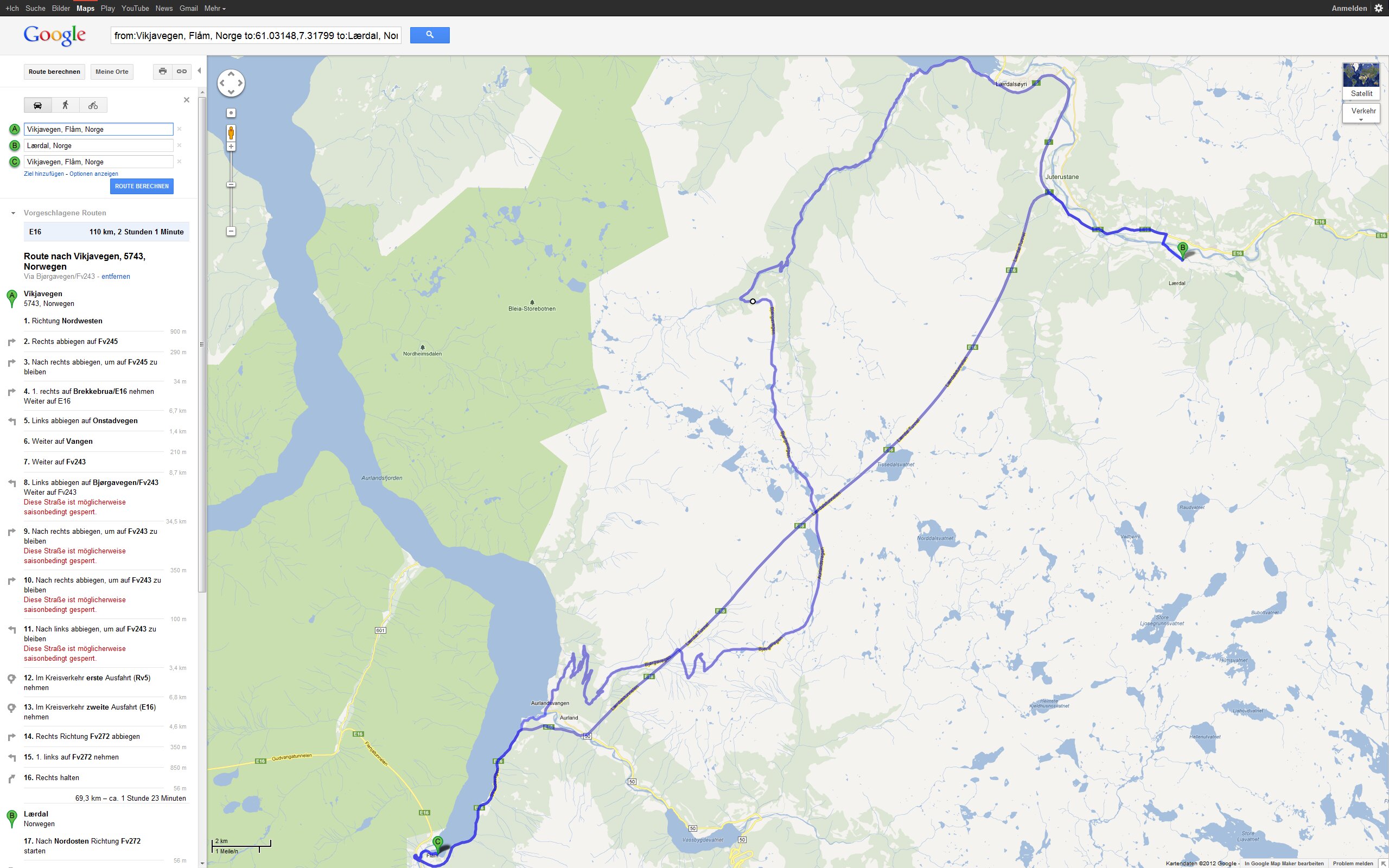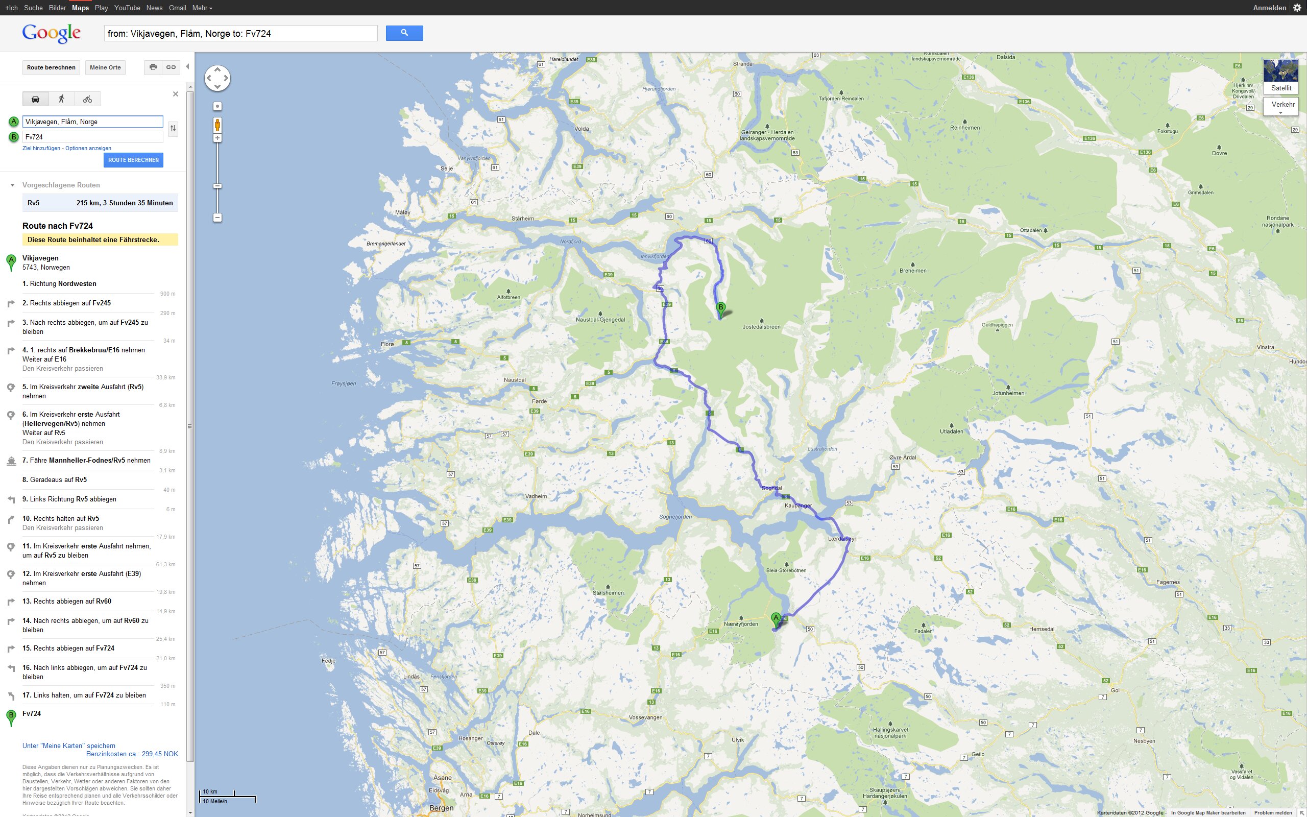 Tour Planung 08 - Vikjavegen, 5743, Norwegen nach Fv724 - Google Maps - Opera Fr 21.09.2012 – Flåm - Briksdalsbre Größere Kartenansicht