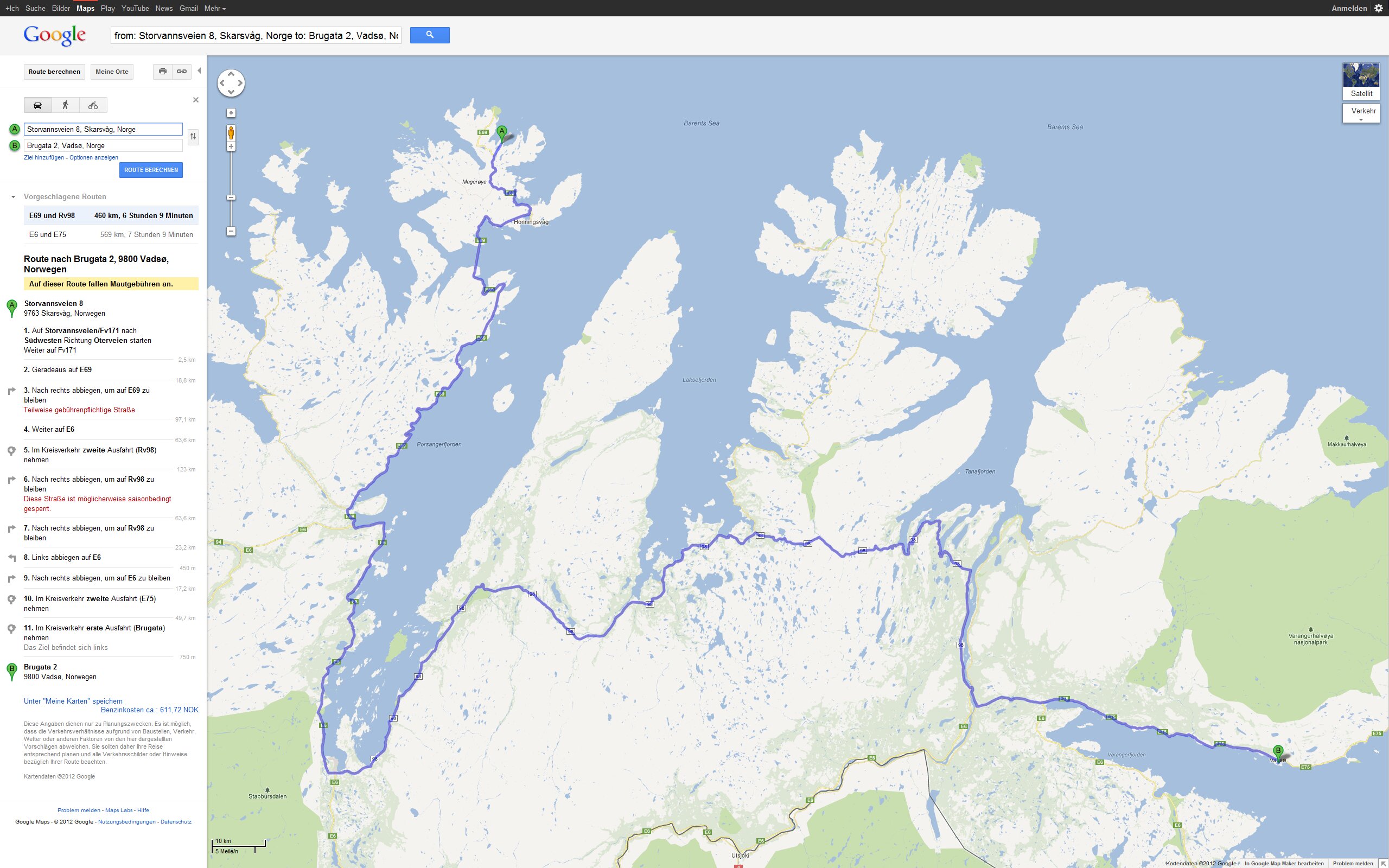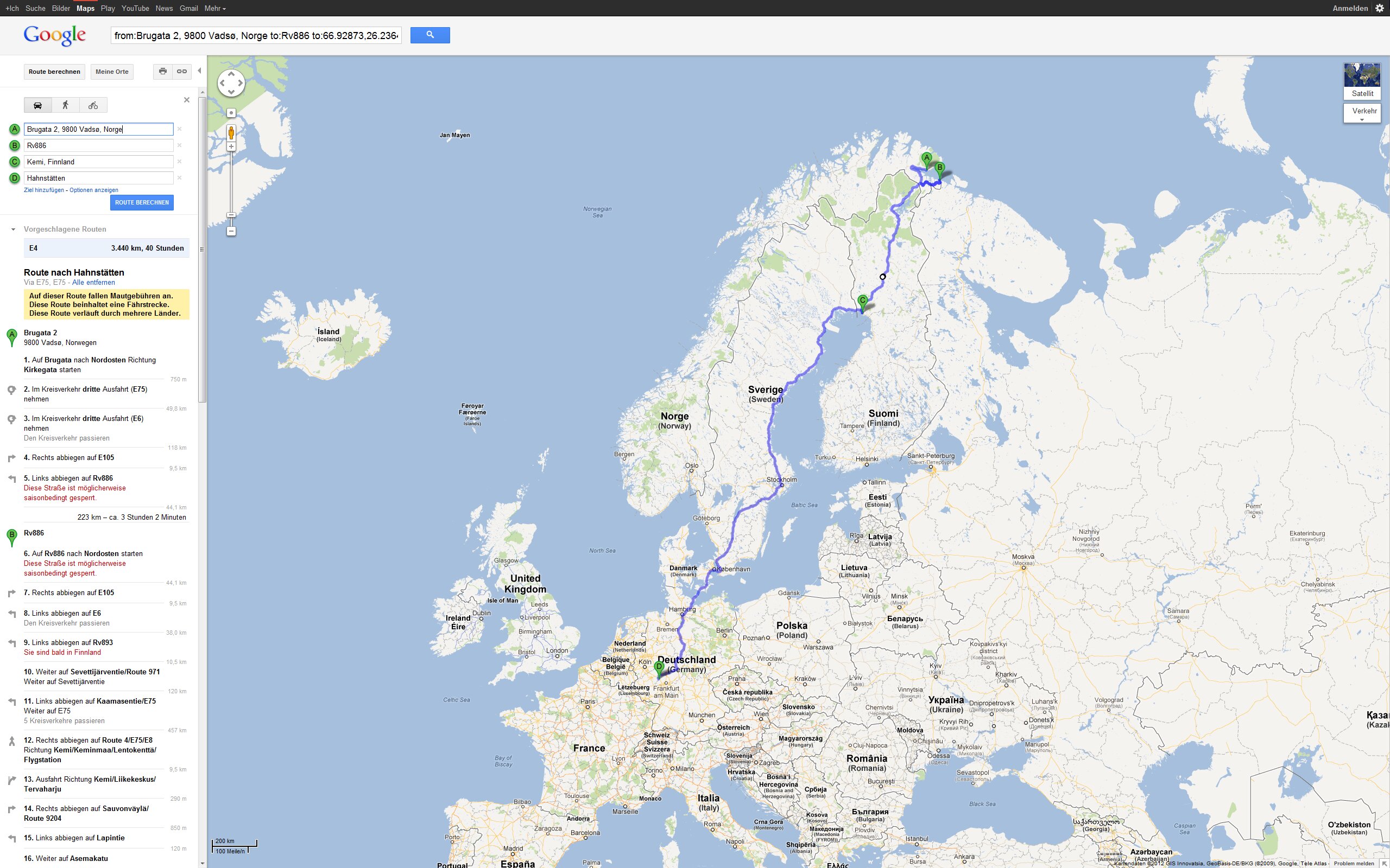 Tour Planung 13 - Brugata 2, 9800 Vadsø, Norwegen nach Hahnstätten - Google Maps - Opera Do 27.09.2012 – Vadsø - Grense - ?