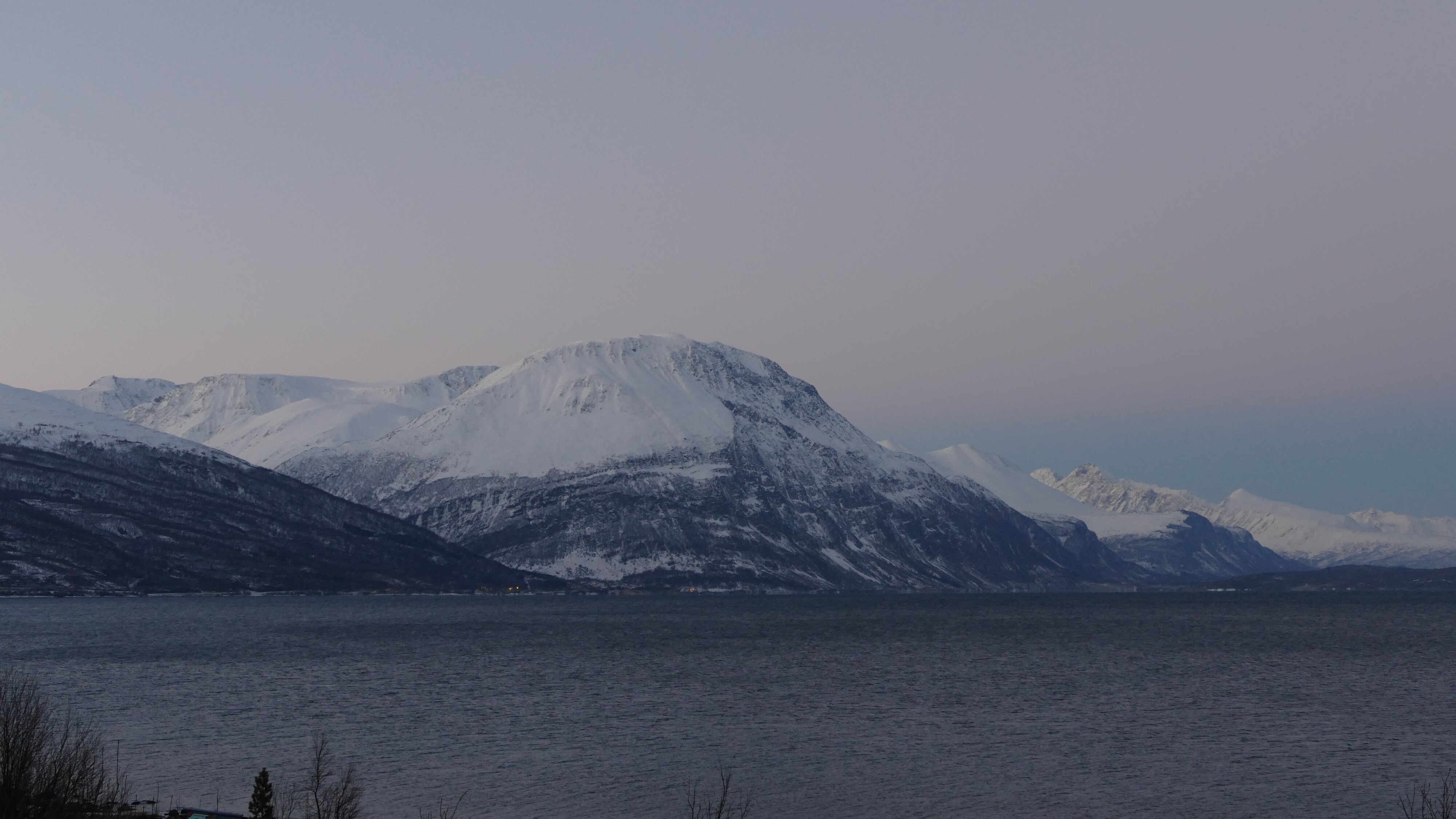 Es war wirklich frappierend wie extrem sich die Landschaft beim Übergang von Suomi nach Norge veränderte. War in Sverige noch alles mehr oder weniger flach oder leicht hügelig wurde es in Suomi schon bergiger, aber vor allen Dingen konnte man plötzlich kilometerweit schauen, zusammen mit dem Sonnenaufgang war das natürlich genial. Und nur wenige Kilometer nach der Grenze zu Norge dann die gewohnt schroffen Berge die mehrere hundert Meter steil abfallen.