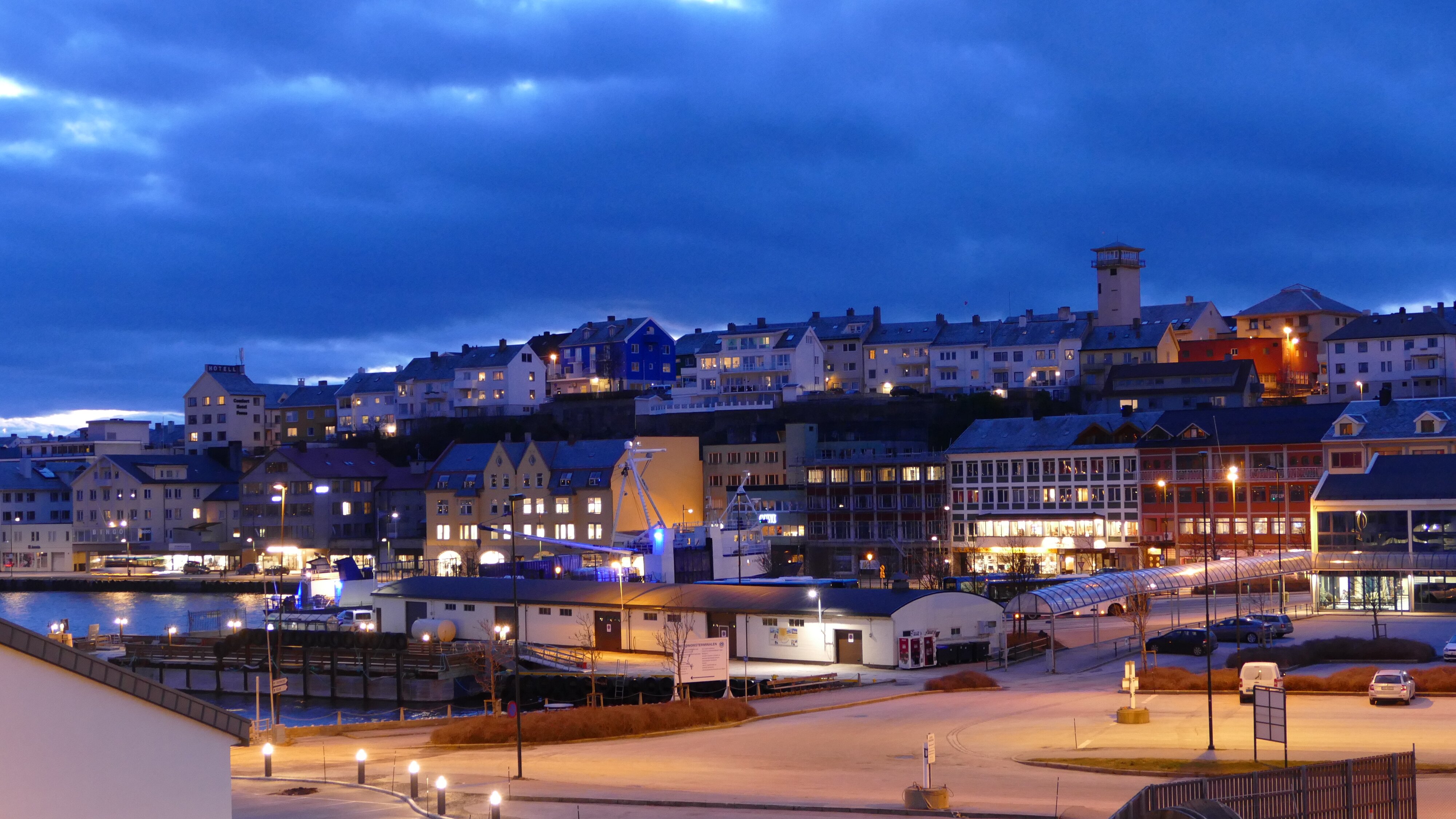 Bis ich in Kristiansund ankam war es doch mittlerweile schon 16 Uhr geworden. Um 16:30 Uhr sollte ja bereits wieder das Schiff einlaufen. Also sich da vorher noch großartig die Stadt anschauen war gar nicht mehr drin. Als gegen 16:45 vom Schiff noch nichts zu sehen war kamen mir doch Zweifel, klar im Hafen von Kristiansund war das Wasser ruhig und die offene See liegt einige Kilometer weiter draußen, aber eben genau was da draußen los war, hatte ich ja heute bei der Passage der Küstenstraße gesehen. Da blies eine sehr ordentliche Brise. Wäre also ungünstig, wenn das Schiff Kristiansund nicht anlaufen würde. Da käme als nächster Hafen nur noch Molde in Frage. Alle weiteren Häfen liegen dann zu weit Weg und es würde spät in der Nacht werden.