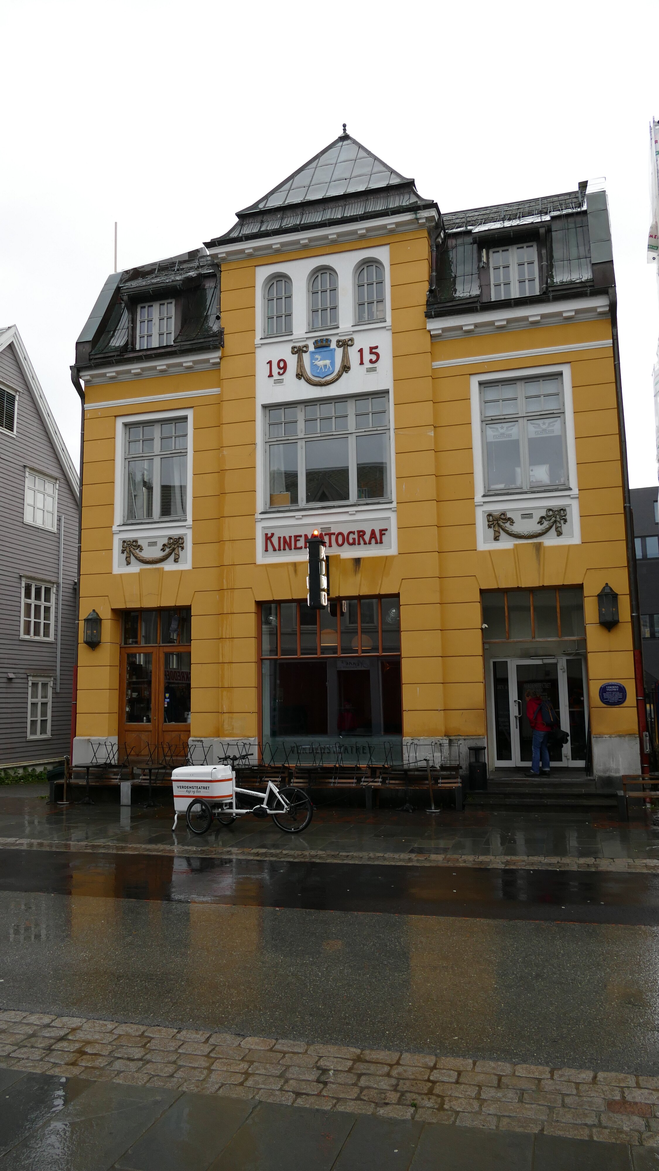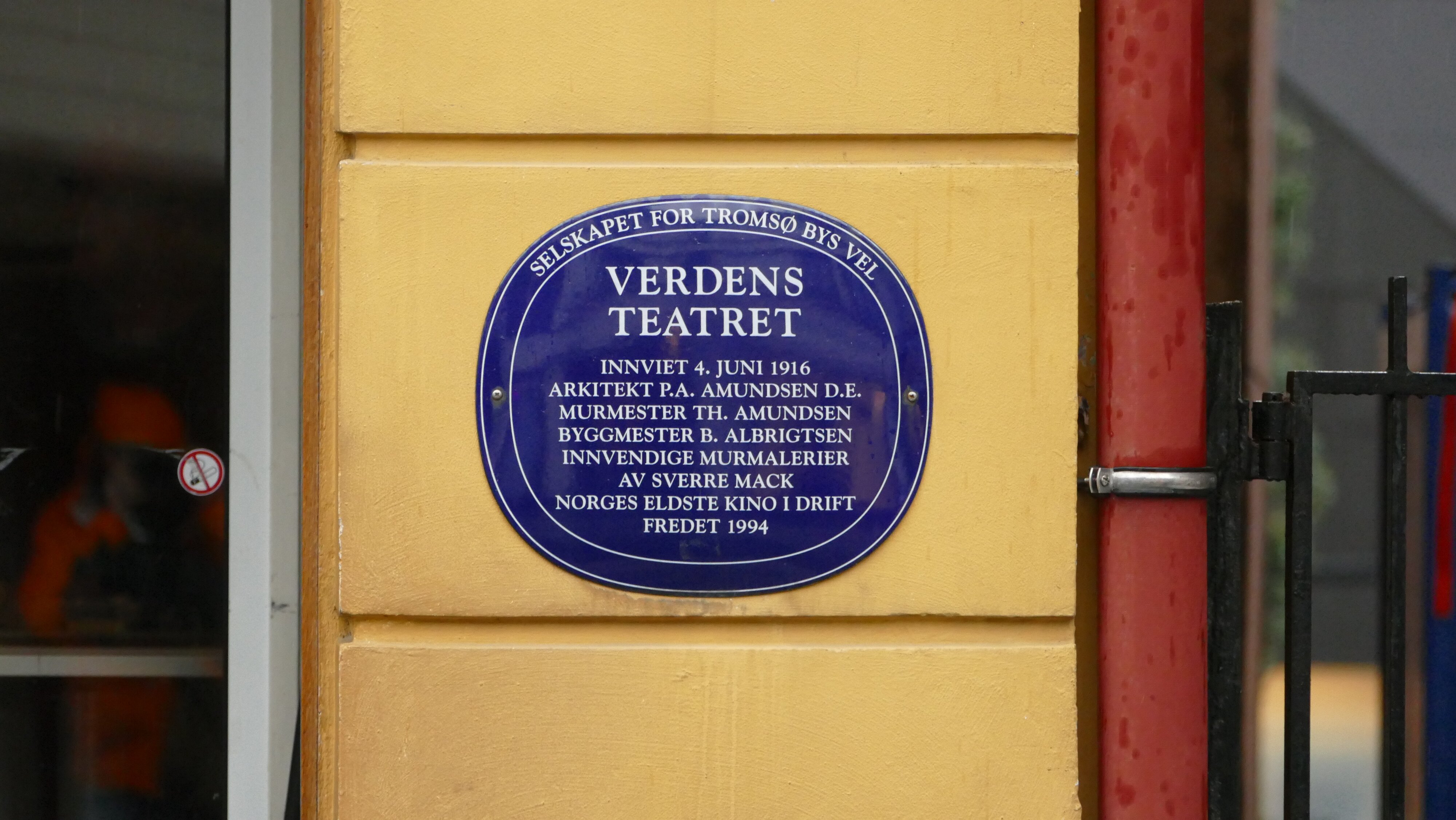 Selskapet for Tromsø bys vel; Verdens Teatret; Innviet 4. Juli 1916; Arkitekt P.A. Amundsen D.E.; Murmester Th. Amundsen; Byggmester B. Albrigsten; Innvendige…