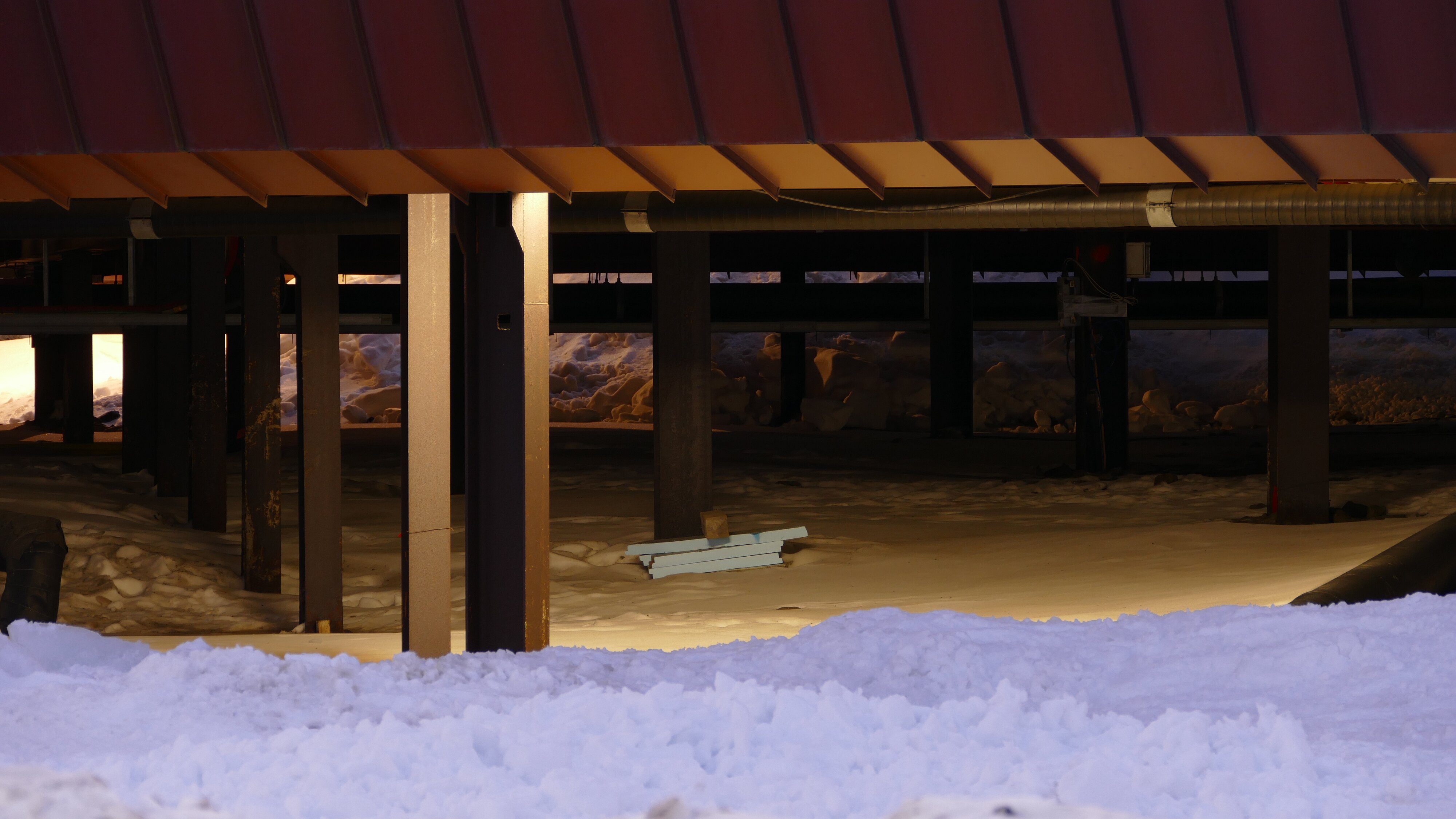 Es ist nun kurz nach 14 Uhr und es dämmert bereits ein Weilchen. Aber in ca. 11 Tagen kommt die Sonne schon wieder und ratzfatz „brennt“ hier den ganzen Tag die Sonne. Und wenn die dann so richtig „brennt“ kann man es sich dann auch auf der neu errichteten Außenterrasse vom Radisson Blu Polar Hotel gemütlich machen. Ich könnte mir vorstellen, dass das durchaus genutzt wird (**). Doof nur, das die Terrasse nach Norden ausgerichtet ist, aber da droht auf jeden Fall schon mal kein Sonnenbrand.