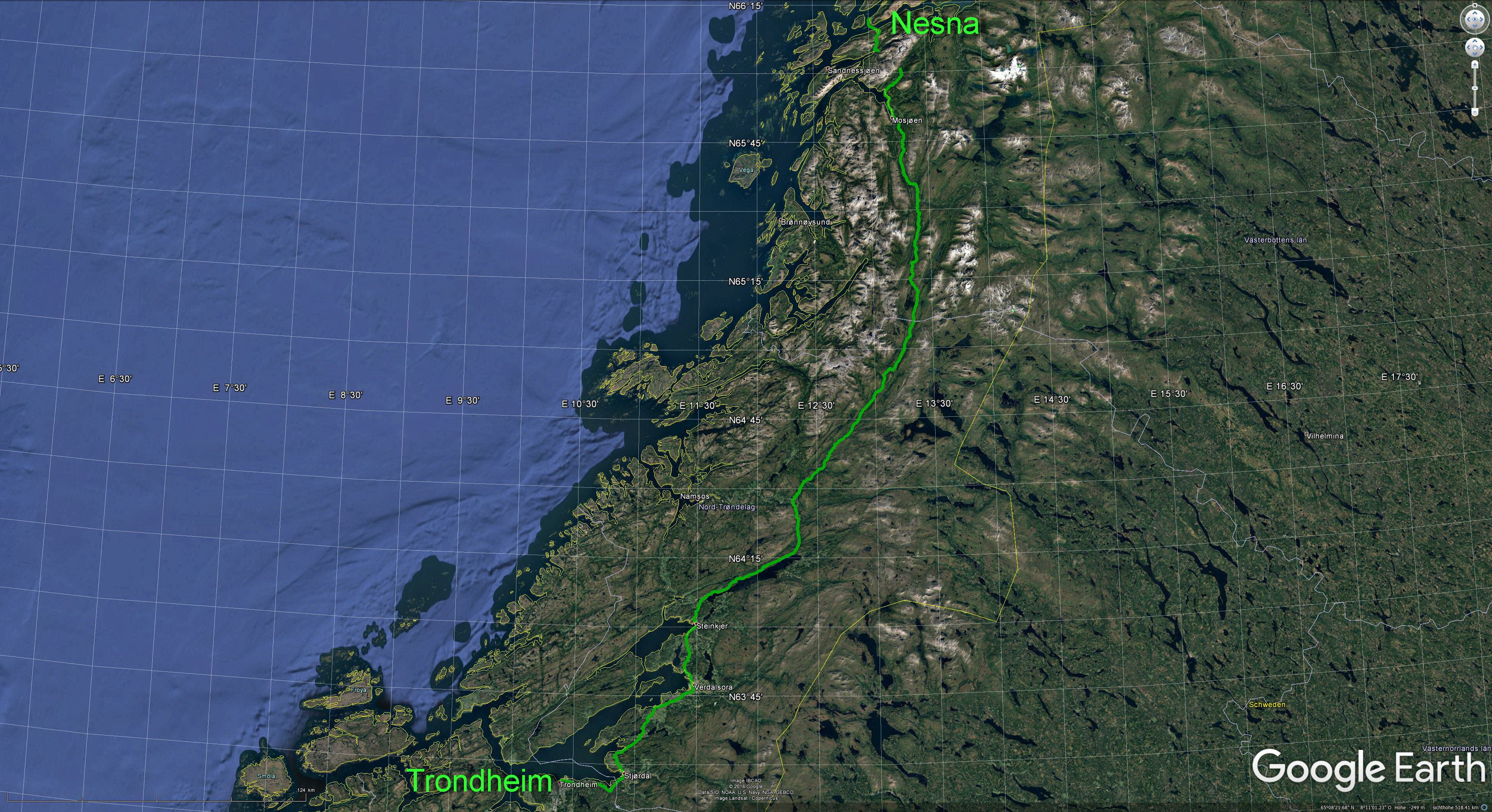 Die Fahrt selbst war nicht mehr so spektakulär wie gestern, das hatte ich auch nicht erwartet. Sowohl die Landschaft war schon etwas gezähmter als auch das Wetter ab Nesna in Richtung Süden nicht mehr nur von 100% Sonnenschein geprägt. Aber ich war auf einem Stück auch immerhin mal wieder auf einer neuen Strecke unterwegs war. Auch für das Navi war sie zum Teil neu, es schickte mich auf eine Strecke bei der ausgeschildert war, dass sie nach 26 km „stengt“, also geschlossen, sei. Die Route die stattdessen auf den Straßenschildern ausgeschildert war kannte das Navi nicht. Zugegeben, die Straße und vor allen Dingen die Tunnels schienen neu zu sein.