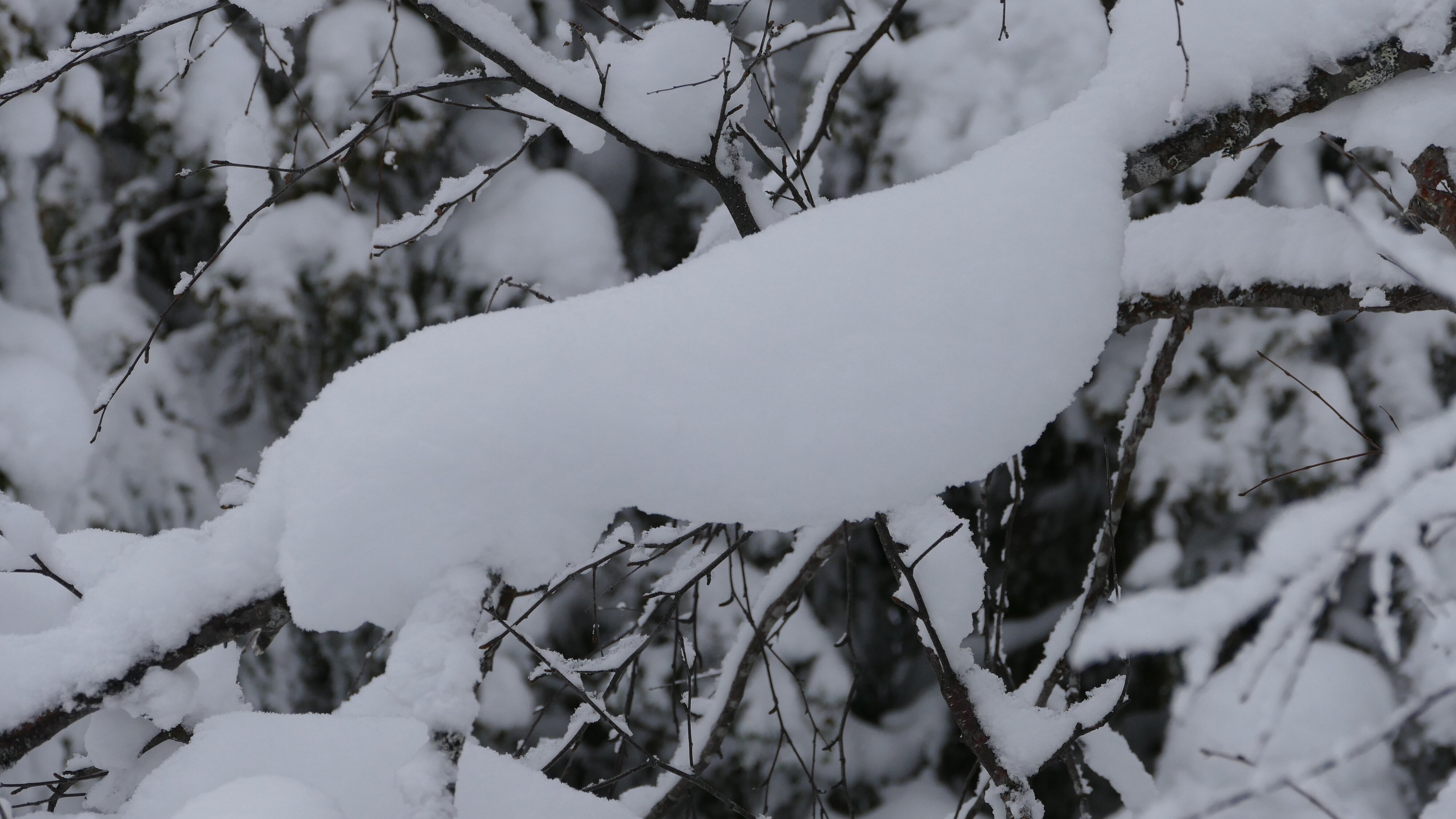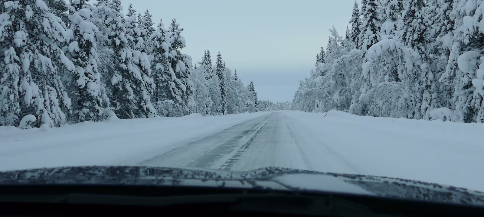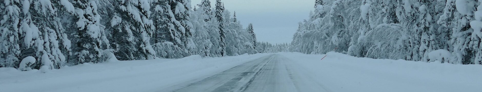 Die Abkürzung um Arvidsjaur hatte ich wieder verpasst, denn die Straßenschilder waren komplett zugeschneit. Aber es gab noch eine zweite Alternative. Die war dann auch gut lesbar ausgeschildert, das Navi weigerte sich eine Alternative zu berechnen. Vorher hatte ich einen Bus gesehen, aber keinen gewöhnlichen sondern einen Test-Bus, teilweise abgeklebt damit man Marke und Model nicht sieht. Ab der Abfahrt Slagnäs fuhr dann ein Test-LKW vor mir her, der eine gigantische Schneewolke hinter sich her zog. Das machte natürlich gar keinen Spaß. Also bei der nächsten Gelegenheit angehalten und erst mal etwas Zeit vergehen lassen. Es lag enorm viel Schnee, die Straße war komplett mit Schnee bedeckt.