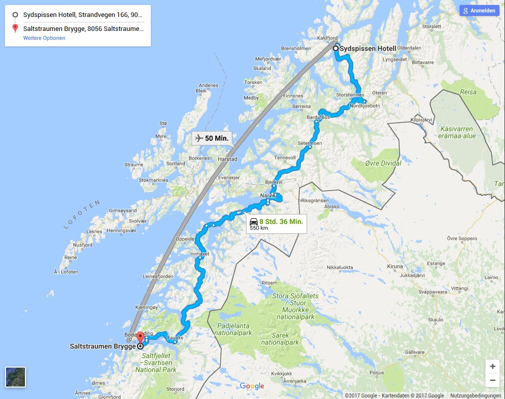 Um 21 Uhr war der peak im Saltstraumen bei ablaufendem Wasser, aber wenn es stockdunkel ist, kann man zwar schon das Wasser noch recht schnell fließen sehen, aber es ist zu weit weg, dass man das fotografieren kann. Muss ich auf morgen früh warten.