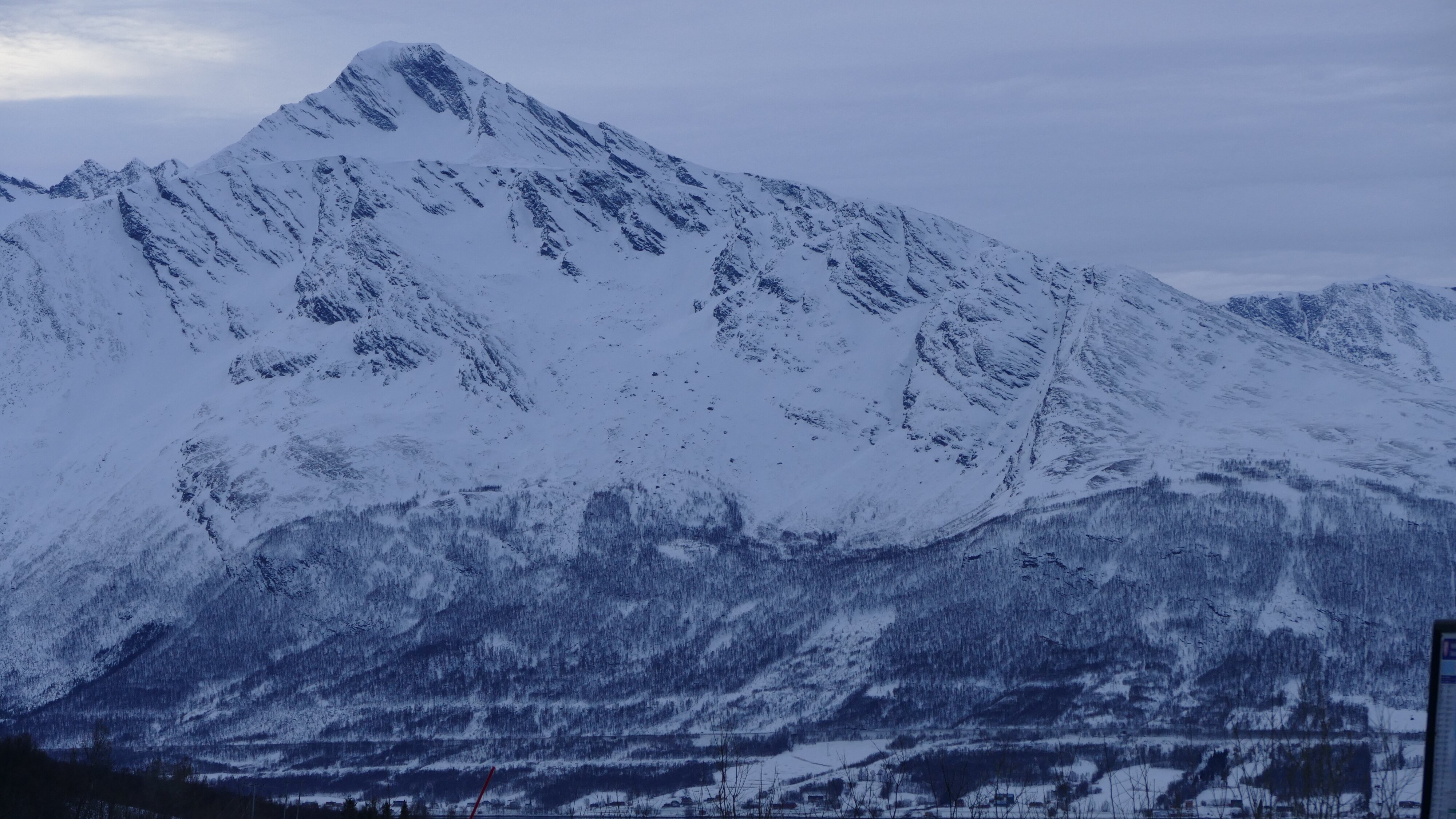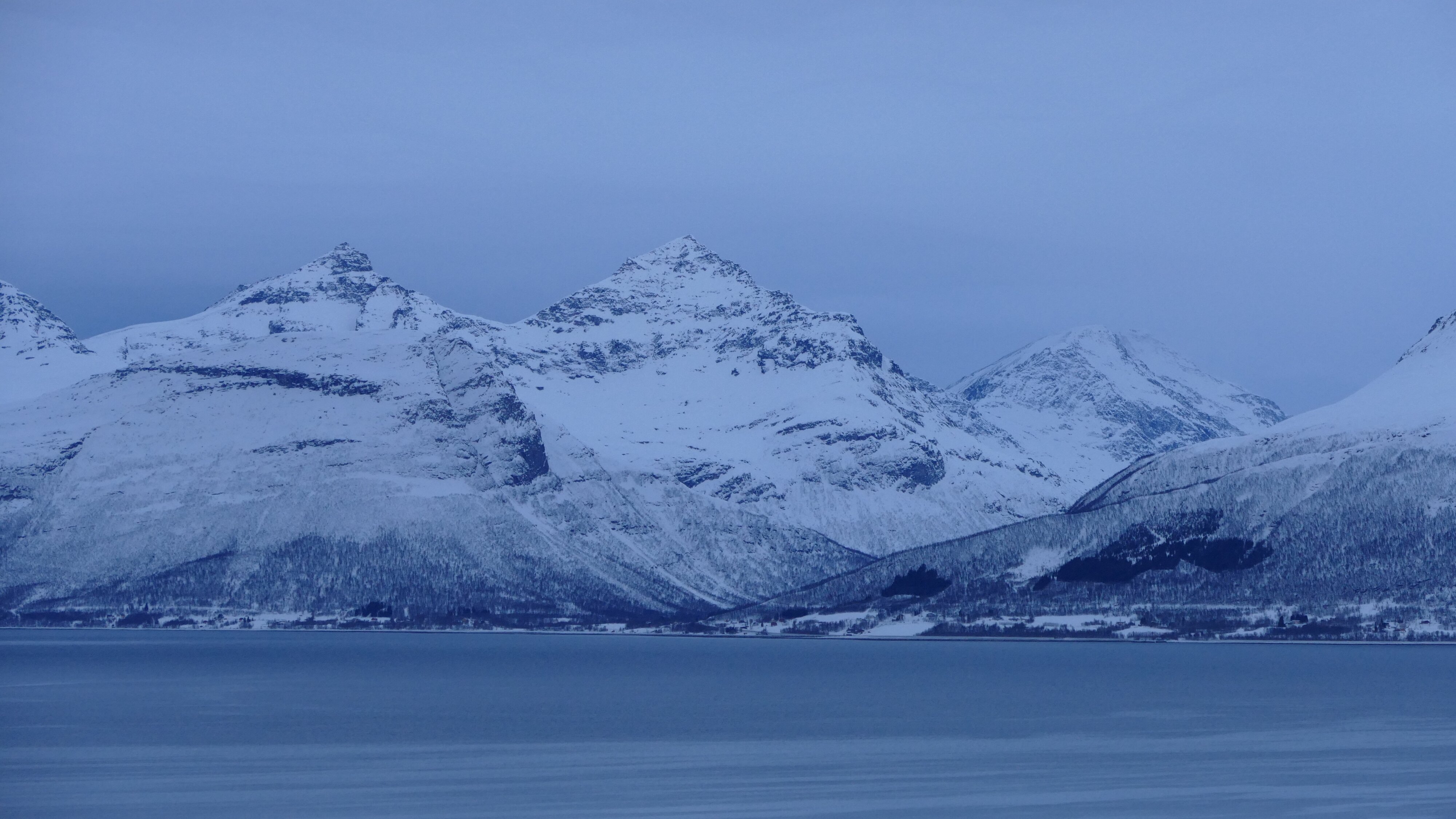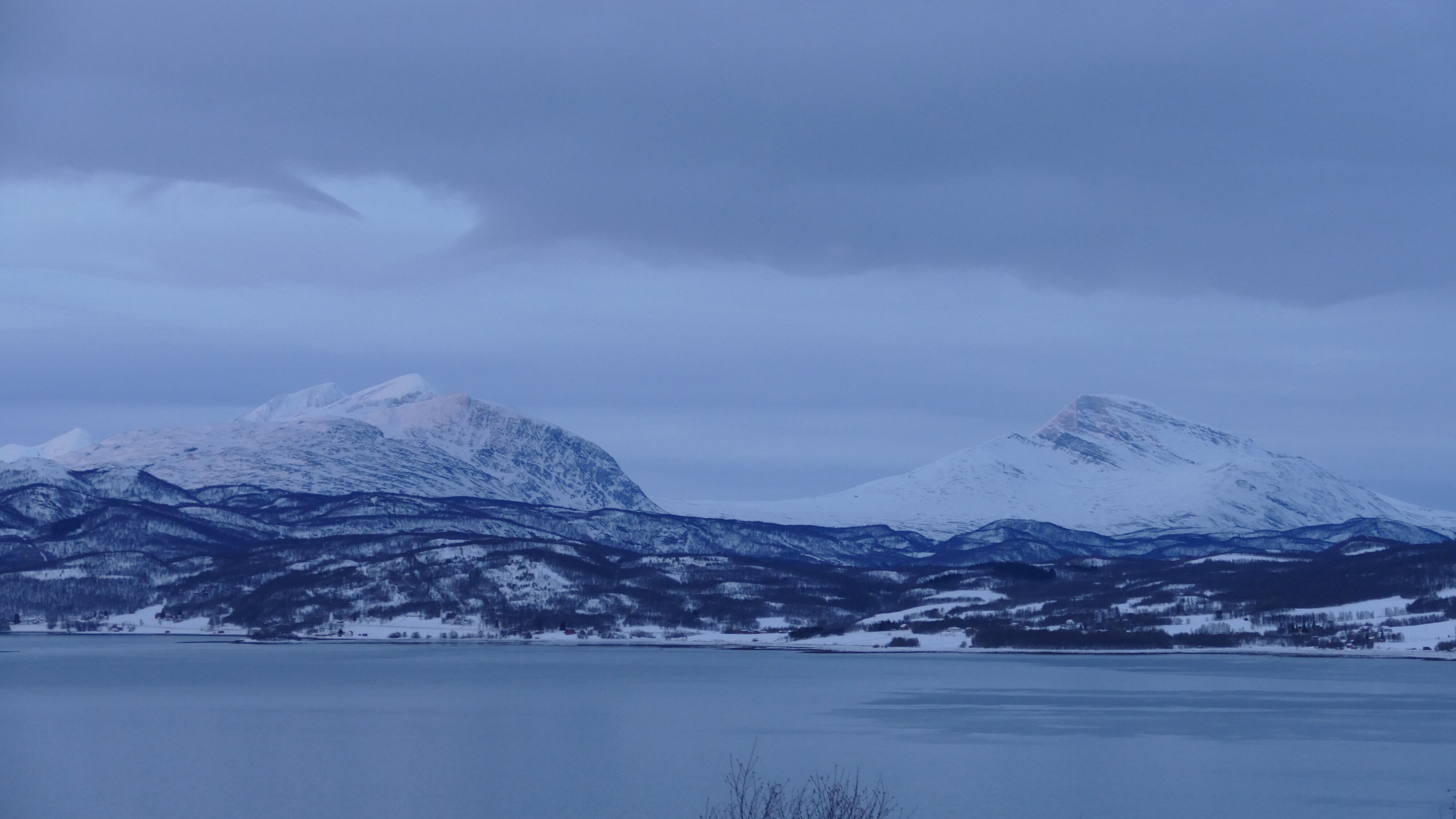 Tja die heutige Fahrt war jetzt nicht so spektakulär, Sonne gab es doch keine zu sehen, noch nicht den kleinsten Fitzel blauen Himmels, einzig nicht lange nach Tromsø gab es mal ein paar sehr schön beleuchtete Wolken. Und temperaturmäßig ging es teilweise bis auf +5 °C hoch, trotzdem lag überall noch jede Menge Schnee.