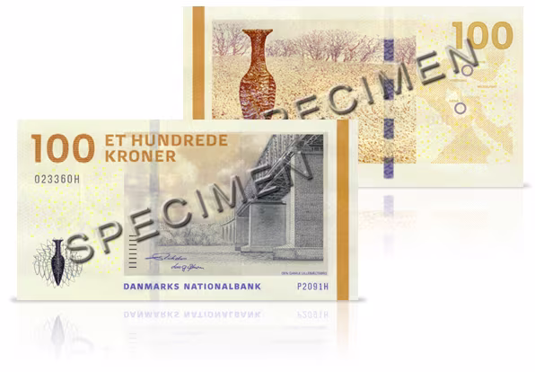 100-kronesedlen – Den gamle Lillebæltsbro og Hindsgavl-dolken. © Danmarks Nationalbank