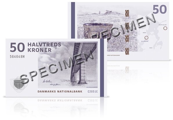 50-kronesedlen – Sallingsundbroen og Skarpsalling-karret. © Danmarks Nationalbank