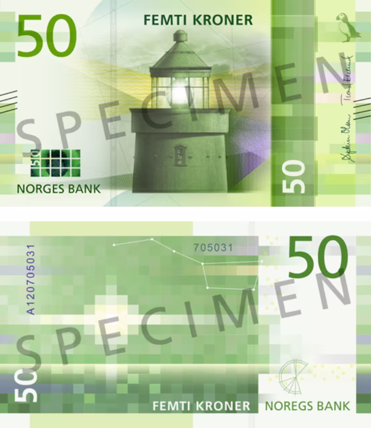 Seddel Ny 50-kroneseddel, Utgave VIII, Planlagt utgitt 4. kvartal 2018, © Norges Bank