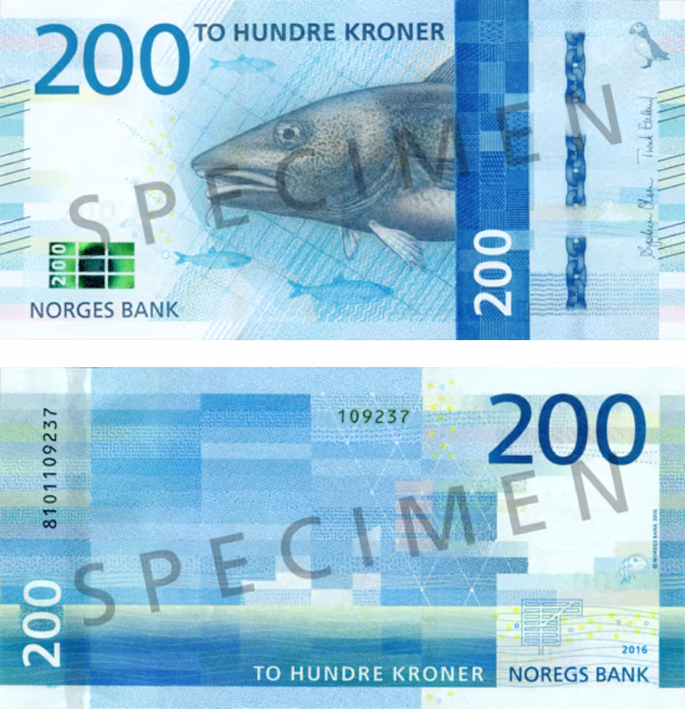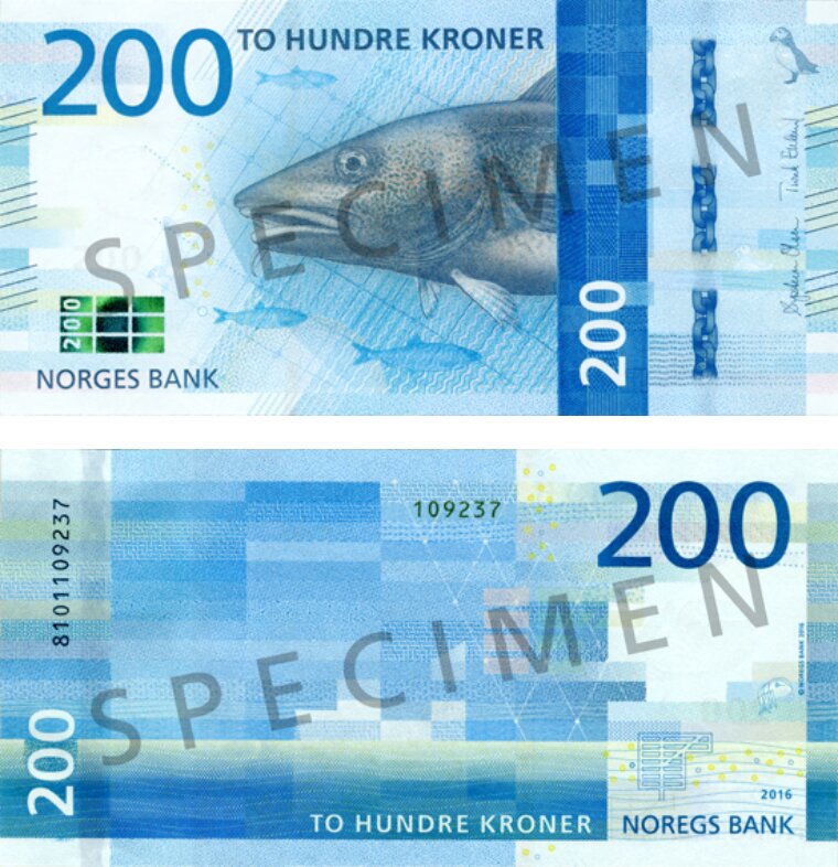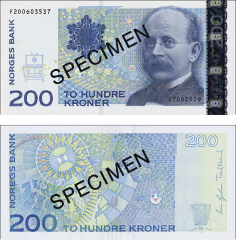 Seddel 100- og 200-kronesedler, © Norges Bank
