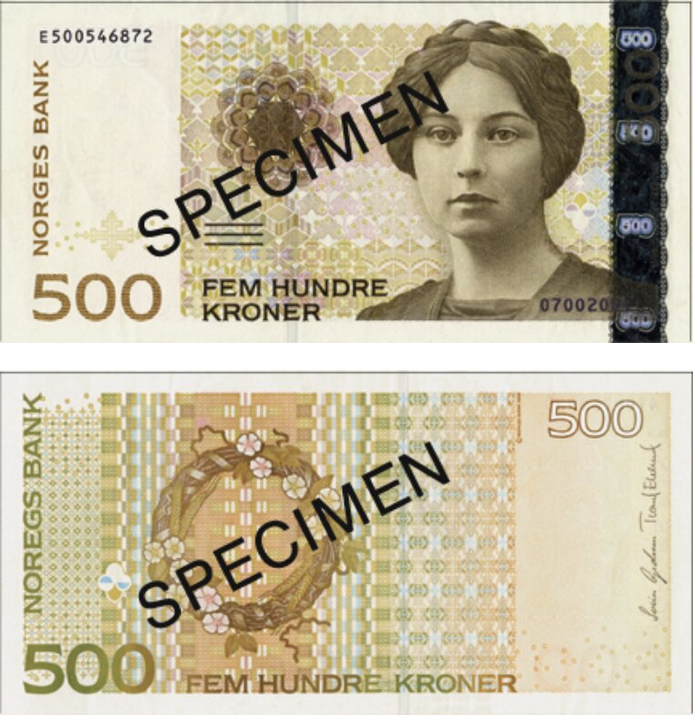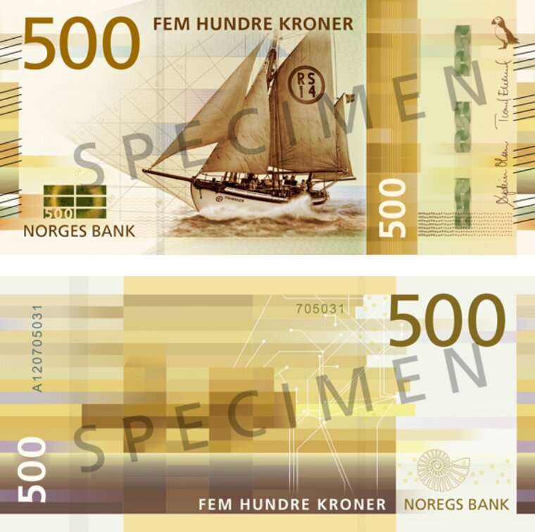 Seddel Ny 500-kroneseddel, Utgave VIII, Planlagt utgitt 4. kvartal 2018, © Norges Bank