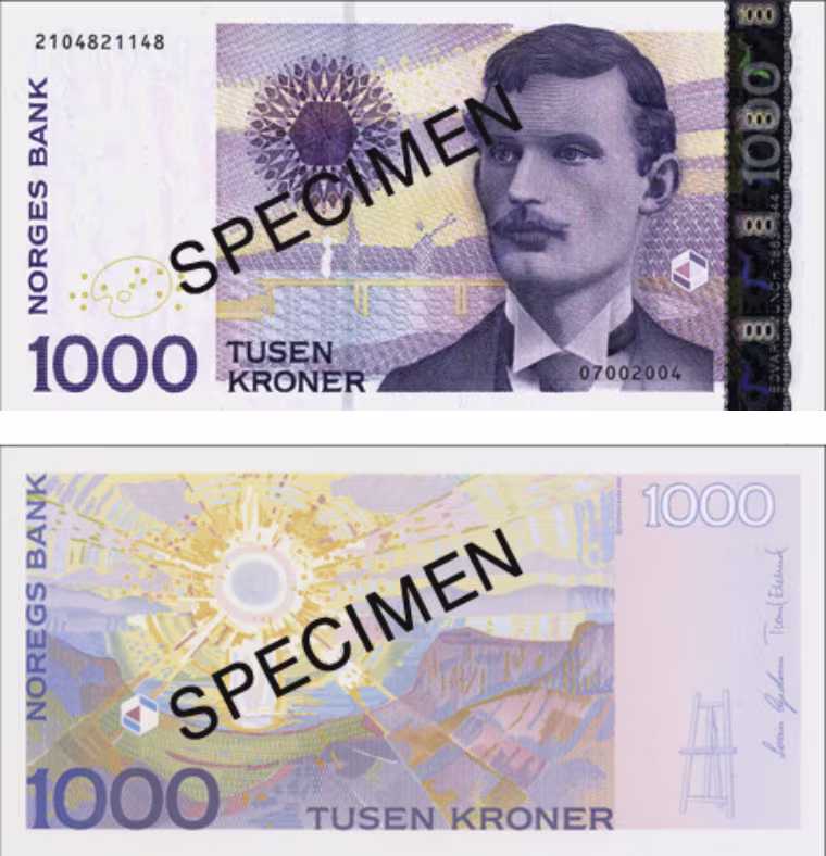 Ny 1000-kroneseddel, Utgave VIII, Planlagt utgitt 4. kvartal 2019, © Norges Bank