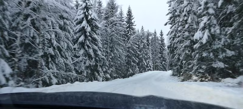 Wenn man jetzt mal den Anreisetag nach Sverige abzieht und den heutigen Tag als ersten „richtigen“ Reisetag zählt, dann war das ein perfekter Start. Zwar hatte es über Nacht angefangen zu regnen und einiges an Schnee war dahin gemeuchelt, ab kaum hinter Malmö war die Landschaft dann doch recht schnell verschneit, was, wenn ich mich recht entsinne, nur 2015 so war. Bis Halmstad fuhr ich auf der [E20], und entgegen des gut gemeinten Rates des Navis, bin ich dann dort von der Autobahn runter und war in Nullkommanix im Schlaraffenland. Nicht nur, dass bereits hier der Inlandsvägen beginnt, sondern auch die Straßenverhältnisse waren genauso so wie ich es frühestens erst morgen erwartete hätte, nämlich eine geschlossene Schneedecke auf der Straße und in der Landschaft richtig ordentlich Schnee, auch auf den Bäumen lag etwas.