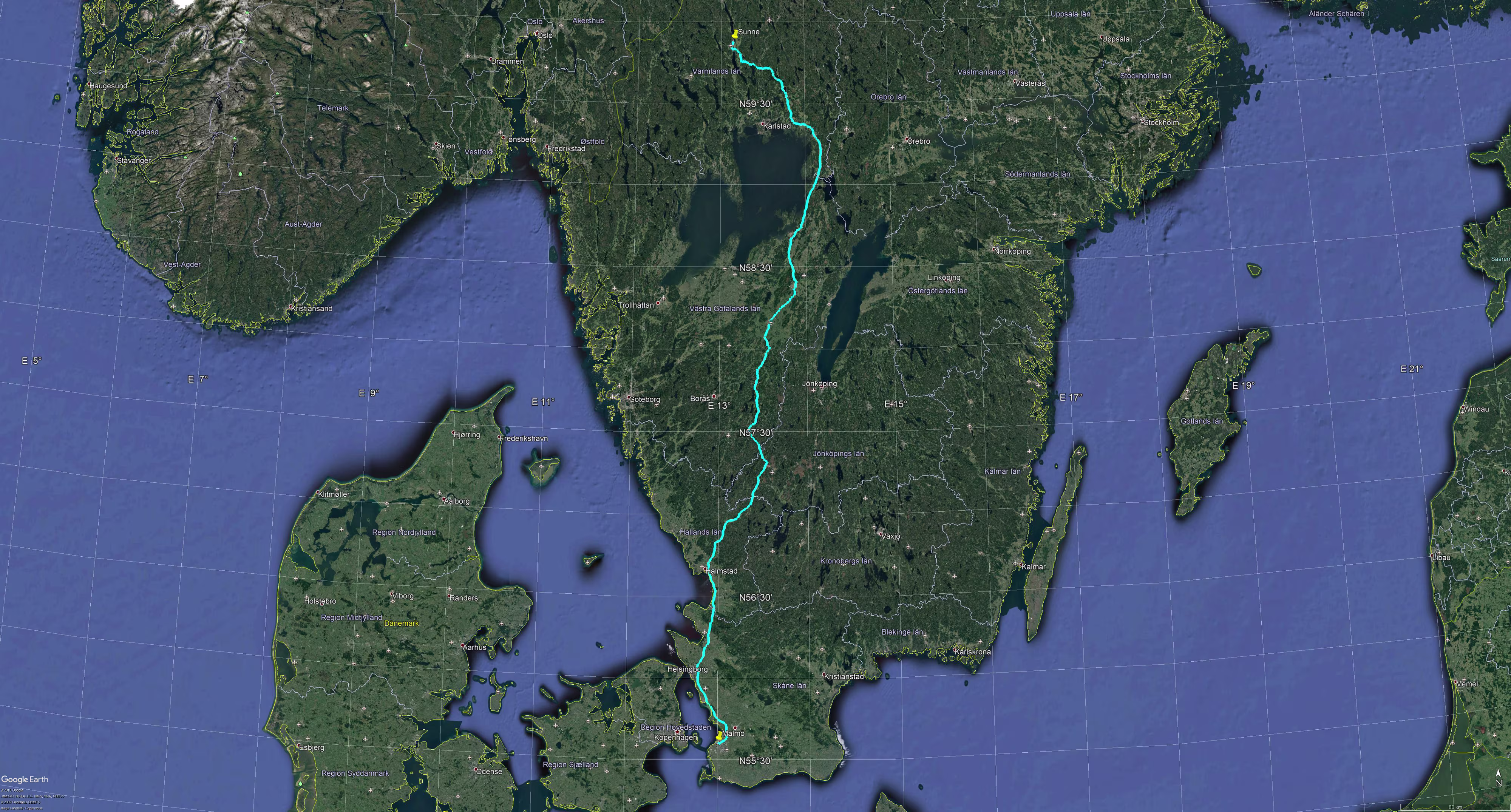 Die Fahrt von Malmö zur nächsten Tagesetappe kann auf sehr unterschiedlichen Routen unternommen werden. Prinzipiell westlich oder östlich um den großen Vänern [1] herum. Dieses Mal soll es wieder östlich am Vänern vorbei führen, allerdings nicht mehr auf der schnellen [E4] entlang, sondern auf der [E20] bis Trafikplats Halmstad [2] Norra (Ausfahrt 45) und dann weiter auf der [26]. An Gislaved vorbei biegt man links ab auf die [27]. Später dann rechts ab auf die [157]. Nach Ulricehamn weiter auf der [46], bei Borgunda geht es wieder auf die [26]. Von da ab geht es wieder weiter auf bekannten Pfaden, vorbei an Mariestad, Kristinehamn und Karlstad.