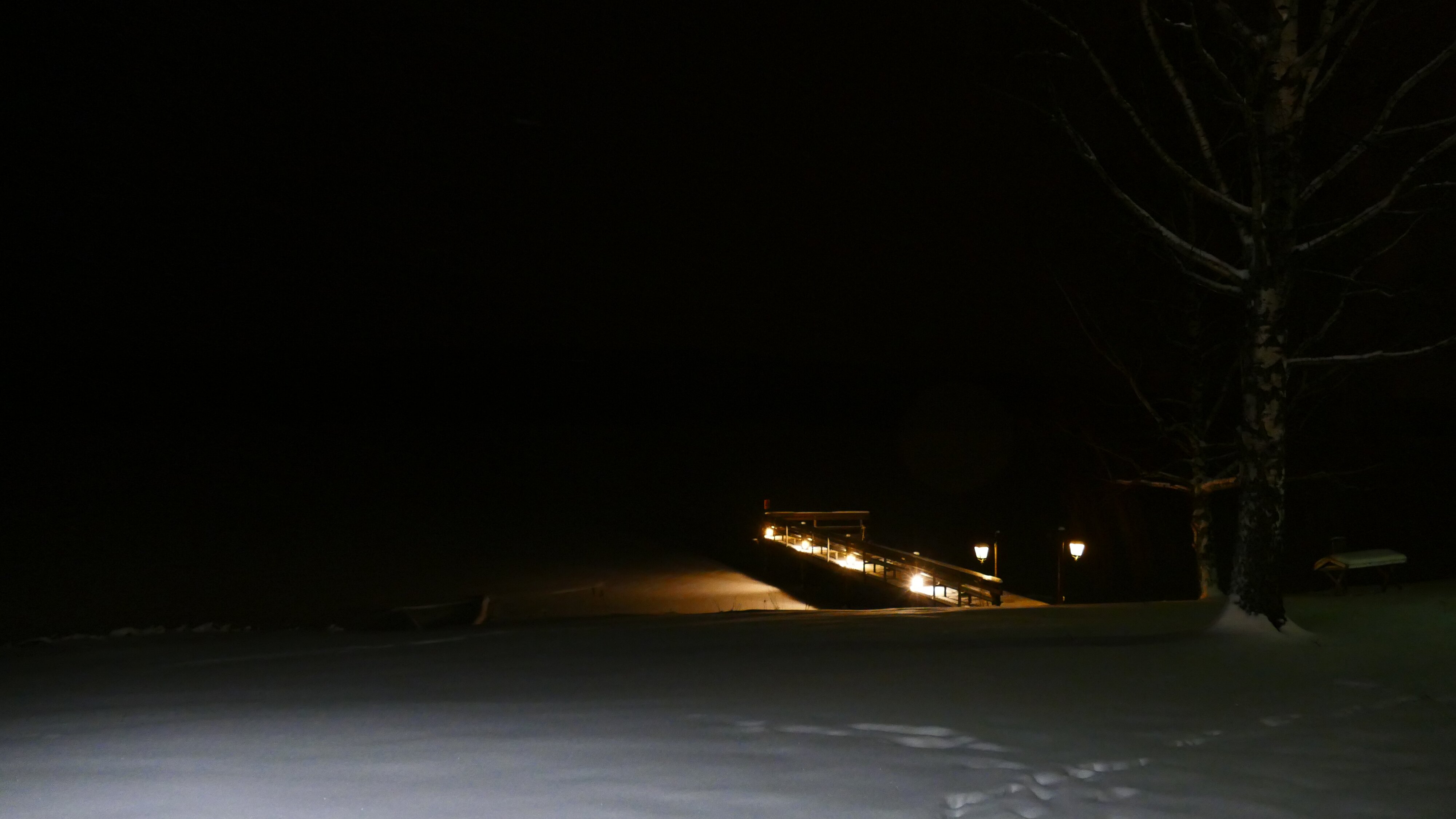 Nun war ich gerade im Restaurant des Hotels, noch mal die paar Kilometer zurück ins Städtchen wollte ich nicht fahren. Obwohl es jetzt keine ungewöhnliche Zeit war, kurz nach 19 Uhr, war das gesamte Restaurant leer. Aber egal. So hatte es auch Plätze direkt an den Fenstern mit Blick auf den Övre Fryken, wobei vermerkt sei, dass man nichts vom See sah, denn es war ja schon stockdunkel. Aber draußen hat es noch eine kleine Terrasse, etwas illuminiert, dann noch einen kleineren Weg, etwas Uferstreifen und ab da verschluckt schon die Dunkelheit jeden Lichtstrahl. Morgen früh wird hier auch das Frühstück eingenommen, da dürfte mehr zu sehen sein.