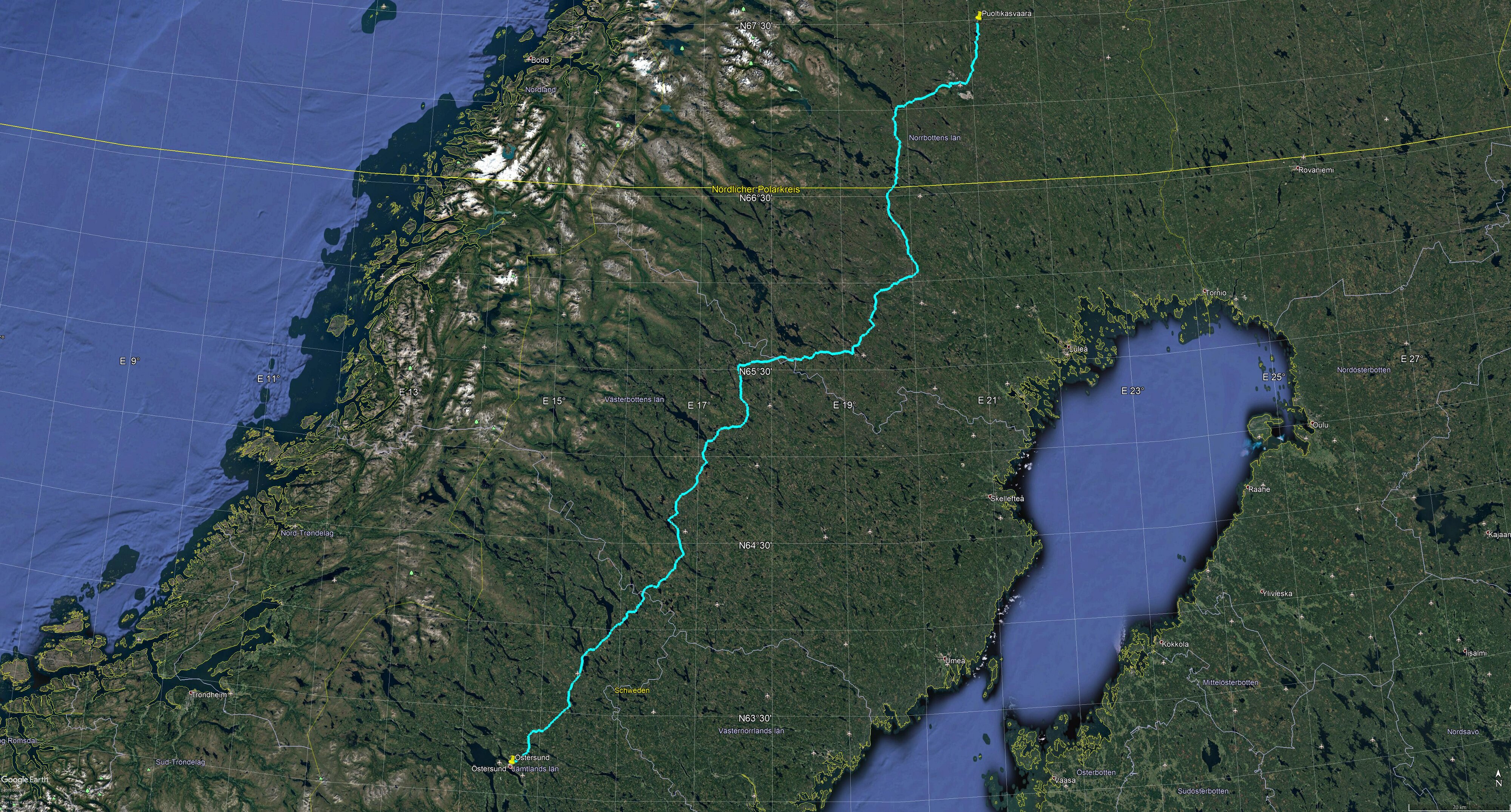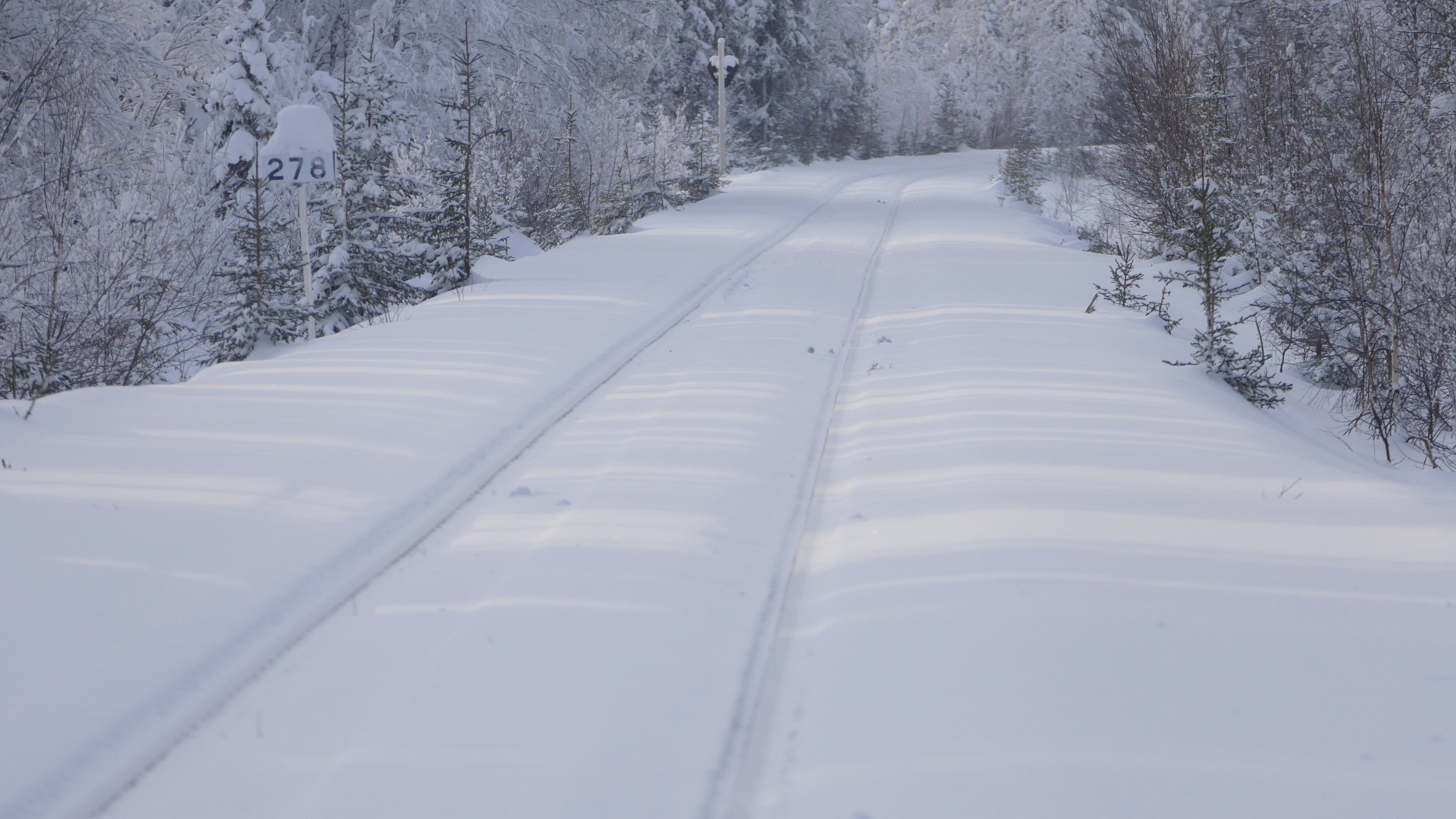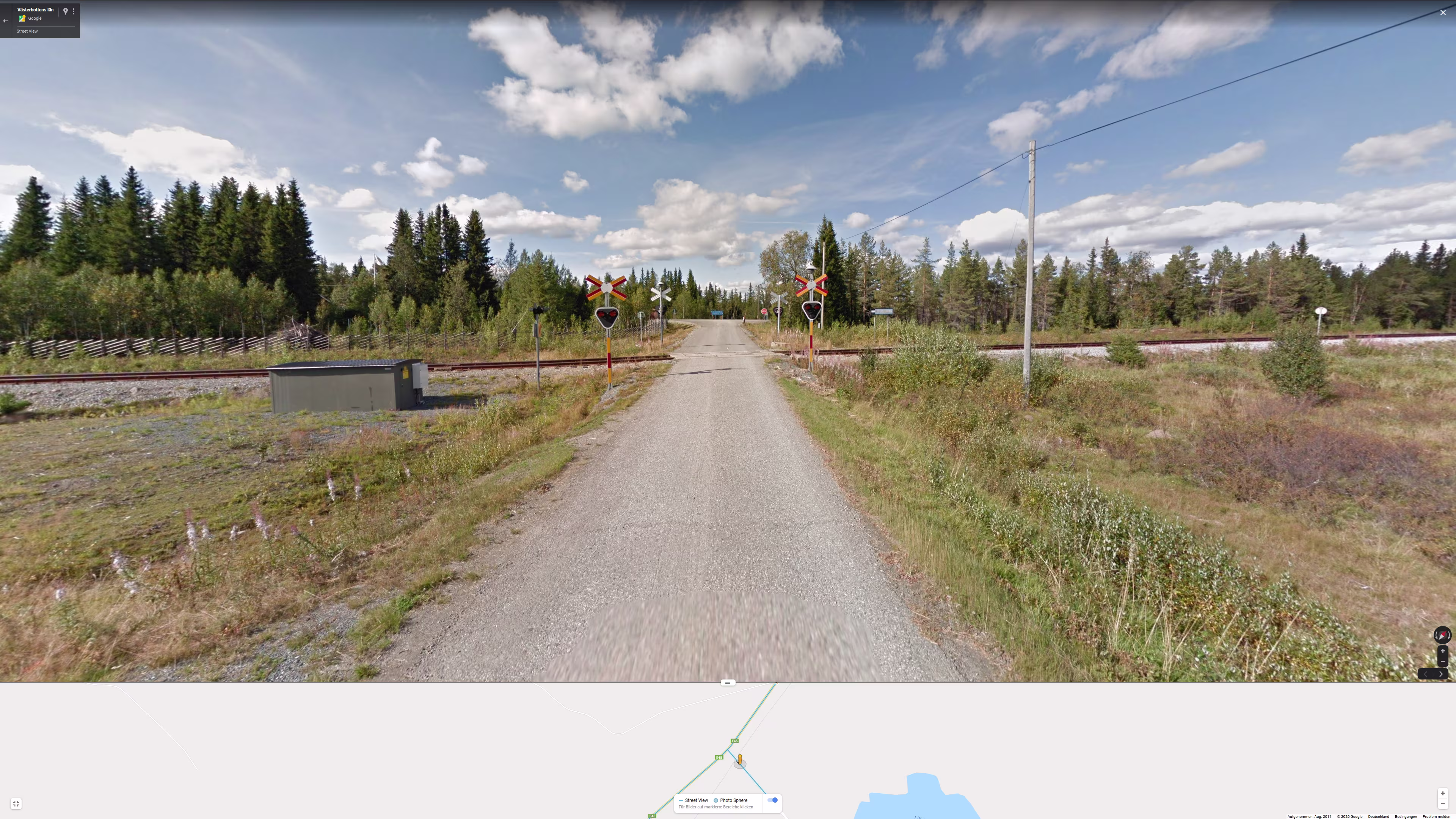 Geschenk #3: An einigen Stellen sieht man immer mal wieder die Bahngleise der Inlandsbanan und überquert sie auch mehrfach. Ich fahre also so dahin und bin an einer Stelle wo die Bahngleise für einige hundert Meter direkt und nah an der Straße entlang führen und es kommt plötzlich etwas großes aus dem Wald gefahren. Ein LKW, etwa mit Holz beladen konnte es nicht sein. Es war eine Lok mit zig Wagons, beladen mit Holz. Und das Glück konnte gar nicht größer sein, auf der anderen Straßenseite war ein Parkplatz den ich ansteuerte und den ganzen Vorgang filmen konnte. Mal sehen was da aufgezeichnet wurde.