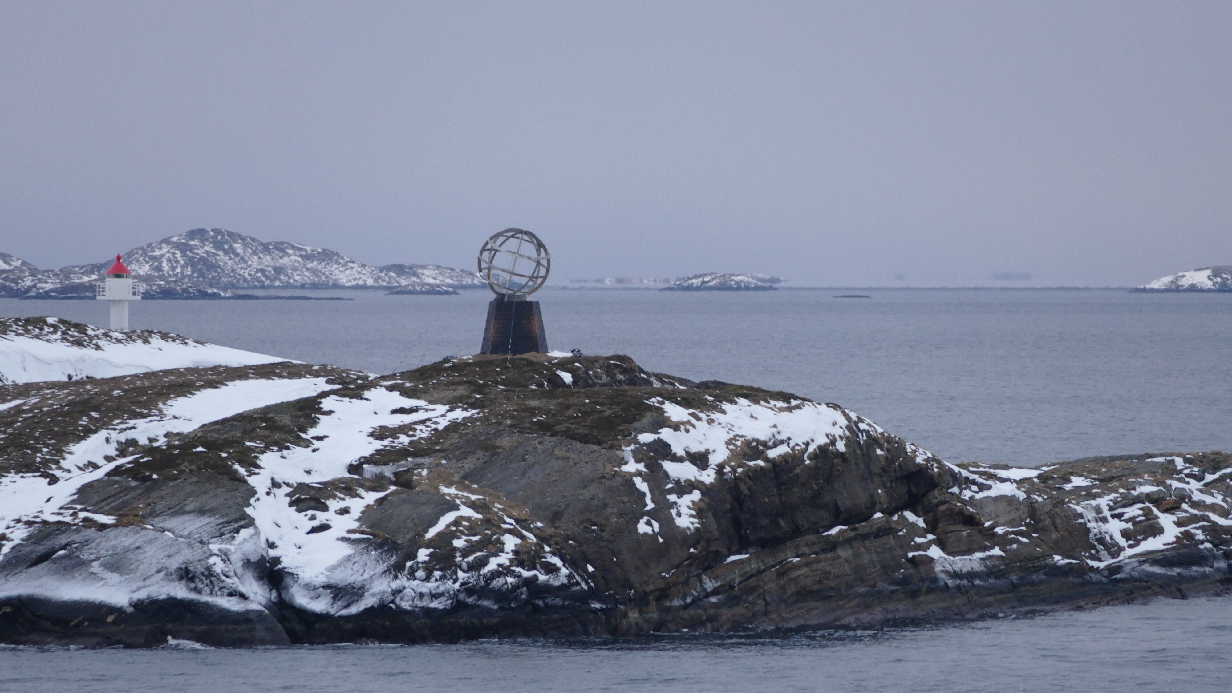 Frühstück war wieder fantastisch. Wettermäßig war es durchwachsen, stark bewölkt, aber während des Frühstücks konnte man im Osten mal kurz die Sonne durch die Wolken scheinen sehen. Wie üblich wurde natürlich die Polarkreistaufe auf dem obersten Deck, draußen, zelebriert. Es hatte sich eine ansehnliche Menge versammelt und schlürfte für schlappe 99 NOK ein Glas schäumendes Etwas. Gegen Einnahme eines Löffels Lebertrans gab es dann auch das ausgelobte Geschenk, was auch immer das war.