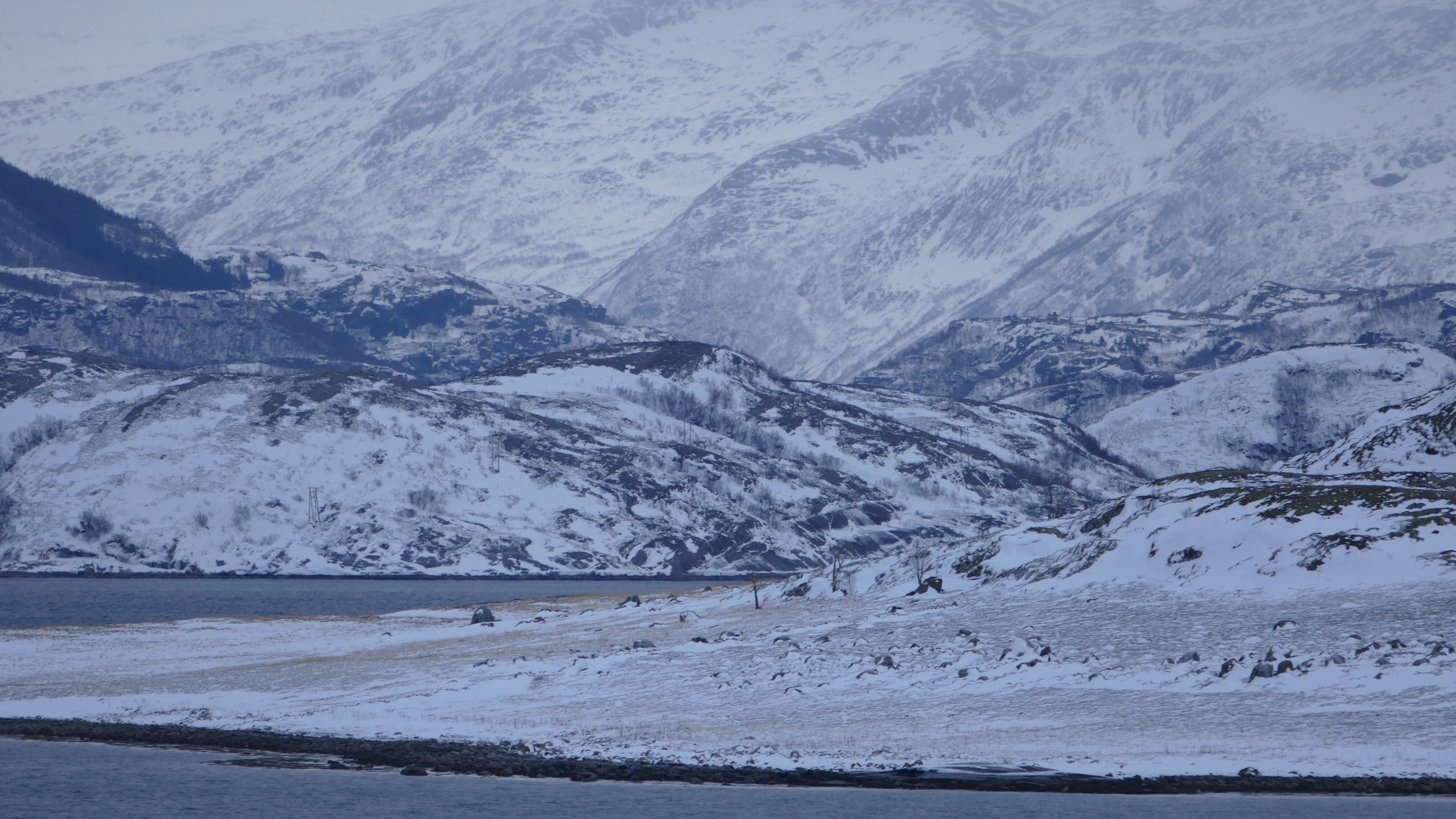 Es folgte dann recht unvermittelt ein fast 11 km langer Tunnel. Etwas Schonzeit vor Wind und Wetter, denn danach windete und schneite es immer noch heftig. Man kommt dann irgendwann auf die [E6], die aber nichts weiter ist als eine schmale, kurvige Landstraße, Kilometer um Kilometer.