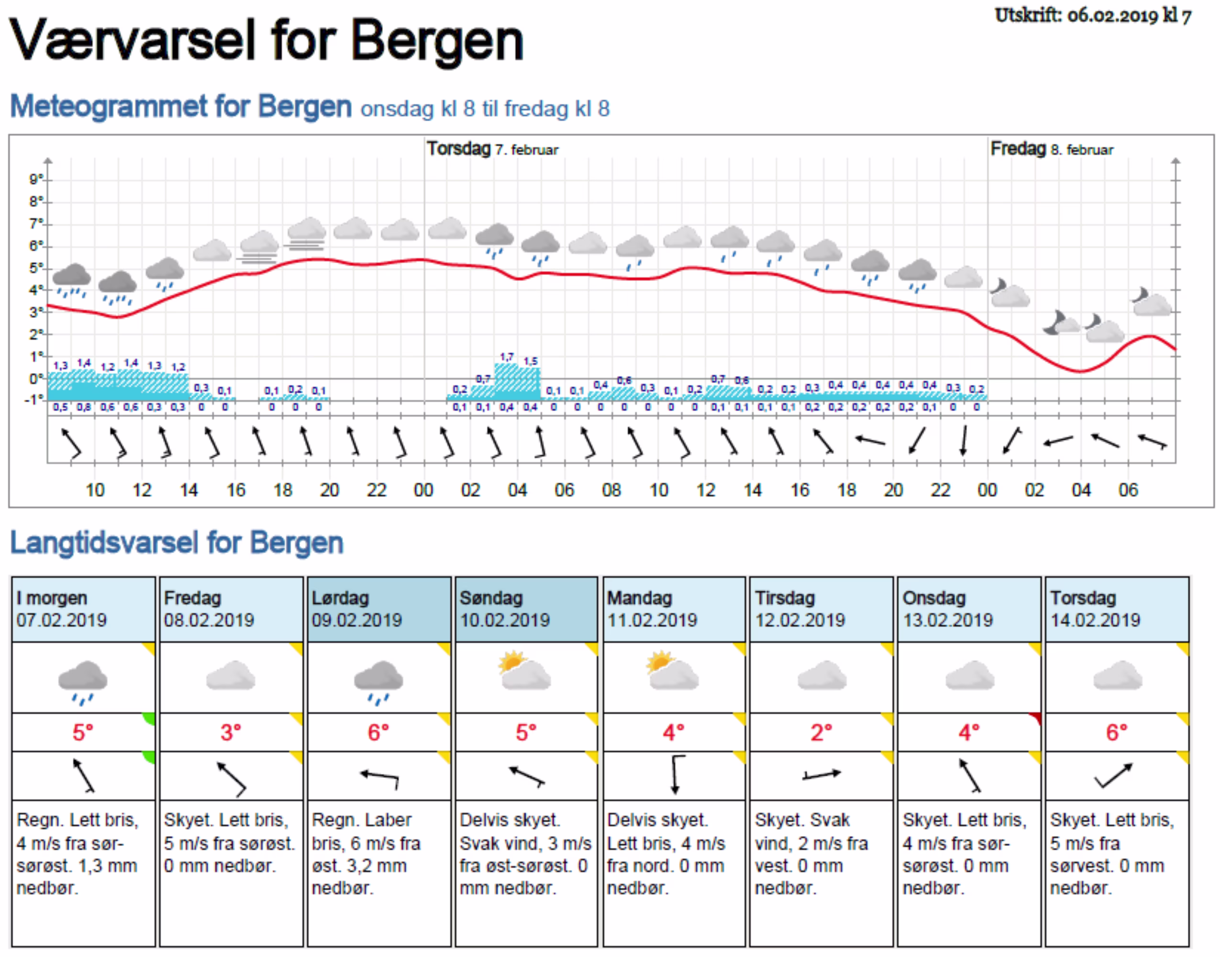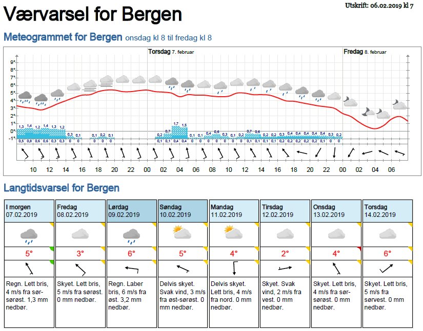 Værvarsel for - Bergen (Hordaland)