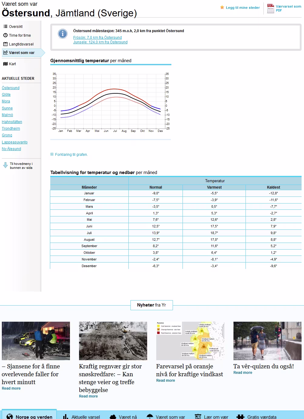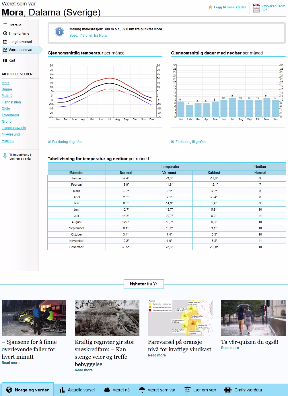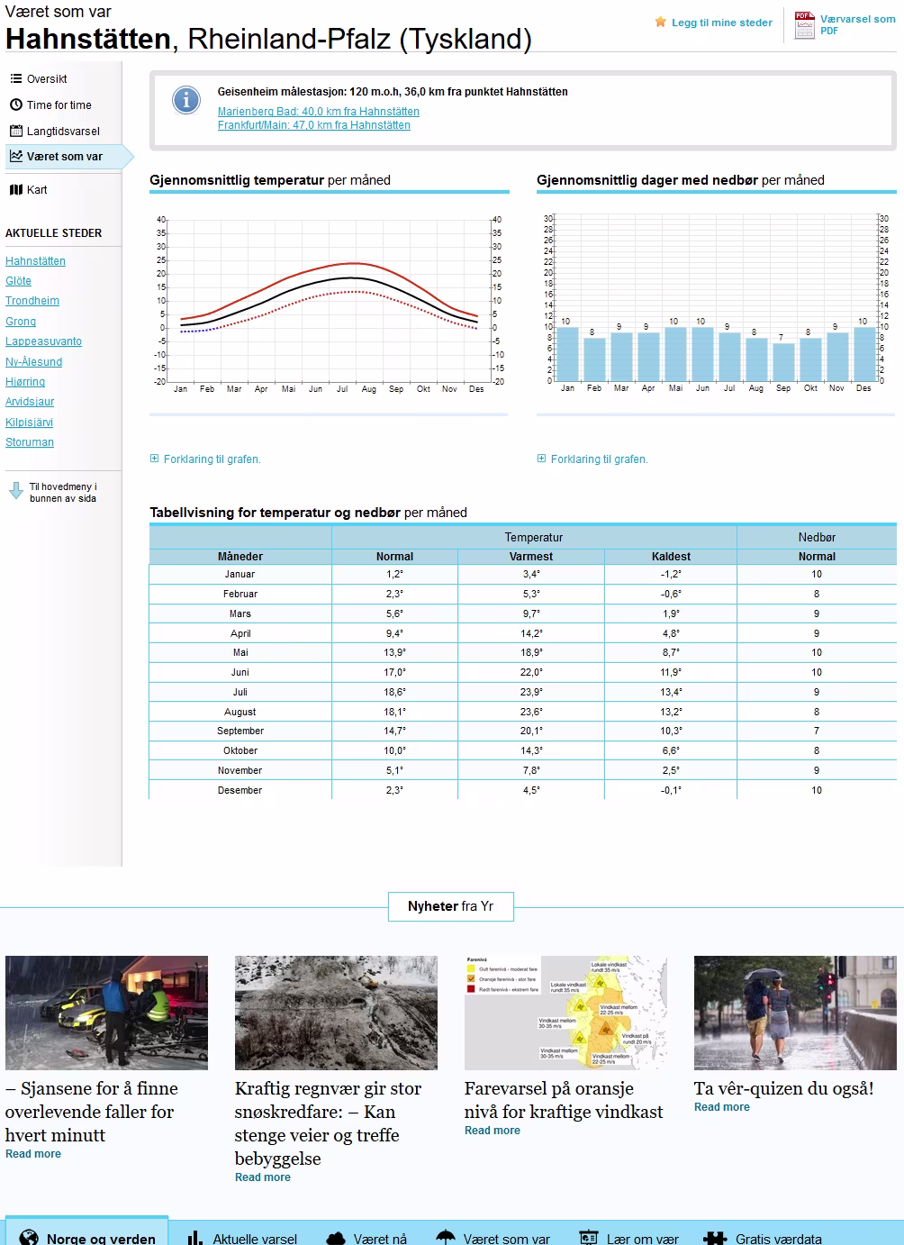 Statistische Wetterdaten zu den einzelnen Orten