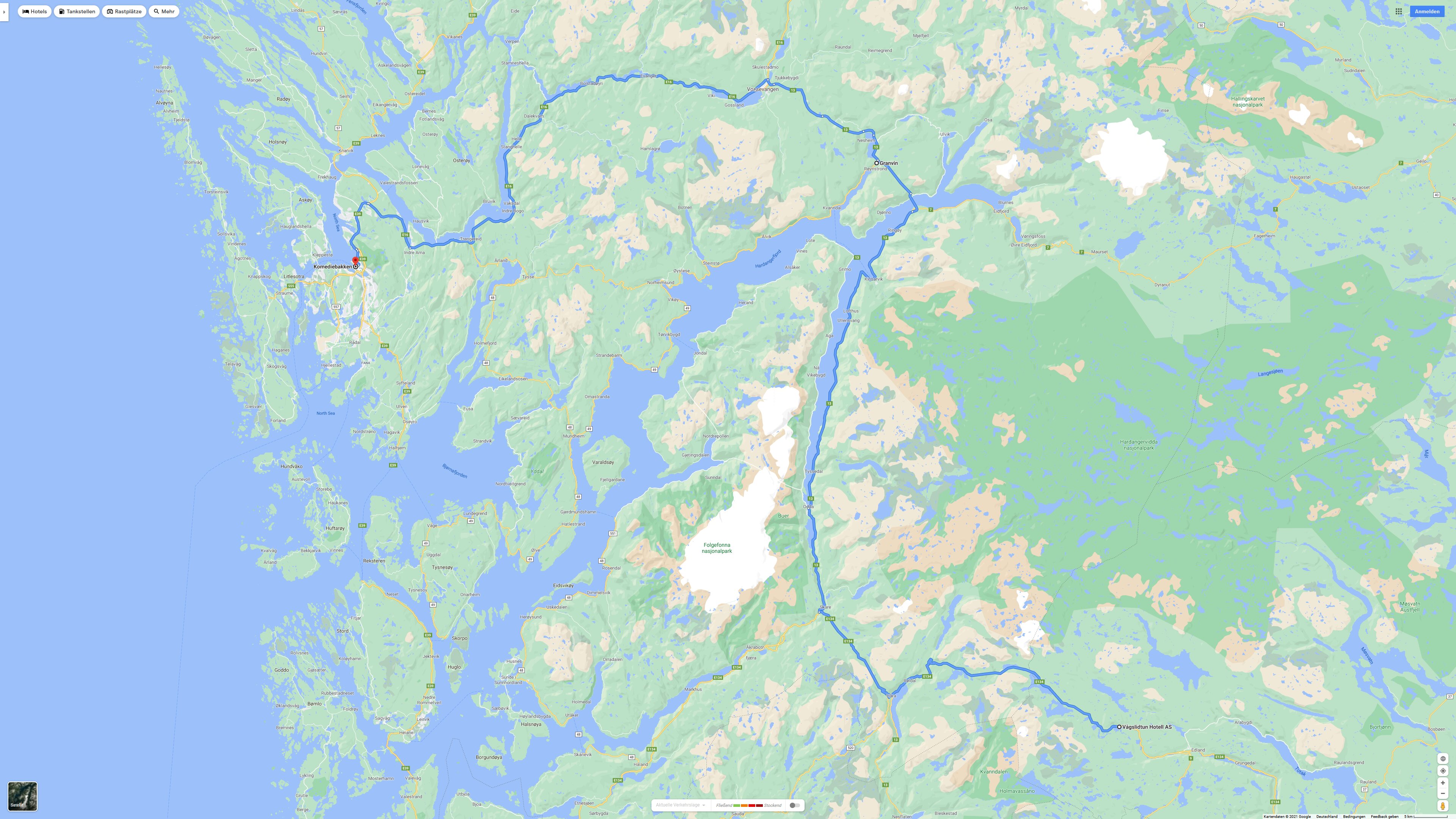 Bis Odda gibt es erstmal keine (sinnvolle) Wahlmöglichkeit, denn der [E134] in Richtung Haugesund zu folgen ist nicht möglich, weil die Straße im Winter gesperrt ist. Nach Odda hat man dann die Wahl, entweder durch den Folgefonntunnelen und über die Fähre Jondal – Tørvikbygd (sonntags fährt die Fähre immer zur Stunde 20) oder weiter am westlichen Hardangerfjord und über die Fähre Utne – Kvandal (sonntags fährt Fähre immer zur halben Stunde). Beide Varianten bin ich schon gefahren.