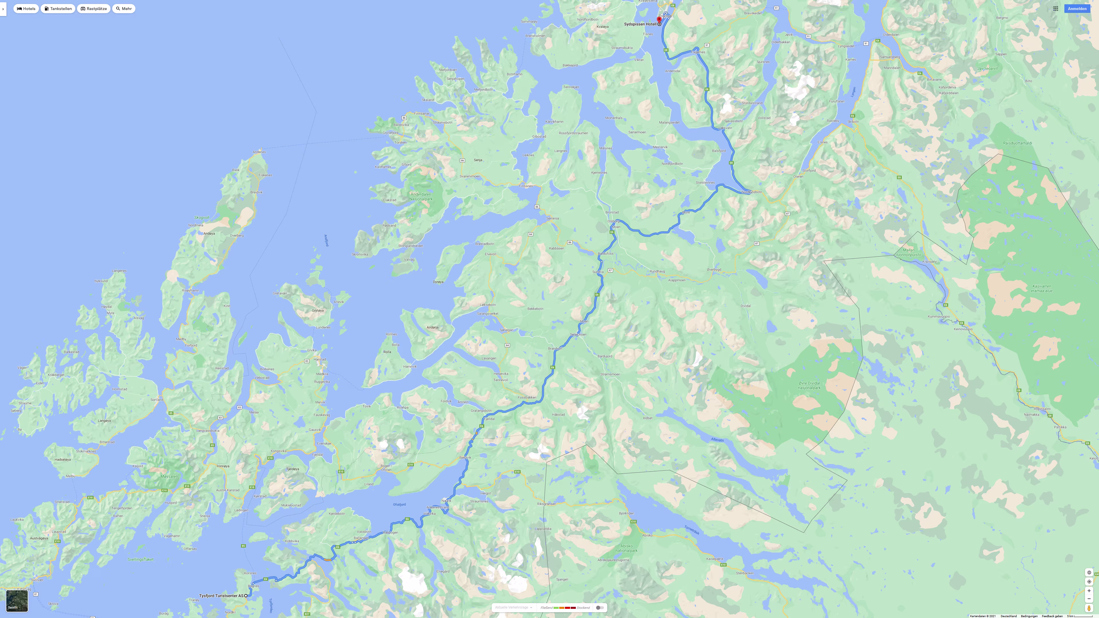 Die Tagesstrecke ist überschaubar. Die Fähre Bognes – Skarberget fährt recht regelmäßig. Von der Unterkunft bis zum Fähranleger sind es nur wenige Kilometer. Die Fähre um 09:10 Uhr kann also locker erreicht werden. Die Fähre um 08:00 Uhr anzustreben, naja das muss nicht sein. Die Fahrpläne: