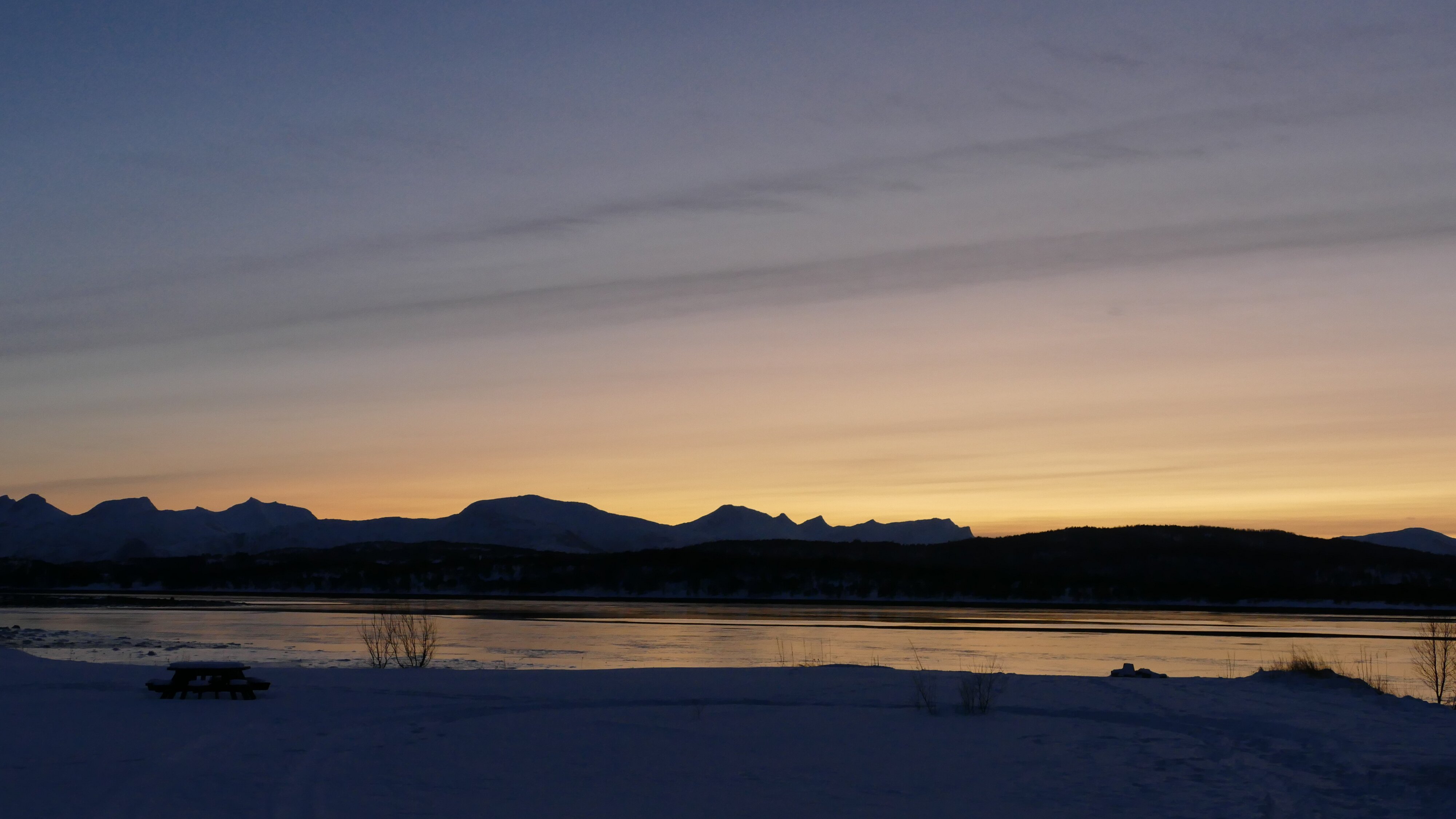 Hinter jeder Biegung gab es wieder etwas Neues zu sehen. Da war die Aktion gestern am Saltfjellet schnell vergessen. Durch die vielen Stopps verging die Zeit wie im Flug. Langsam setzte dann auch die Dämmerung ein, was besonders bei solch klaren Wetterverhältnissen ein Traum ist, setzt dann dazu noch passende klassische Musik ein ist das Erlebnis perfekt.