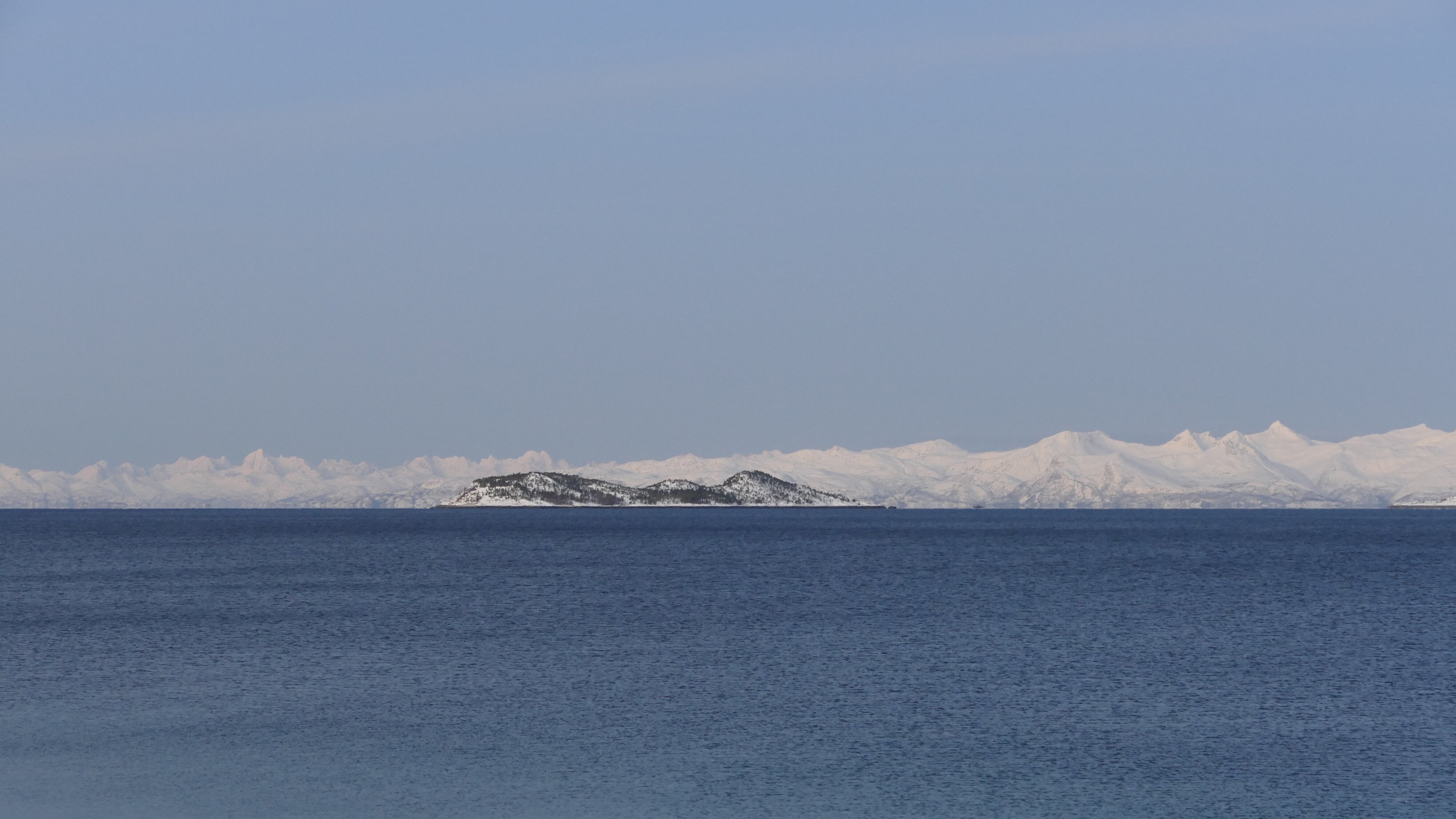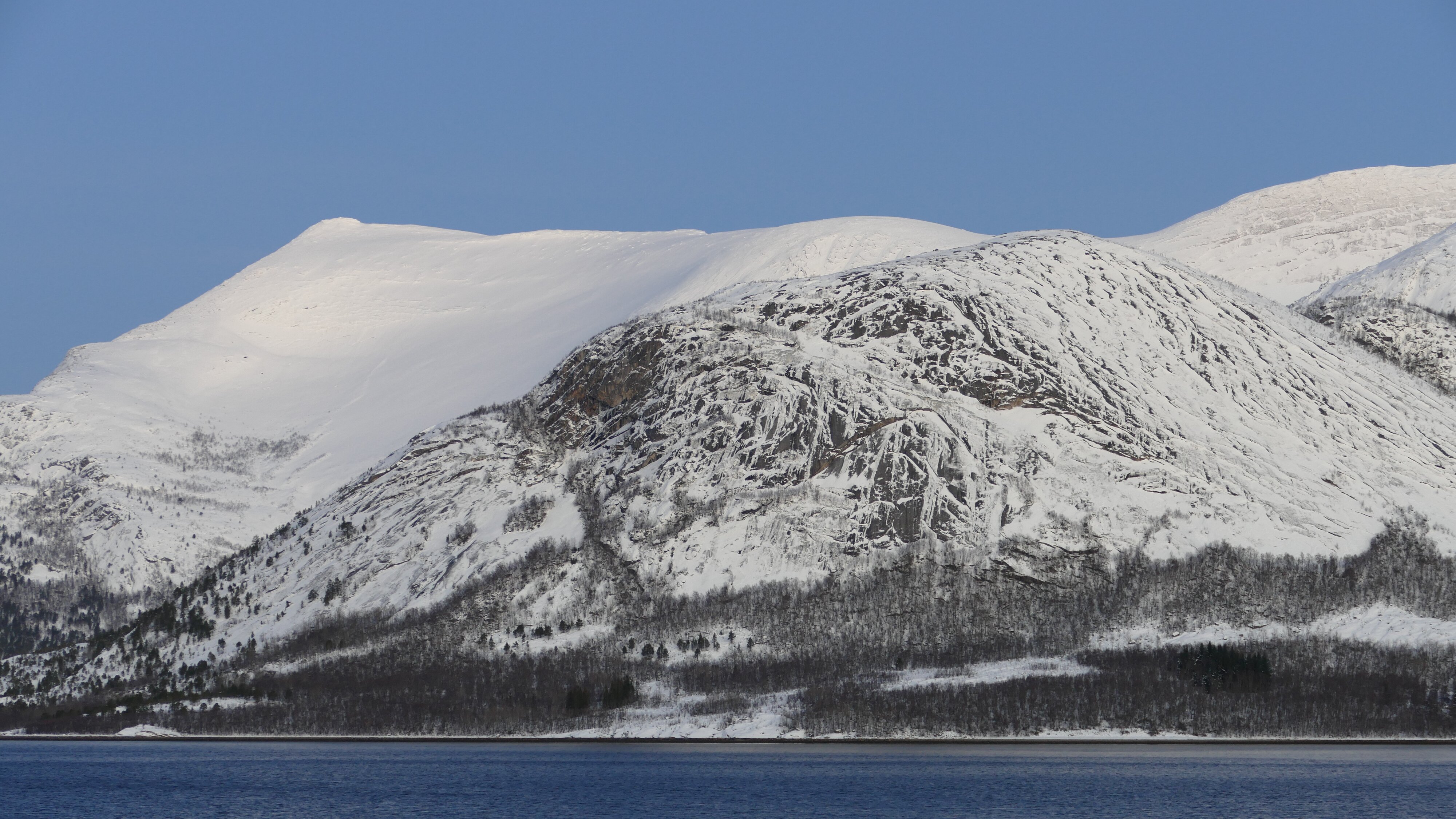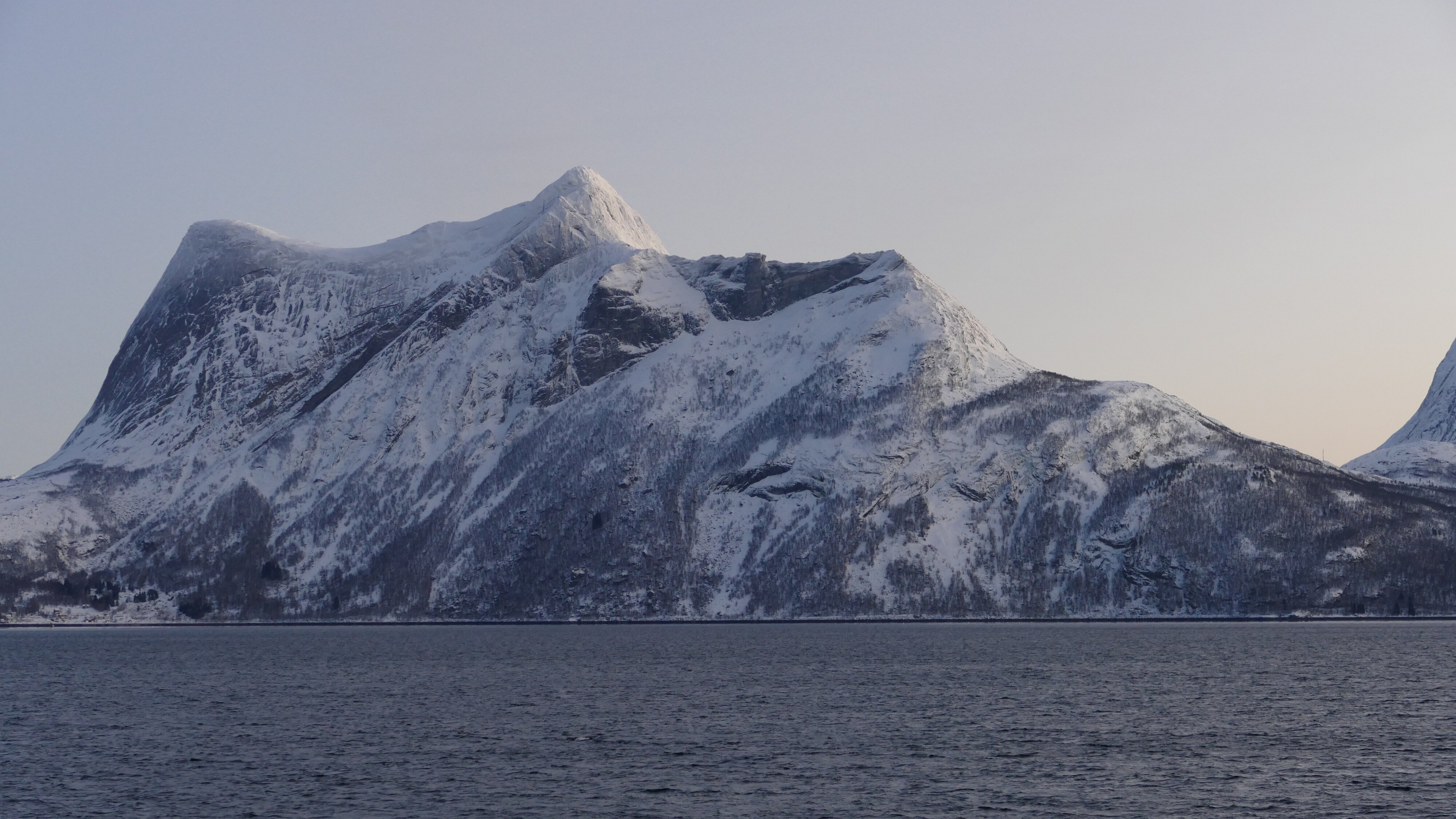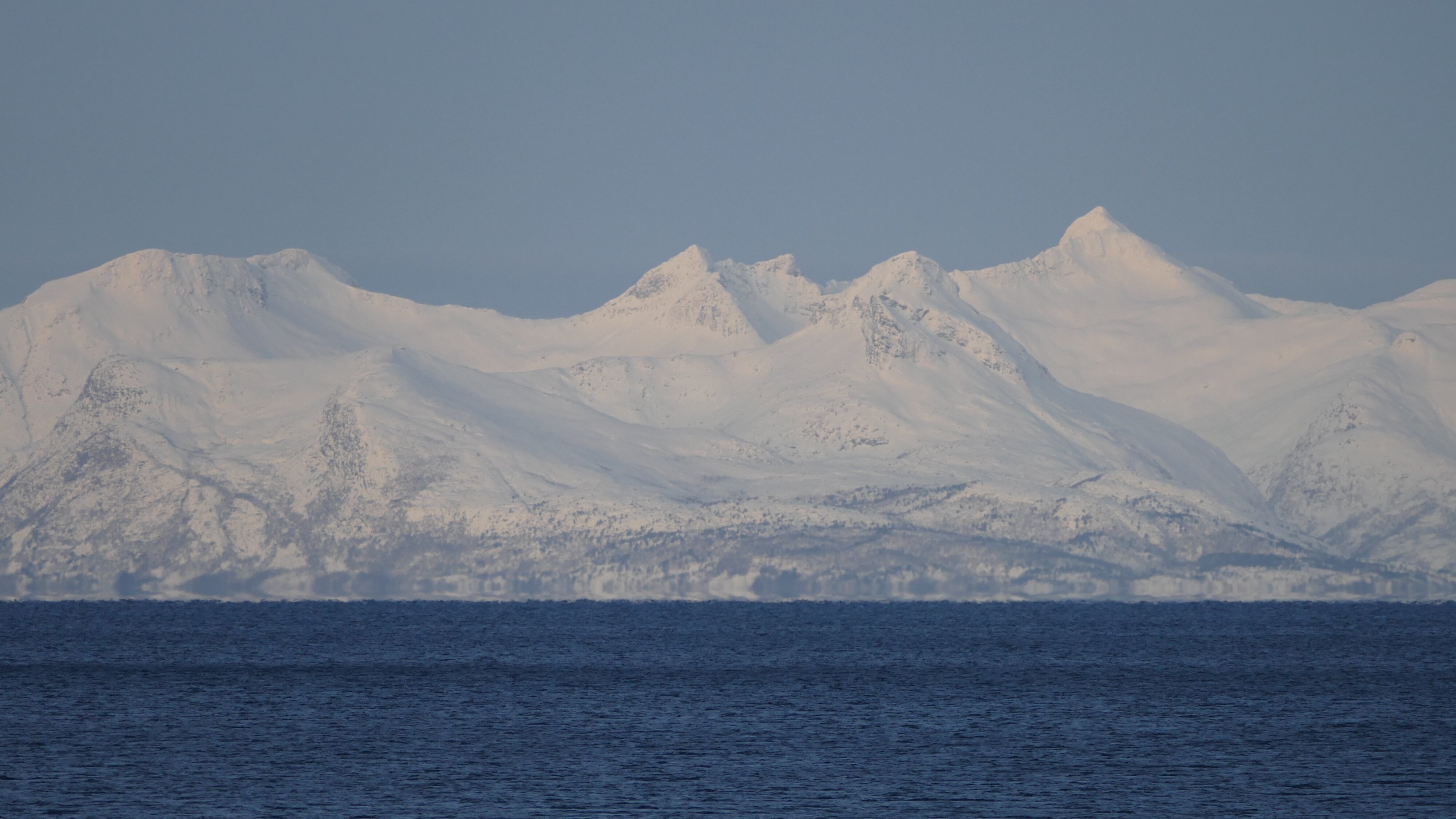 Schon die Überfahrt von Bognes nach Skarberget war ein Erlebnis. Absolut klarer Himmel und glasklarer Blick, die Lofoten schienen zum Greifen nahe. Nach nur wenigen Kilometern nachdem die Fähre in Skarberget angelegt hatte nutzte ich die Gelegenheit anzuhalten und noch mal in Ruhe Bilder zu schießen. Das sollte sich noch sehr häufig wiederholen.