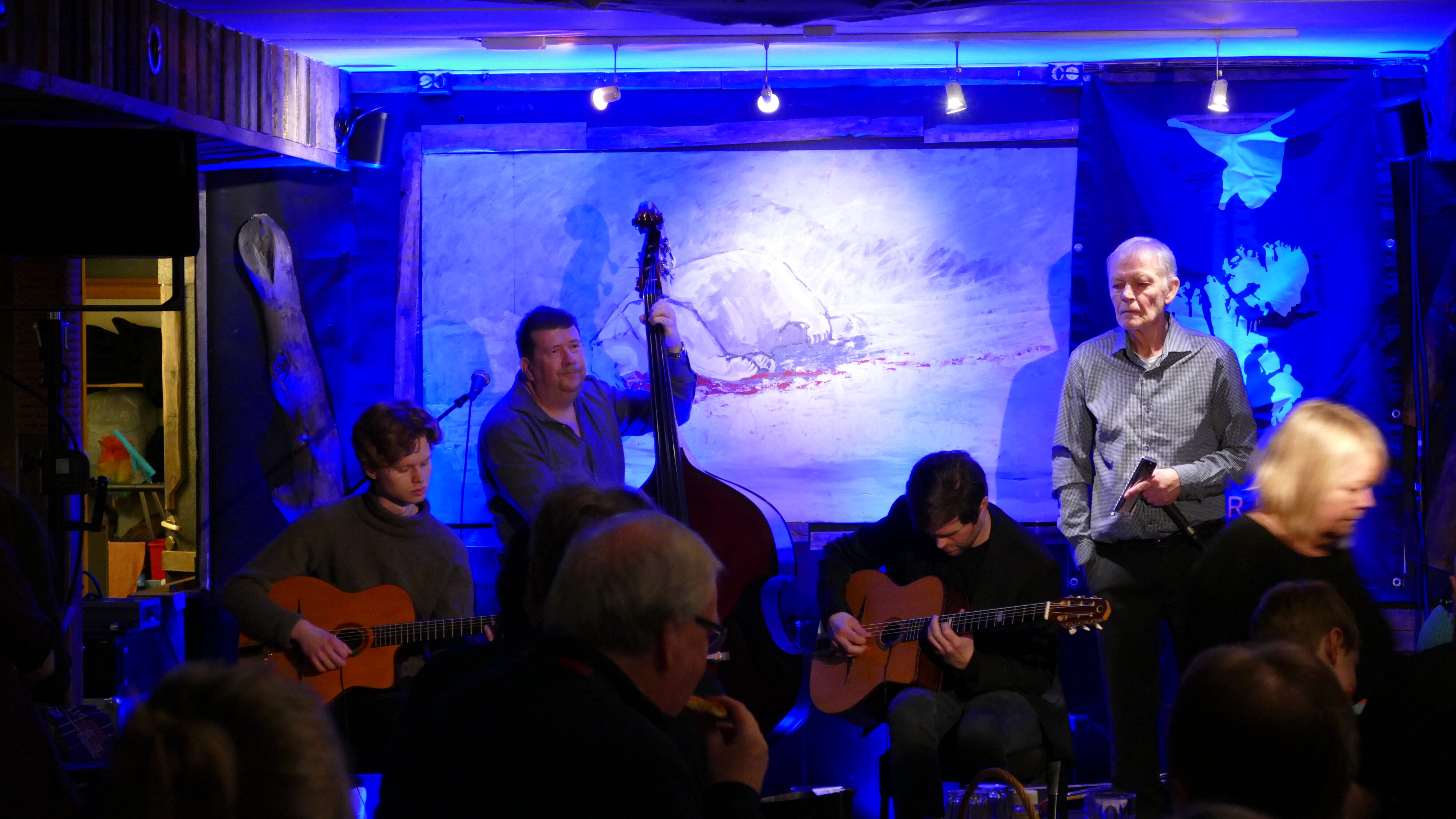 Dann wurden wir wieder zu den Unterkünften gebracht. Zeit sich noch in Ruhe umzuziehen und in den Kroa zu laufen. Dort dann ab 13 Uhr „Hot Club de Norvège“. Ich hatte mir keinen Sitzplatz reserviert, bekam aber trotzdem noch ein Plätzchen, wo ich eine Suppe löffeln konnte. Die Musik war dann einfach grandios, mehr oder weniger die einzige Jazzmusik des Festivals. Alexander hatte ich dann dort noch gegen Ende getroffen, er hatte auch noch das Konzert im Gruvelaget gebucht. Ich ging noch mal ins Hotel zurück. – Kurze Auszeit – In der „Barentz Pub & Spiseri“ ein sehr leckeres Essen eingenommen. Dort war ich schon seit ein paar Jahren nicht mehr, ist aber auch nach der kleinen Renovierung immer noch eine nette Location.