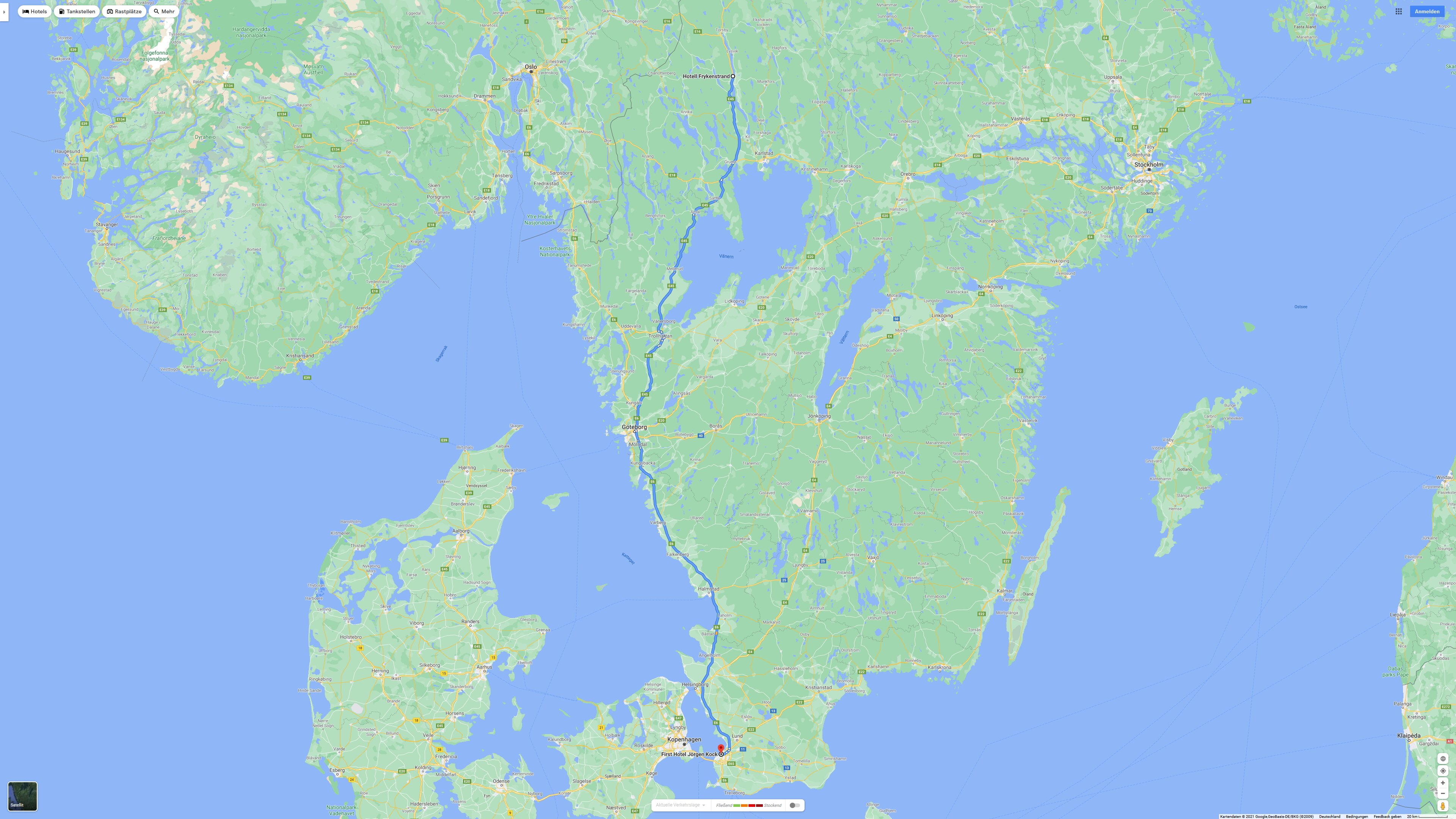 Die östliche Variante führt über Karlstad, Kristinehamn, Mariestad und dann rüber bis zur [E4] nach Jönköping. Die [E4] verläuft etwas abwechslungsreicher als die [E6], auf manchen Abschnitten ist sie sogar nur 3-spurig. Spätestens in Helsingborg trifft man dann auch auf die [E6]. Interessant fand ich meine Fahrt von Malmö nach Sunne in 2019. Damals war meine (umgekehrt verlaufende) Routenplanung Dieses Mal soll es wieder östlich am Vänern vorbei führen, allerdings nicht mehr auf der schnellen [E4] entlang, sondern auf der [E20] bis Trafikplats Halmstad Norra (Ausfahrt 45) und dann weiter auf der [26]. An Gislaved vorbei biegt man links ab auf die [27]. Später dann rechts ab auf die [157]. Nach Ulricehamn weiter auf der [46], bei Borgunda geht es wieder auf die [26]. Von da ab geht es wieder weiter auf bekannten Pfaden, vorbei an Mariestad, Kristinehamn und Karlstad.