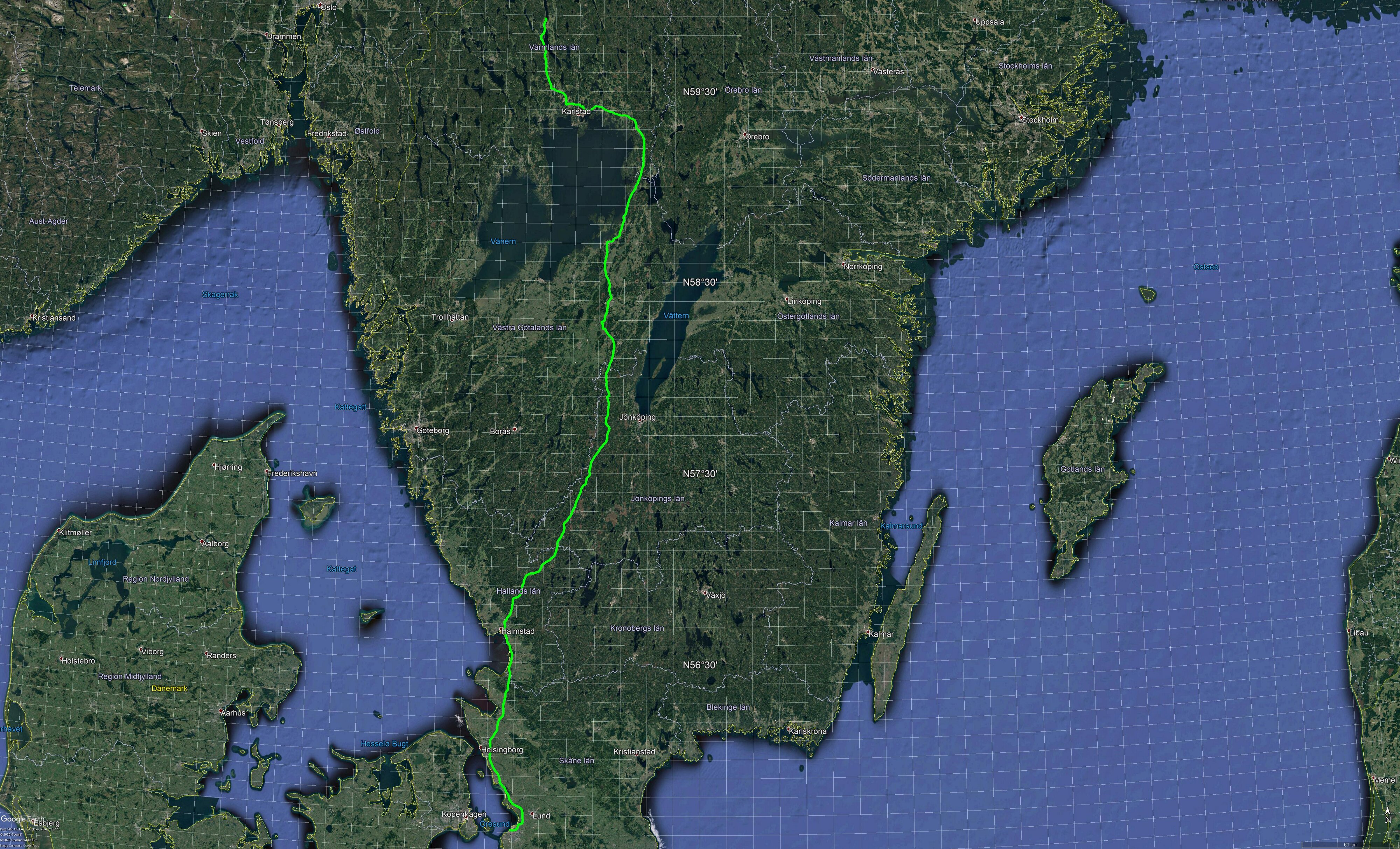 So ganz klare Präferenzen habe ich noch keine, es gibt ja nicht nur prinzipiell die beiden Varianten entweder östlich oder westlich um den Vänern herum. Speziell wenn man östlich herum fährt gibt es jede Menge Alternativen. Die von Google Maps vorgeschlagene Variante über die [E45] westlich am Vänern vorbei ist sicherlich die schnellste, man fährt bis Göteborg auf gut ausgebauten Landstraßen, wenn ich es recht in Erinnerung habe, dann teilweise sogar autobahn-ähnlich mit vier Spuren. Ab Göteborg dann sowieso auf der [E6], also eine vierspurige Autobahn die mehr oder weniger im Küstenbereich entlang führt und außer an einer Stelle quasi keinen nennenswerten Steigungen hat.