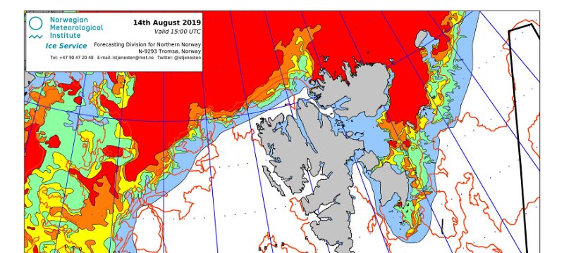 Hier werden immer die gerade aktuell gültigen Eiskarten angezeigt. Üblicherweise werden die Karten so gegen 16 Uhr aktualisiert. Allerdings nur an Werktagen, nicht am Wochenende oder (norwegischen) Feiertagen. Die Originaldaten hole ich mir von einem FTP-Server ftp.met.no, dort liegen die gewünschten Karten unterhalb von /projects/icecharts.