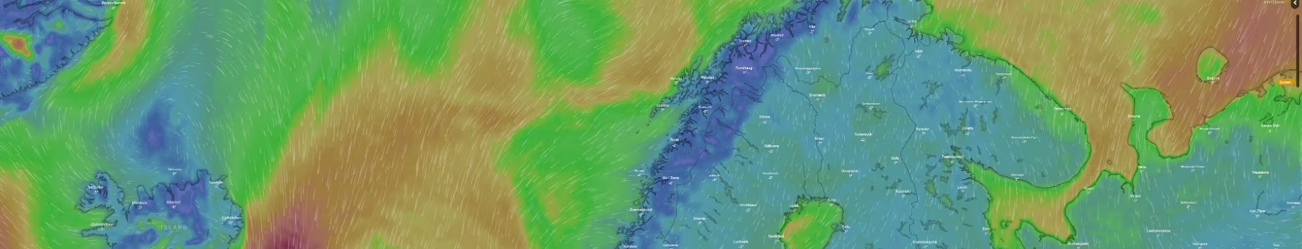 Auf der Homepage von Windy gibt es schön dargestellte Windvorhersagen. Windy Vorhersage für Norge