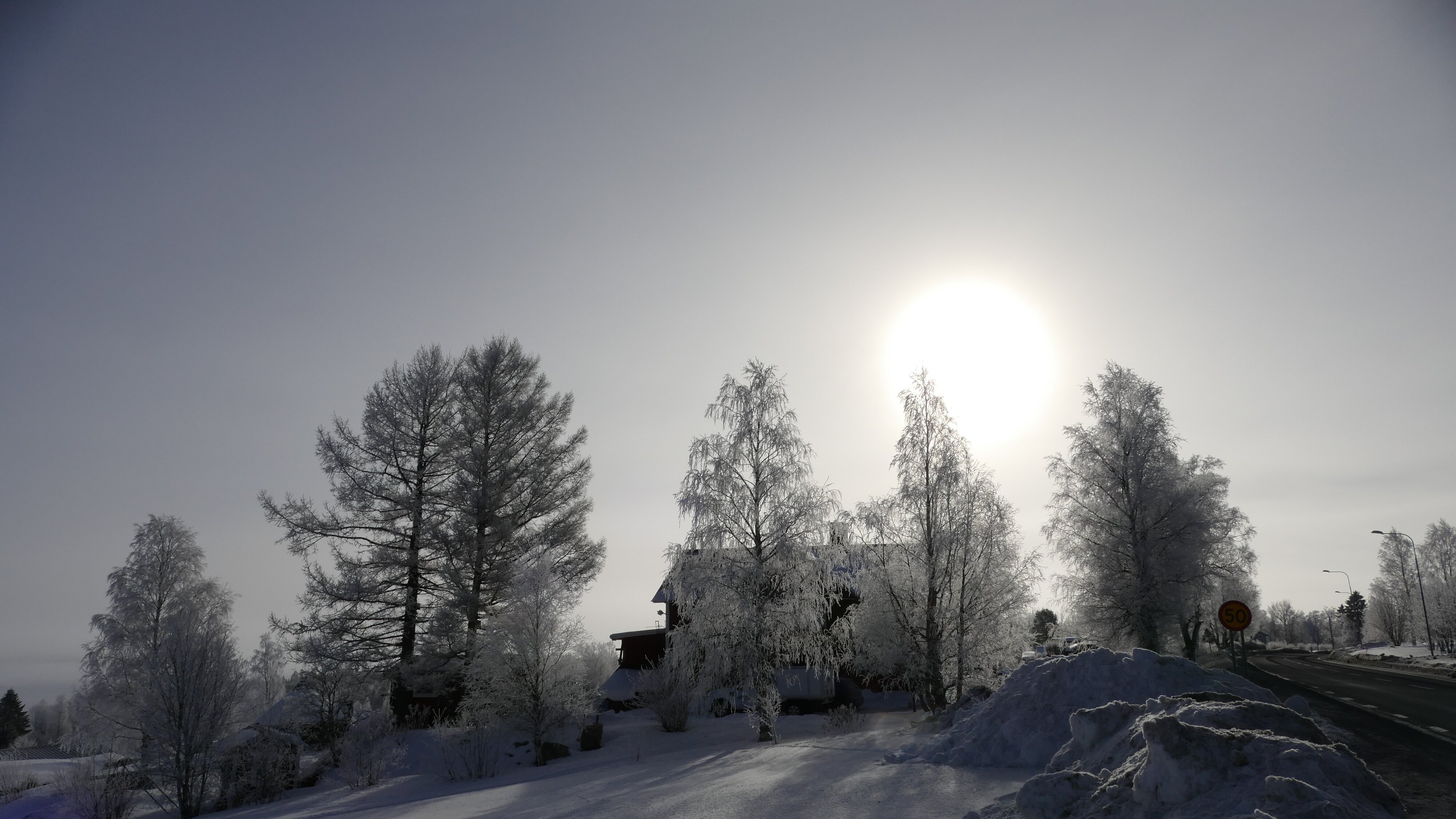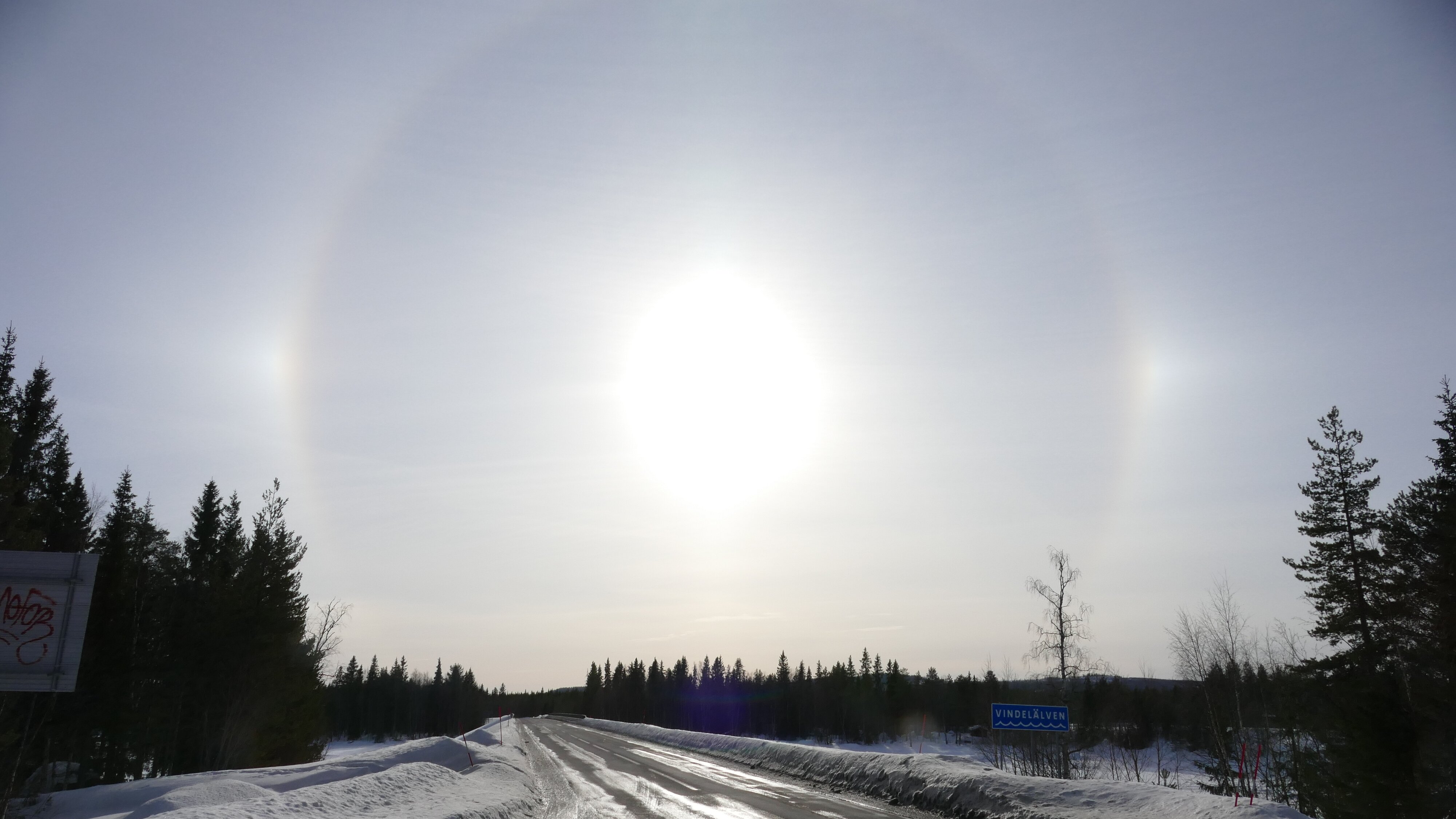 Kaum hatte ich Östersund hinter mir gelassen, Sonne war schon recht hoch, sah ich zwei fette Nebensonnen, genial.