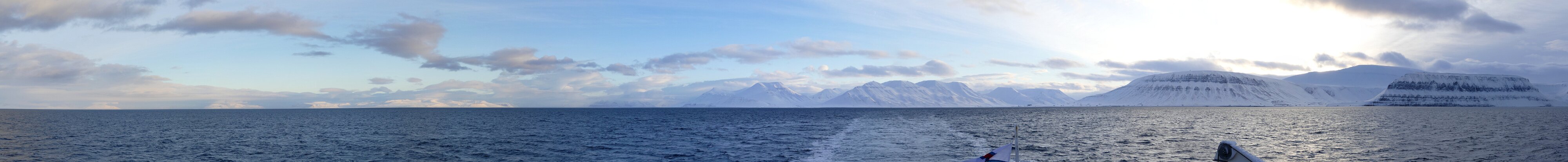 Das Wetter war ziemlich gut, die Berge gegenüber von Longyearbyen wurden schön von der Sonne beschienen und sobald wir den Adventfjorden hinter uns gelassen hatten, sah man auch andere Berge die im Sonnenlicht erschienen, absolut großartig. Ich meinte zum Guide, dass wir wohl „lucky“ seien, dass wir so schönes Wetter erwischt haben. Da meinte er, jein, für den späteren Tag seien noch rauere Konditionen angesagt, deutlich rauere, betonte er. Uiuiuiuiui, dachte ich da so bei mir, also Fische füttern wollte ich keine heute.