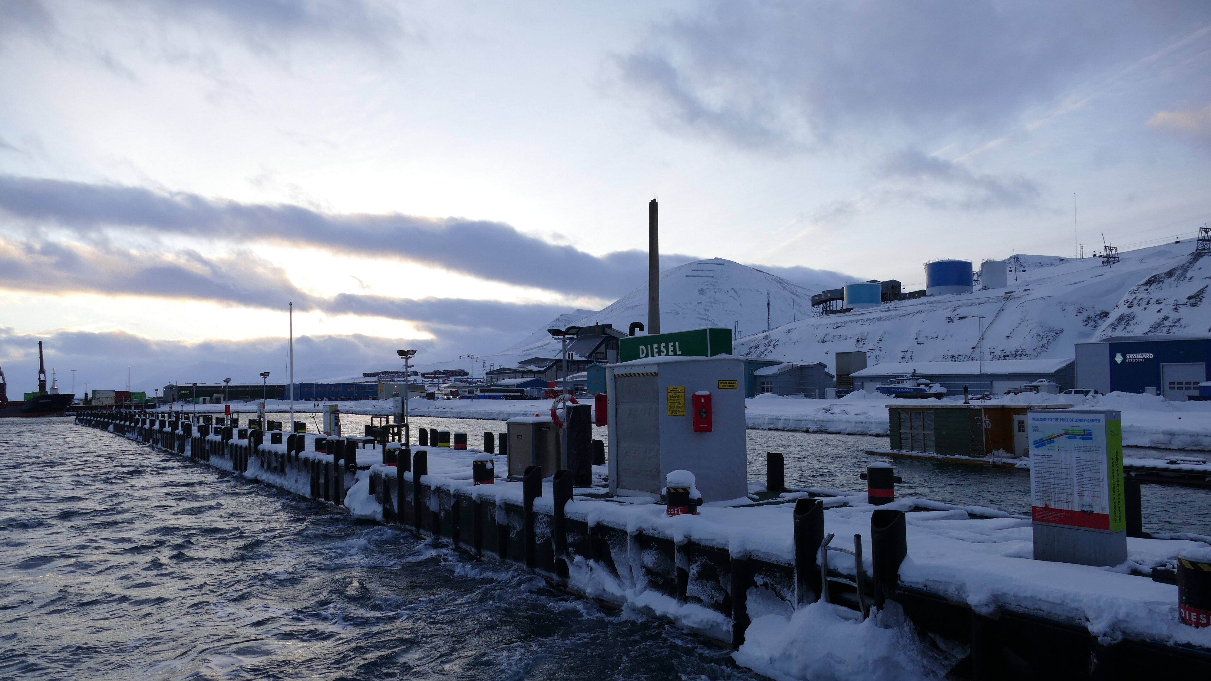 Das Schiff hatte noch nicht richtig abgelegt, gab es auch schon eine erste Einführung des Guides was es so zu sehen gab, wenn man aus den Fenstern guckte. Da gibt es ja einiges, die Kohleminen, der Saatguttresor, der Flughafen, der der jüngste auf der Welt ist, zumindest der kommerziellen Luftfahrt. Und in den 90ern des letzten Jahrhunderts gab es einen folgenschweren Flugzeugabsturz, die Anzahl der Toten muss ich noch mal nachschlagen, aber was mich irritiert, dass das noch nicht wirklich so lange her ist. Ich war der Meinung, dass das deutlich länger zurück liegt, muss ich wohl falsch verstanden haben.