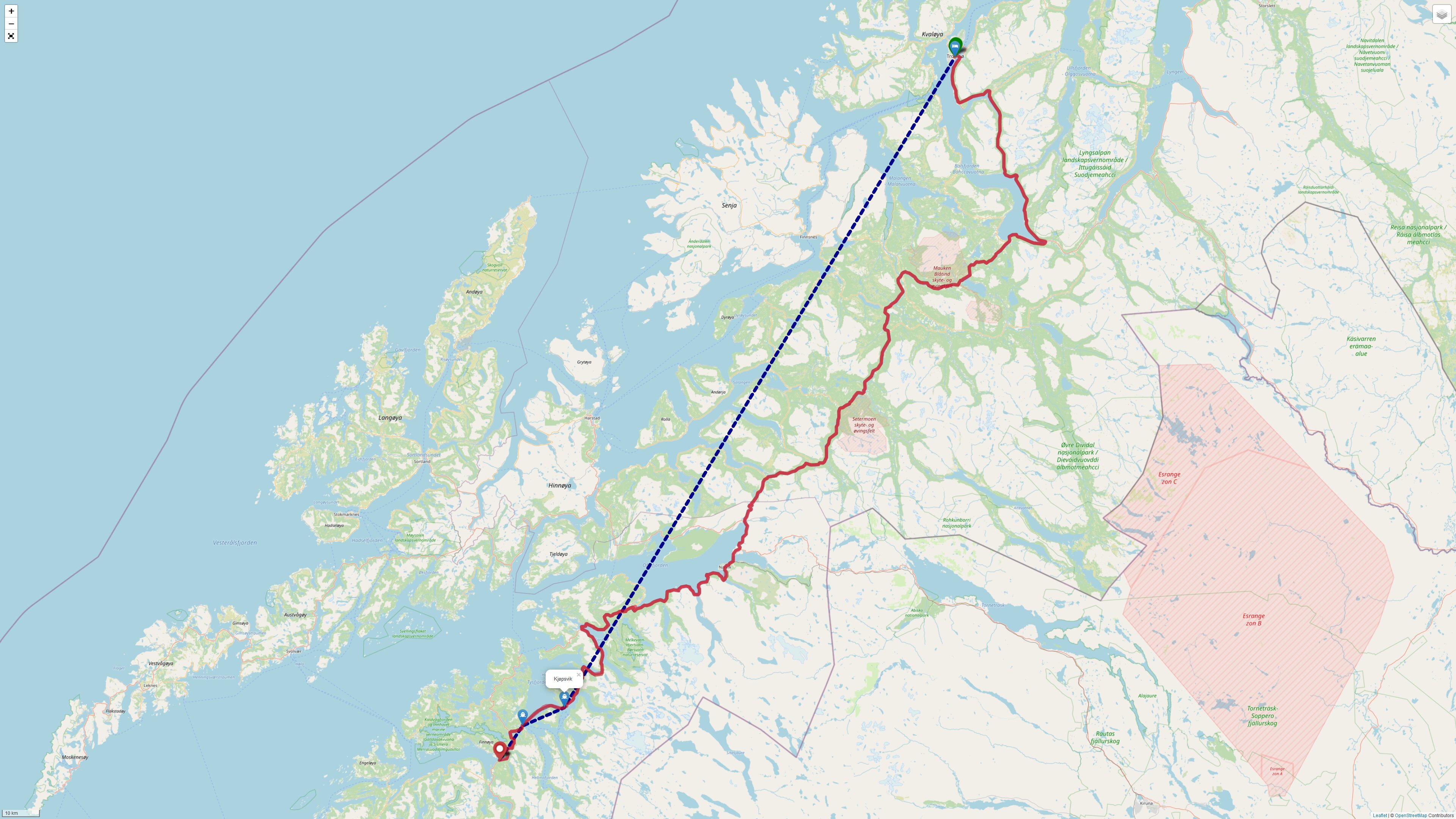 Die in Frage kommenden Abfahrten Kjøpsvik – Drag