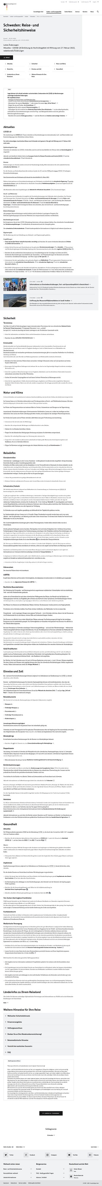 Schweden Reise- und Sicherheitshinweise Stand 28.02.2022