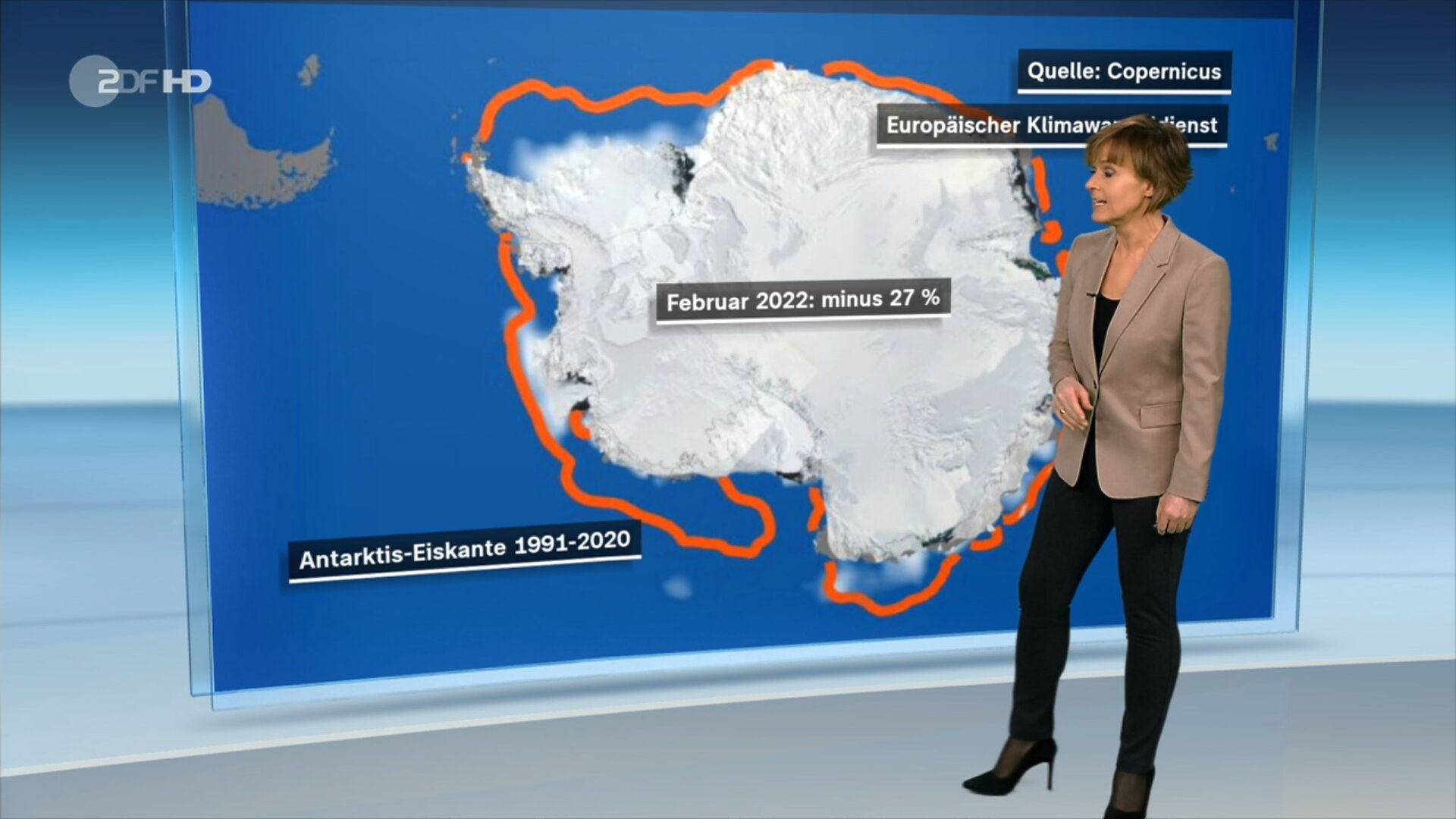 Klima Derweil in der Antarktis. Wie sollte es anders sein, es ist zu warm und das Eis ist weit zurück gegangen.